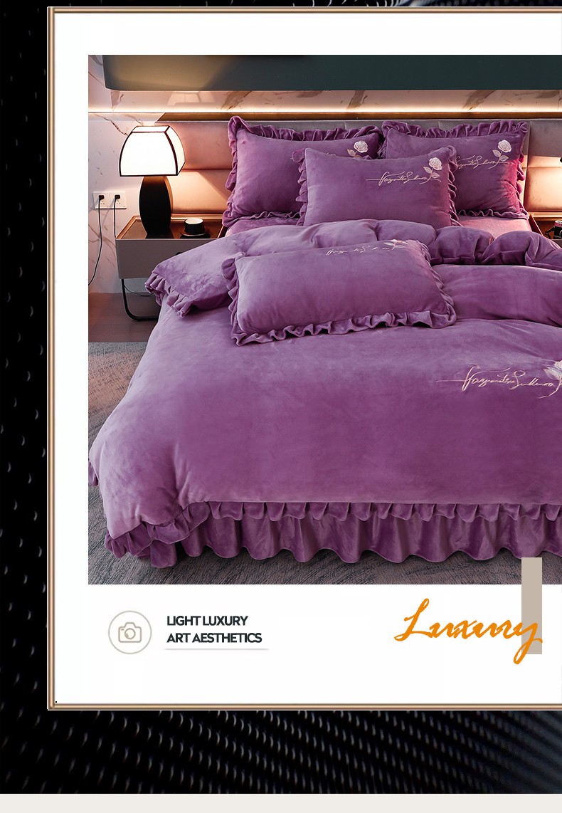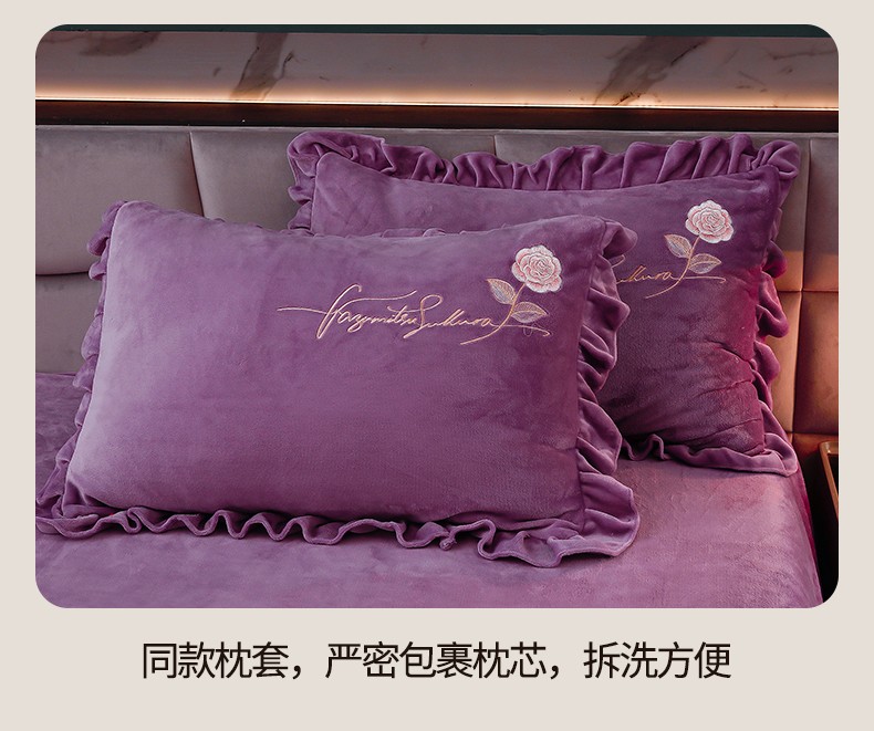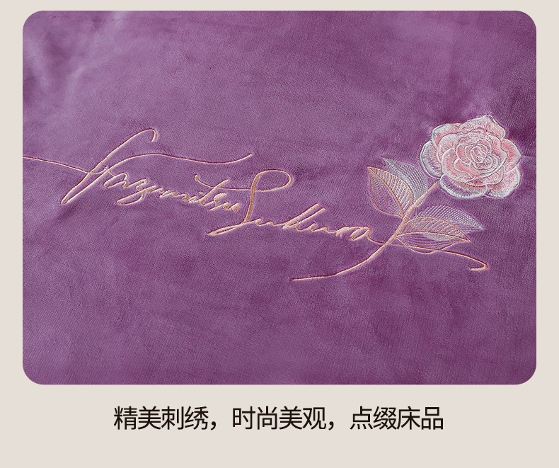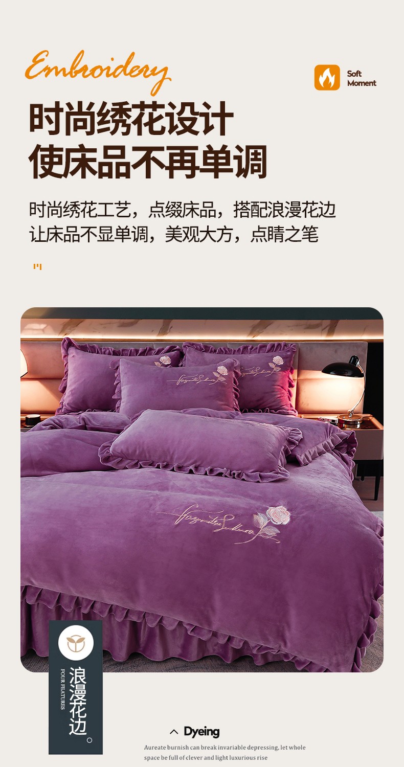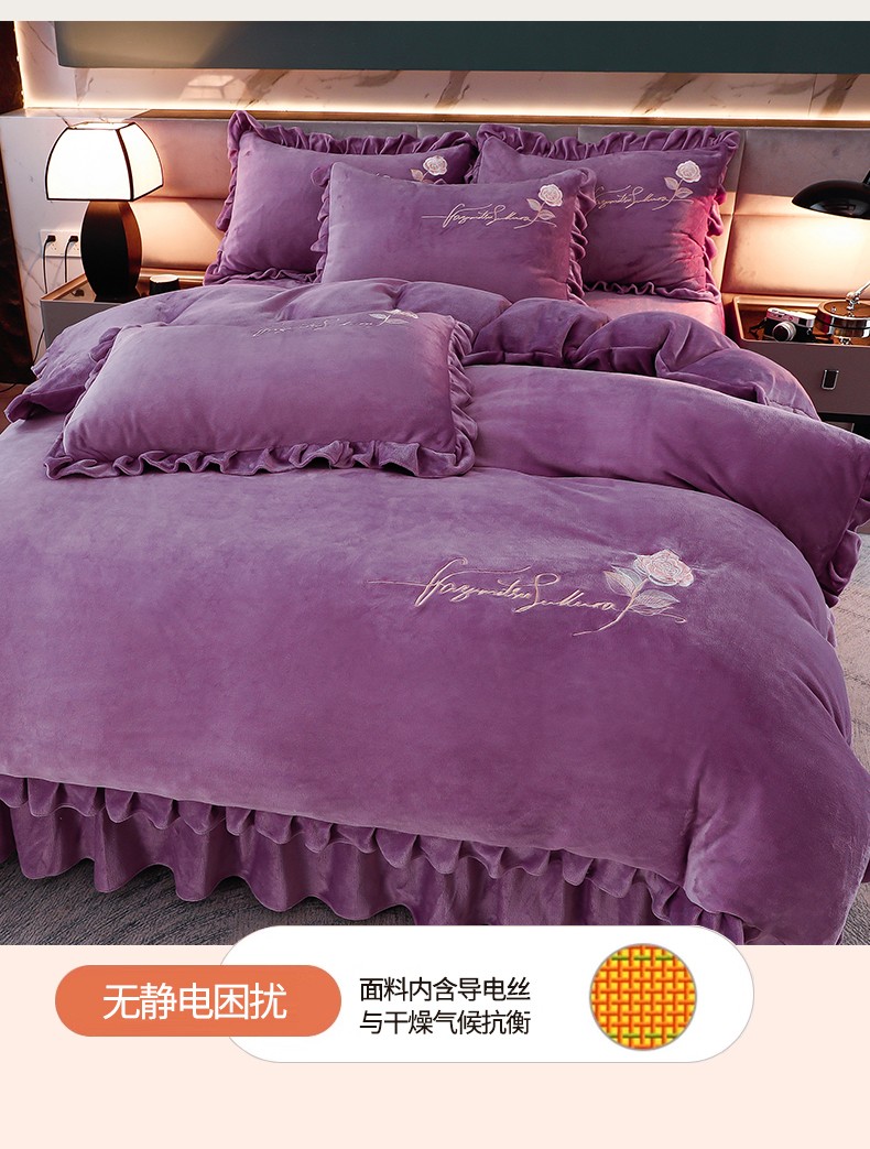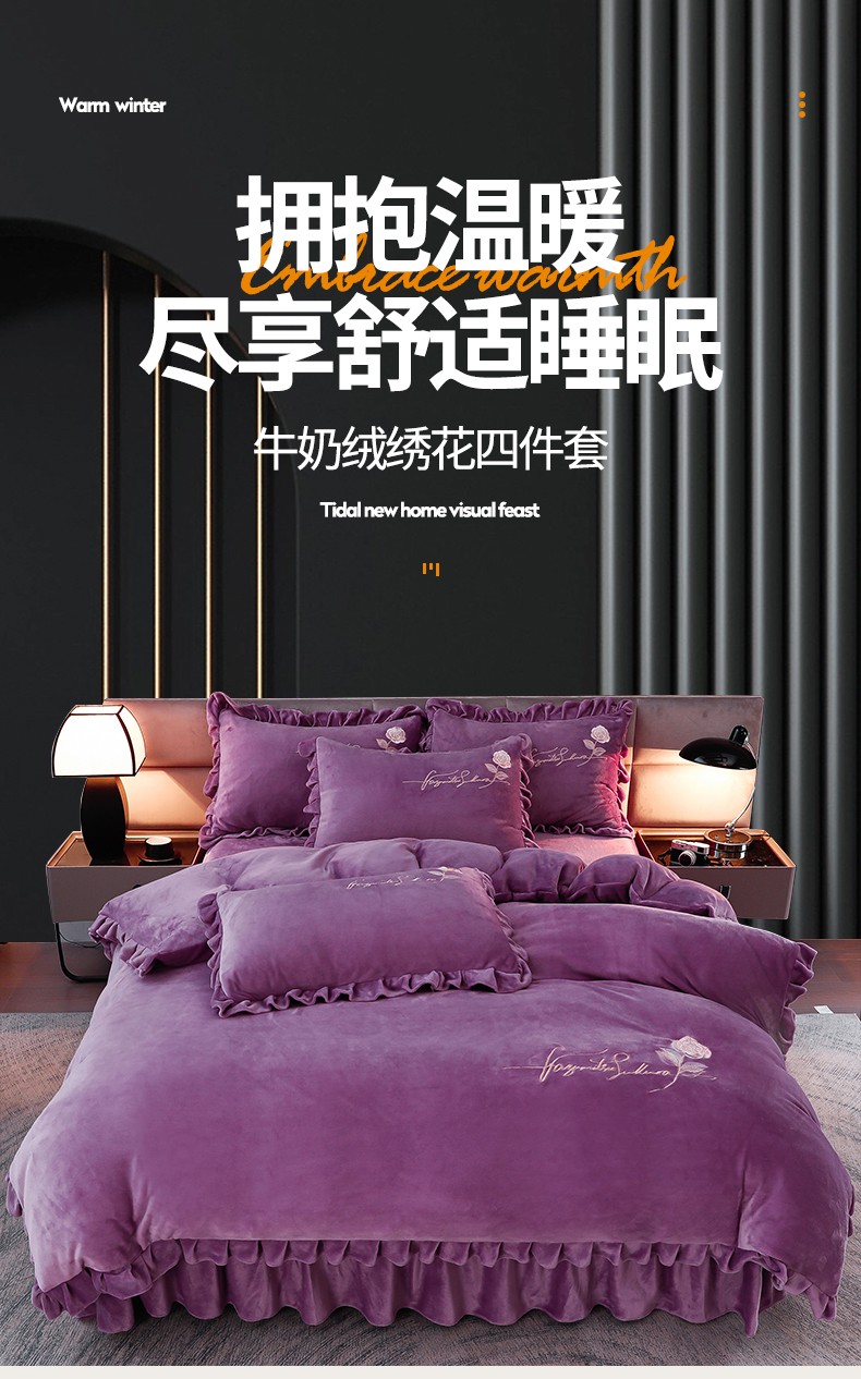 商品名称:绣女坊 2024新款韩版花边绣花牛奶绒四件套 浪漫紫