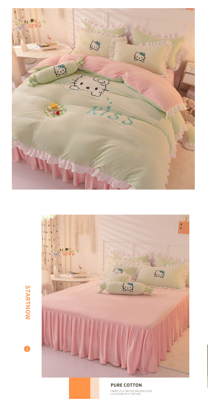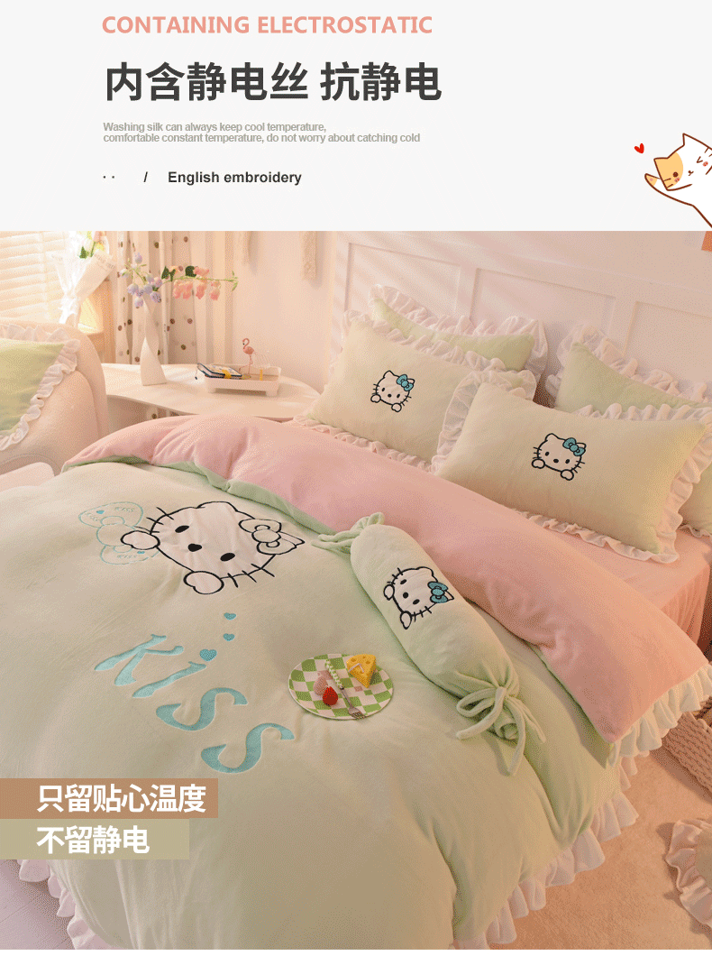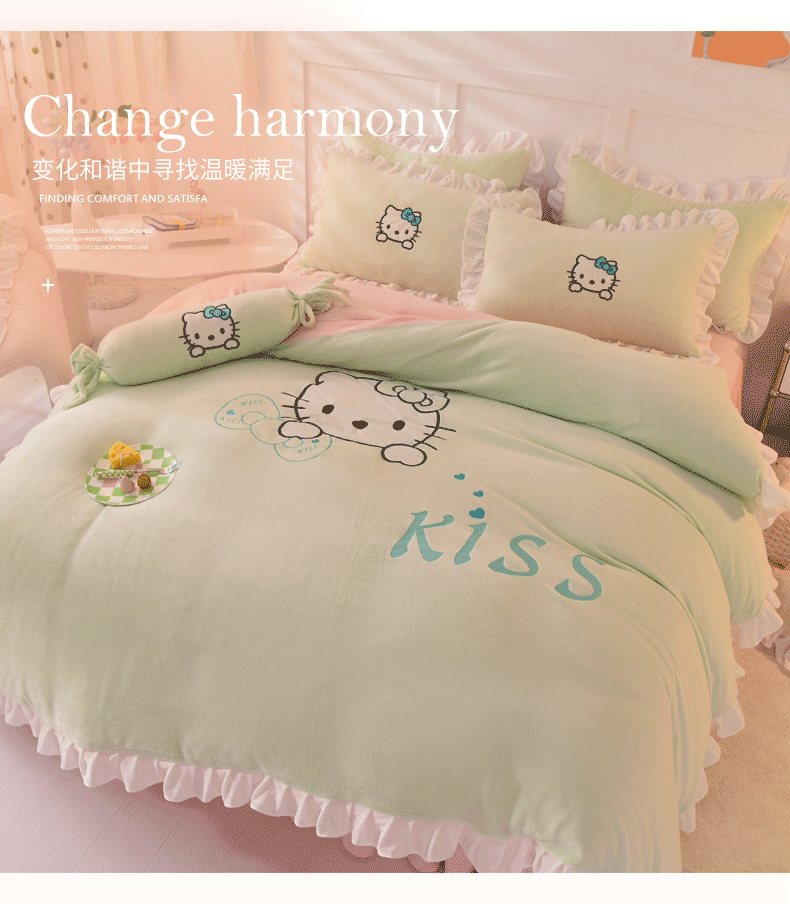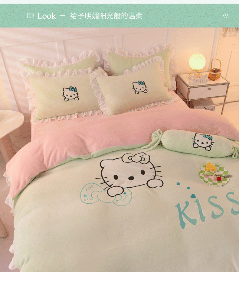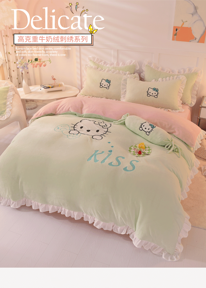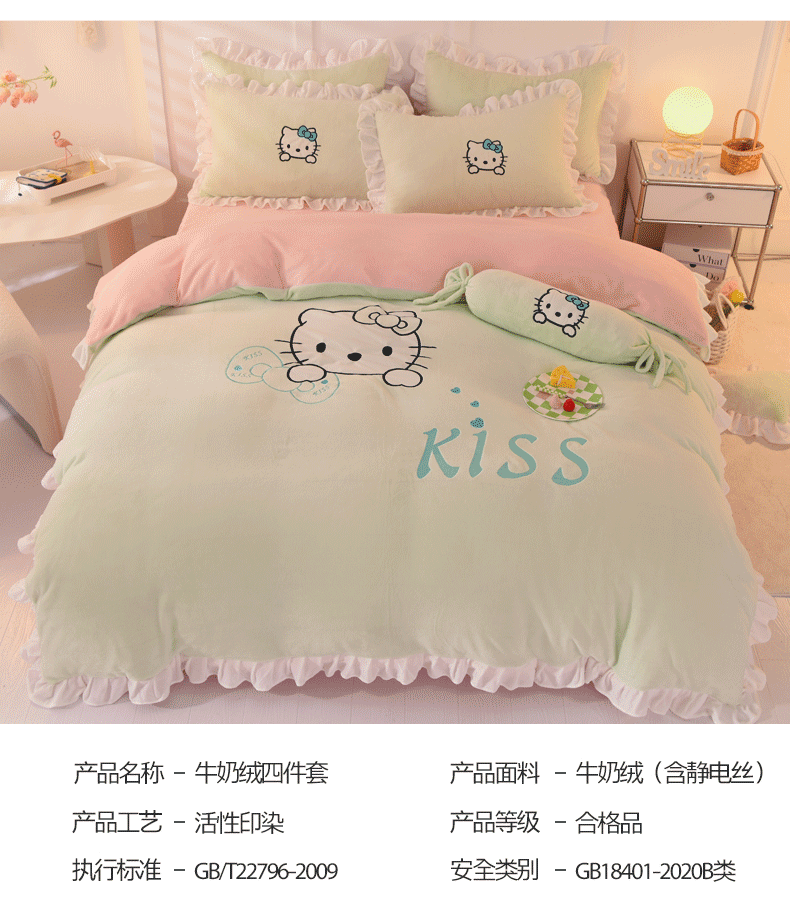 当前位置: 91家纺网 > 商品网购 > 床品套件 > 四件套 > 牛奶绒四件套 > 丝印良品 2024新款高端牛奶绒卡通刺绣牛奶绒四件套 kiss猫-抹茶拼粉