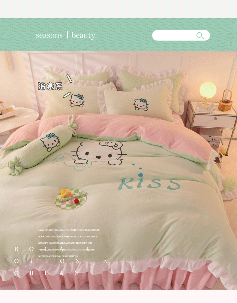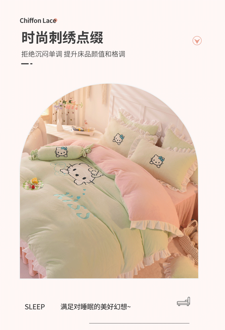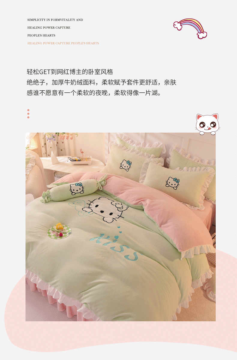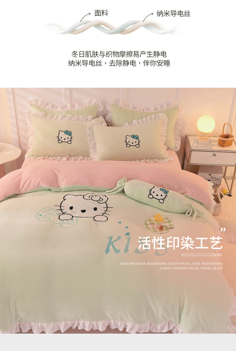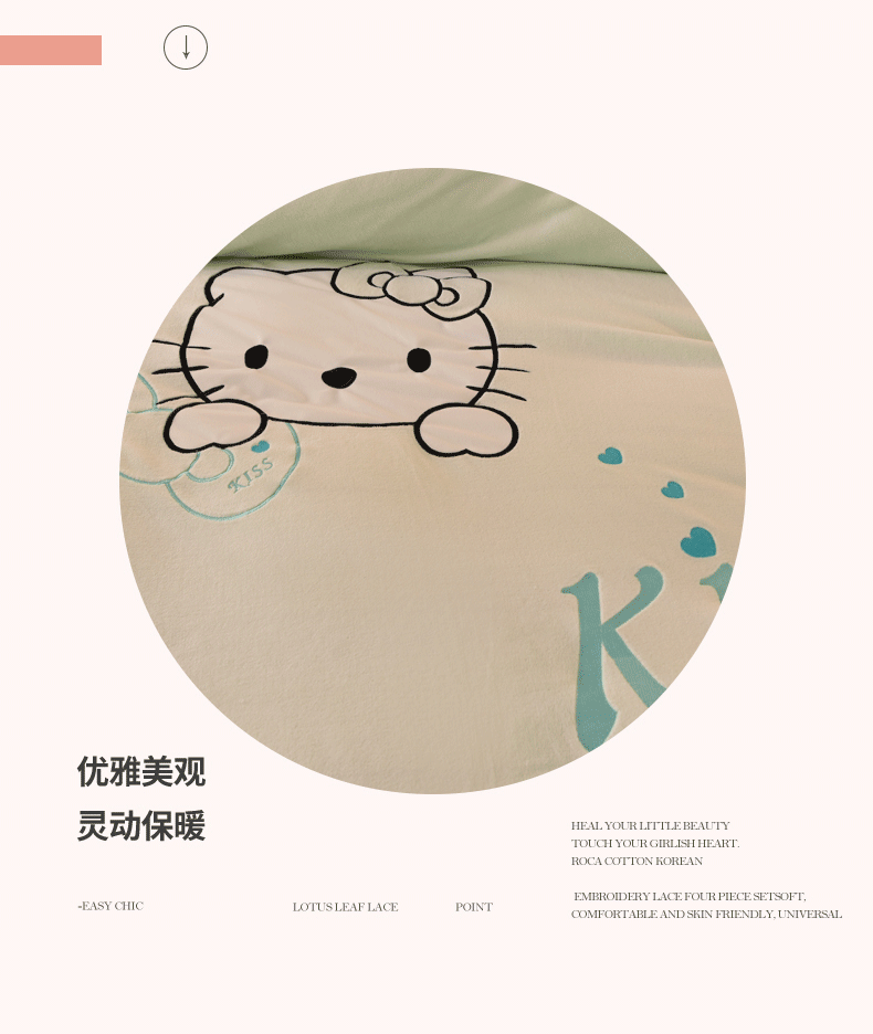 当前位置: 91家纺网 > 商品网购 > 床品套件 > 四件套 > 牛奶绒四件套 > 丝印良品 2024新款高端牛奶绒卡通刺绣牛奶绒四件套 kiss猫-抹茶拼粉