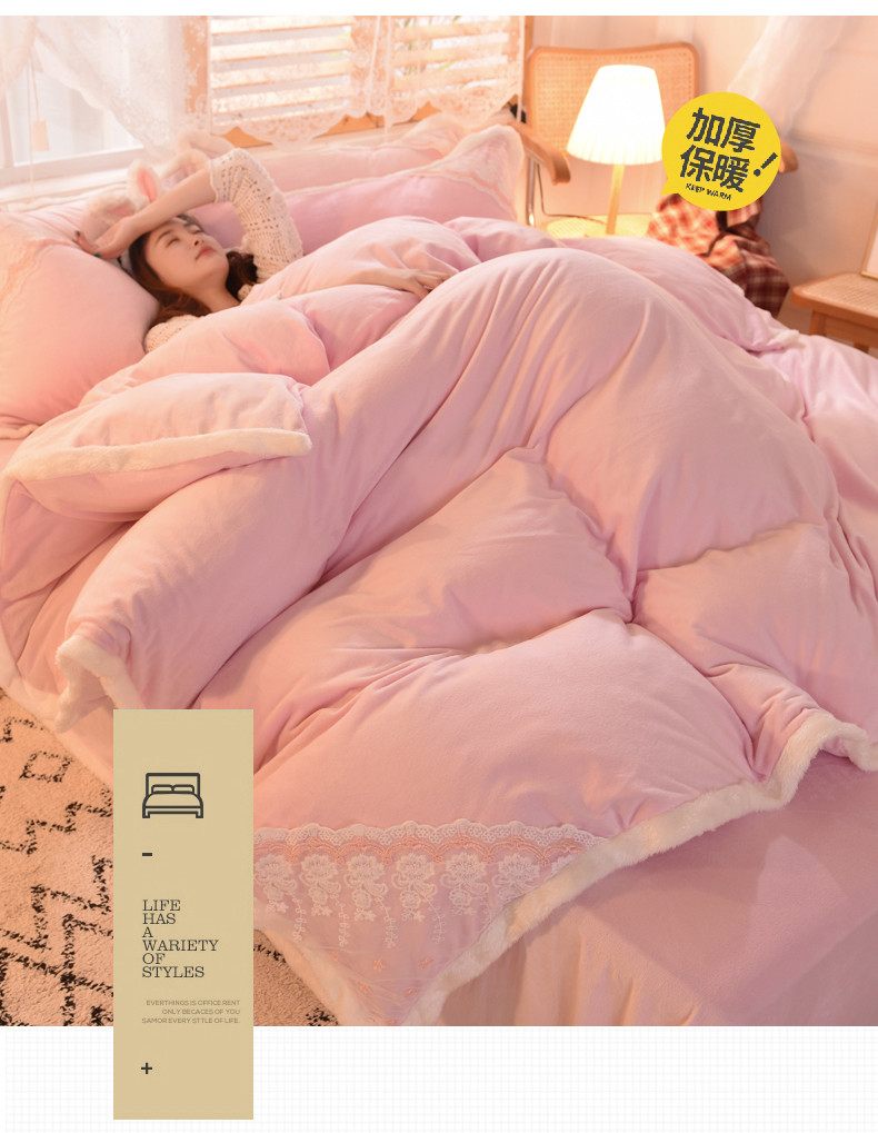 绒世界 2024新款韩版公主牛奶绒四件套 浅粉