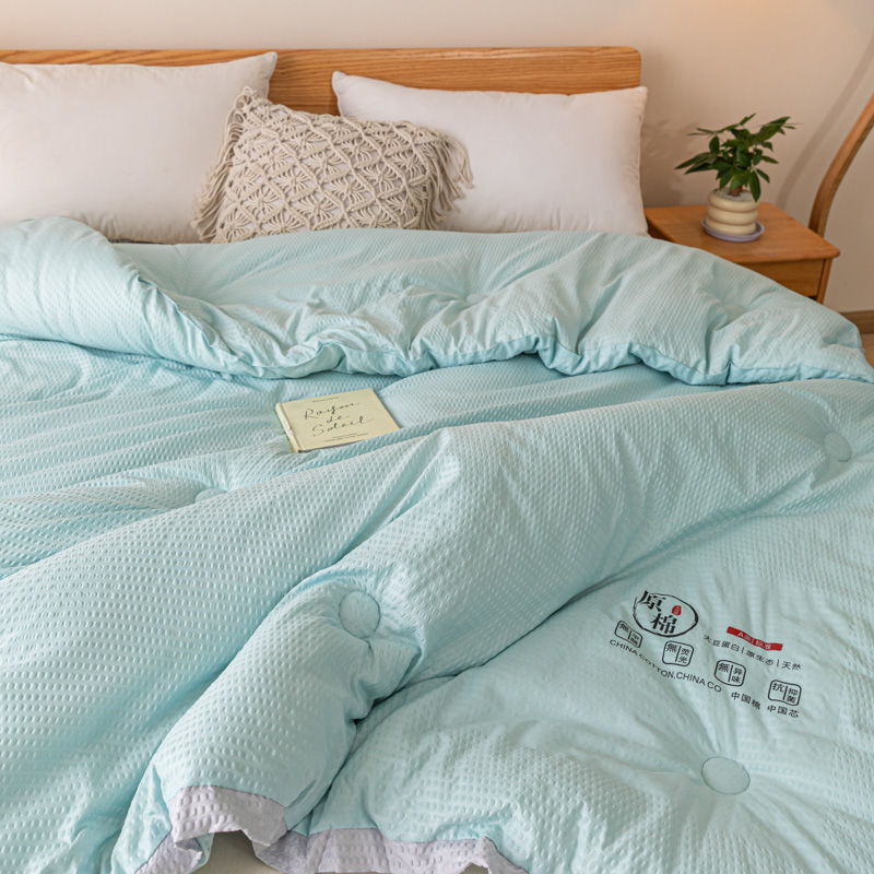 亚龙工厂店 泡泡纱豆豆被 蓝色