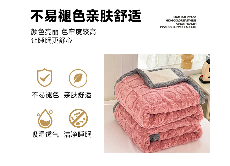 商品名称:法澳 2023新款双层加厚230克塔芙绒北极绒毛毯休闲毯 藕粉