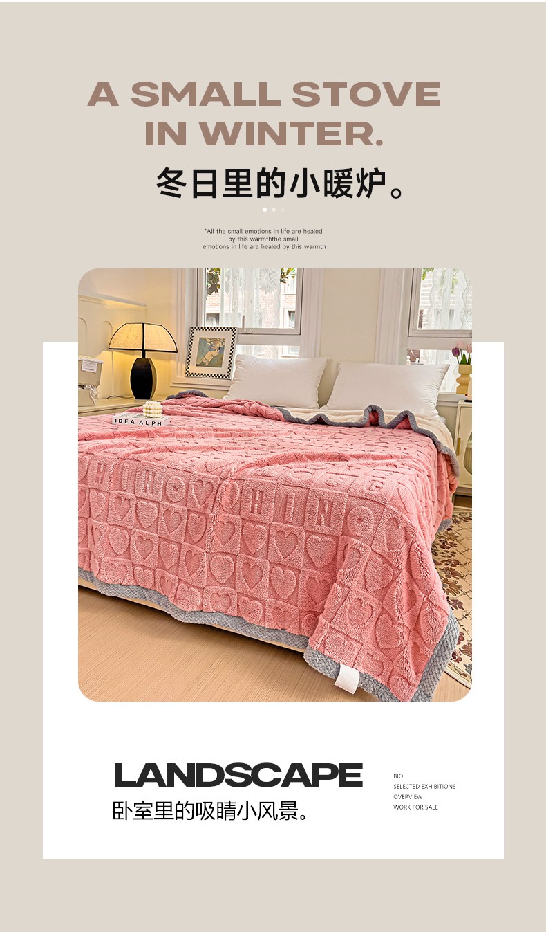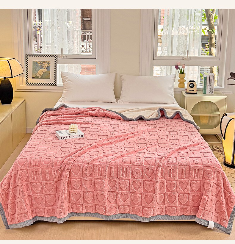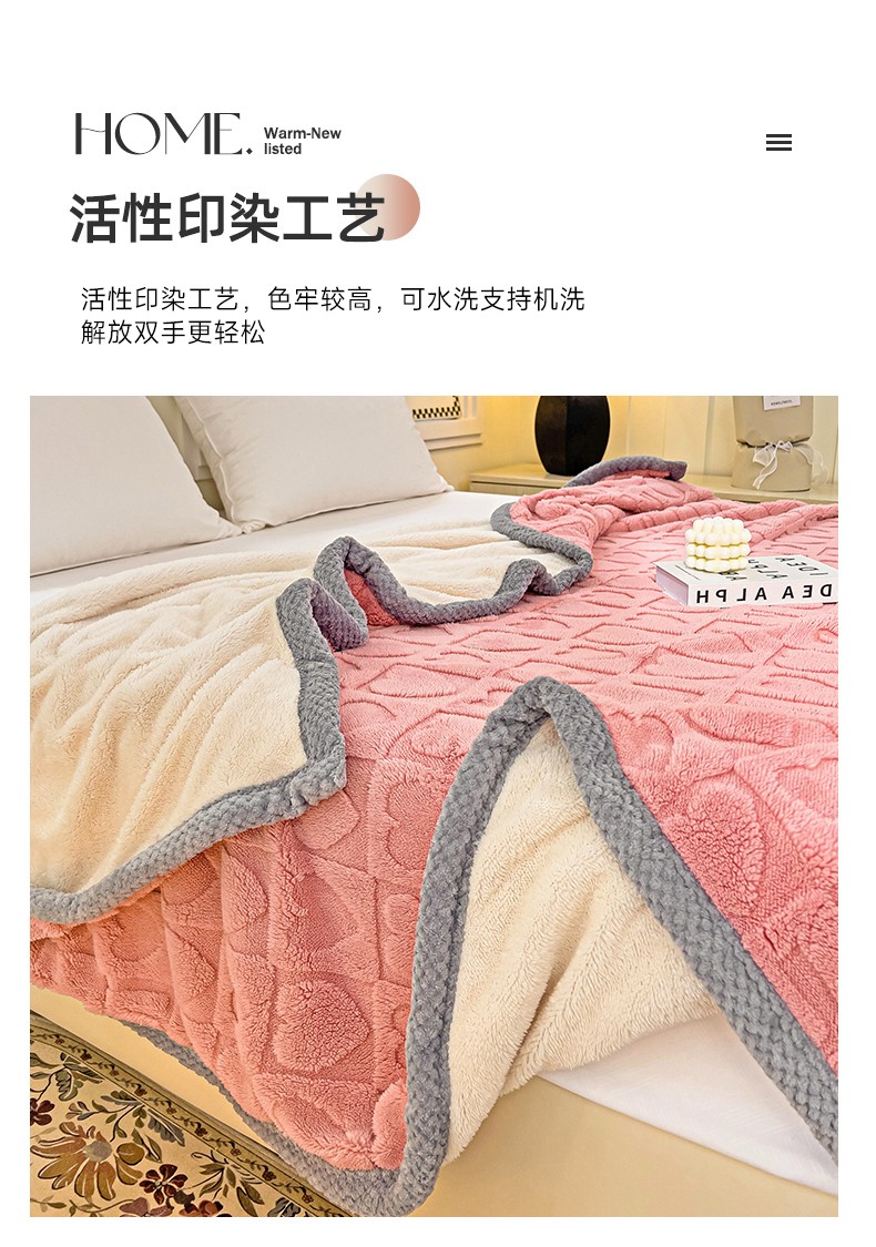 法澳 2023新款双层加厚230克塔芙绒北极绒毛毯休闲毯 藕粉