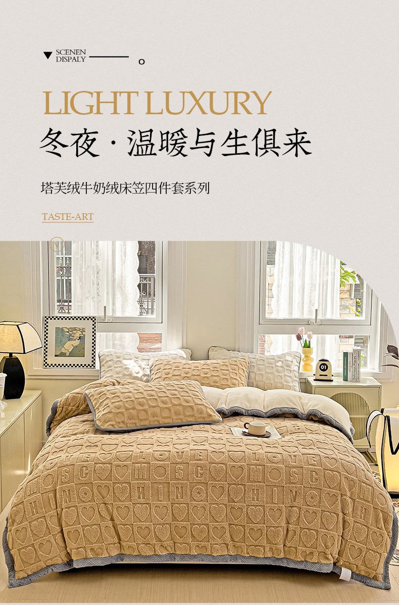 法澳 2023新款230克塔芙绒被套+牛奶绒夹棉床笠款四件套 奶咖