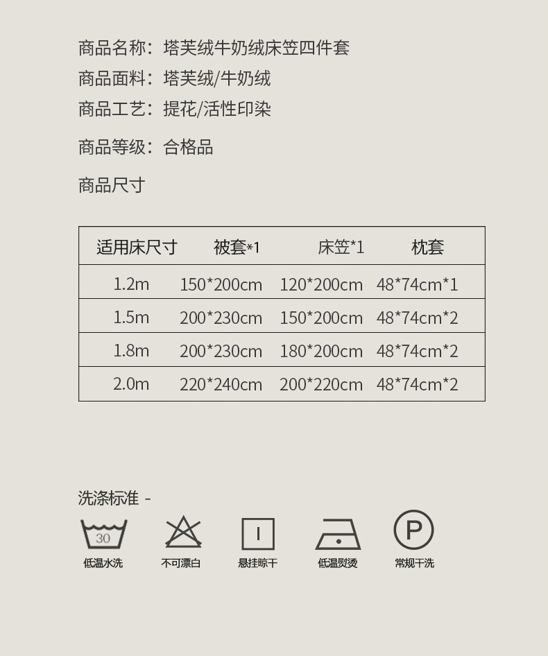 商品名称:法澳 2023新款230克塔芙绒被套+牛奶绒夹棉床笠款四件套 奶咖