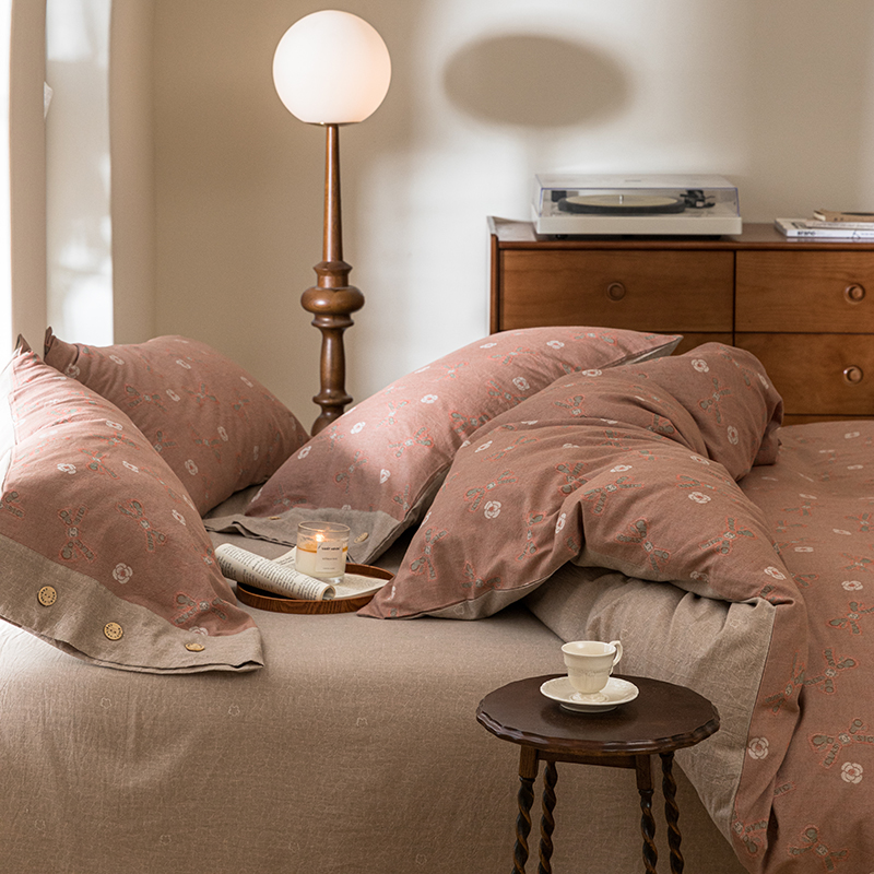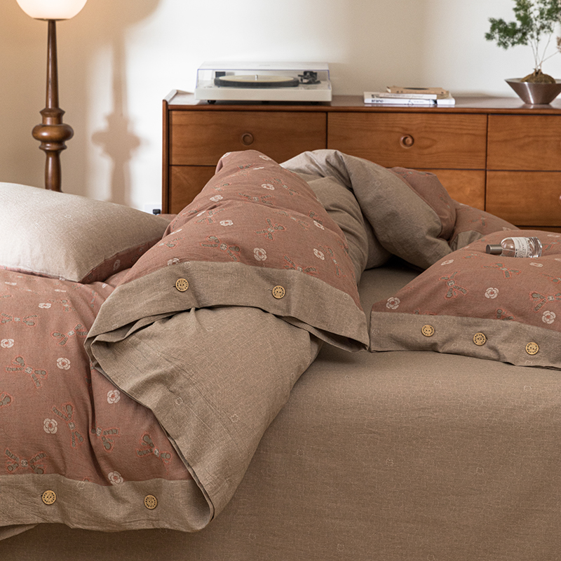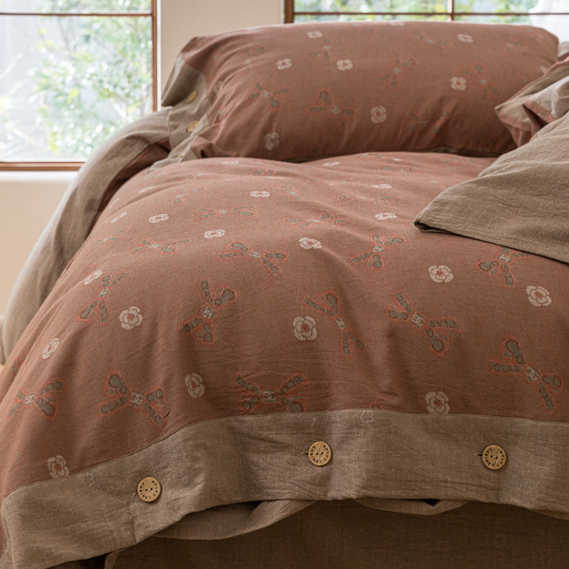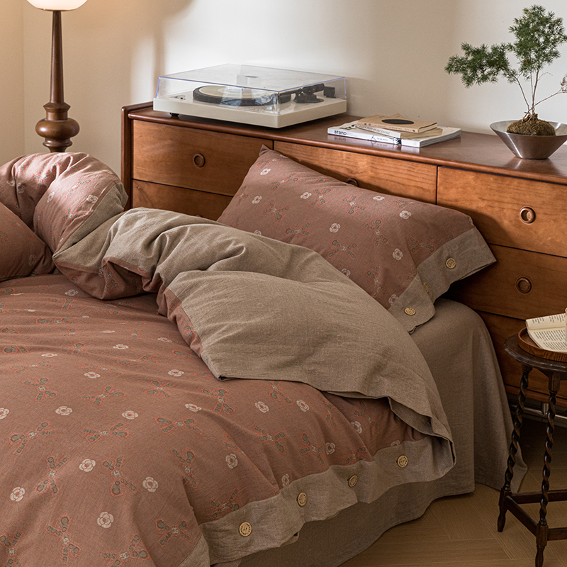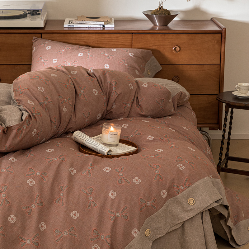 (总)栩裕纺织 2025新款全棉双层纱床盖三件套四件套,可可甜心粉,梦寐花都,抹茶小团子-咖,茉莉清风-粉,木映-绿,暮冬-紫,甜音少女-桔,樱桃奶盖-粉