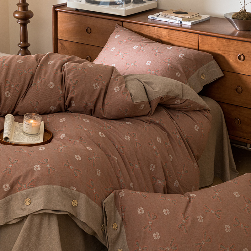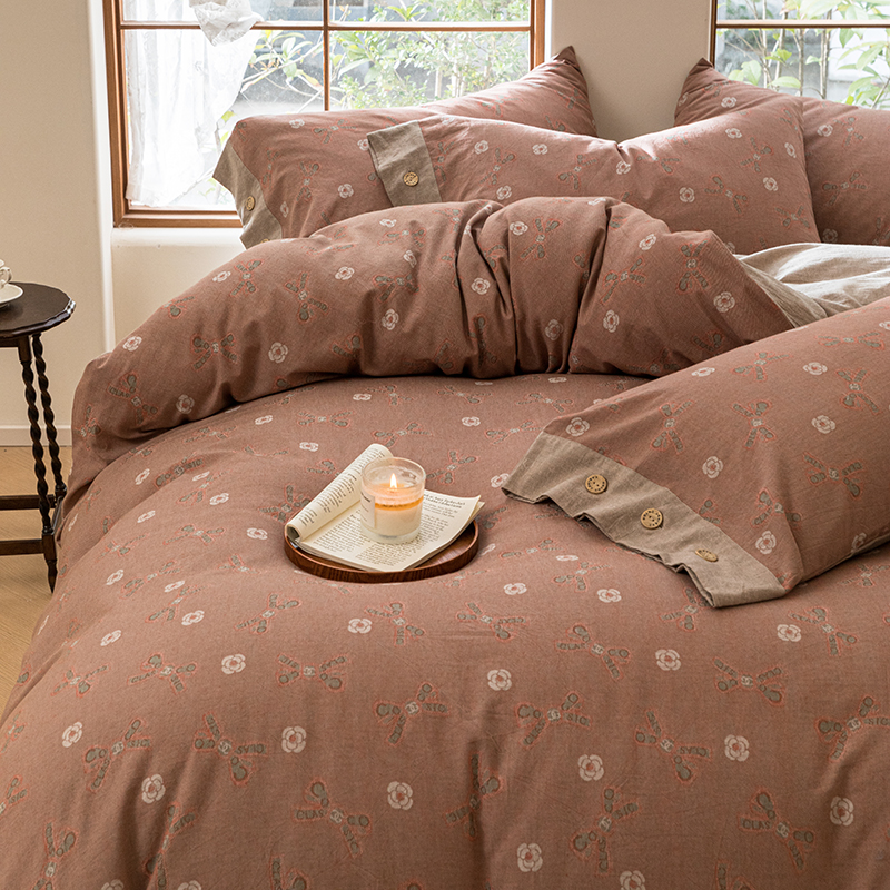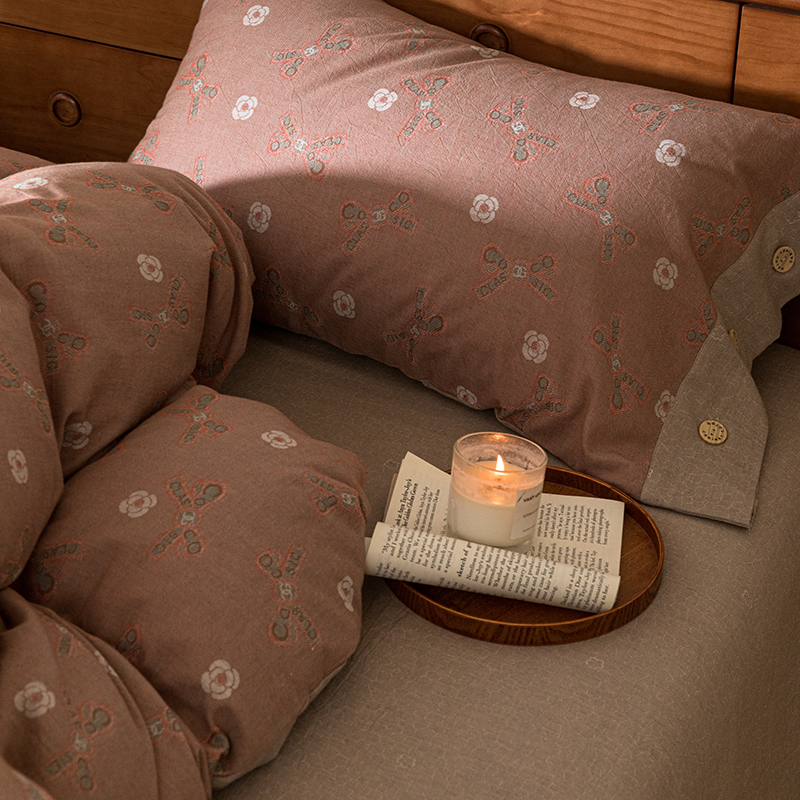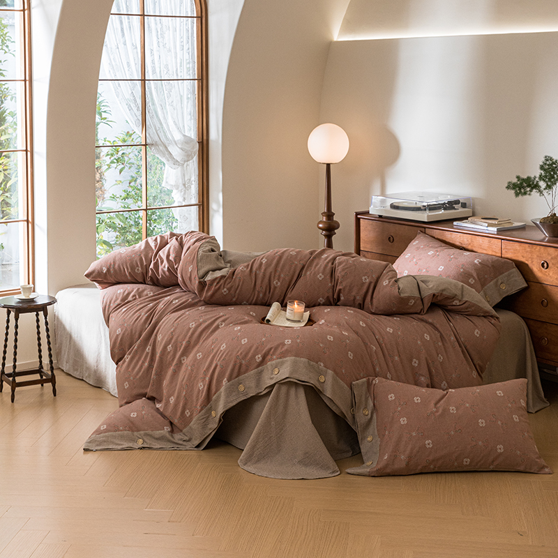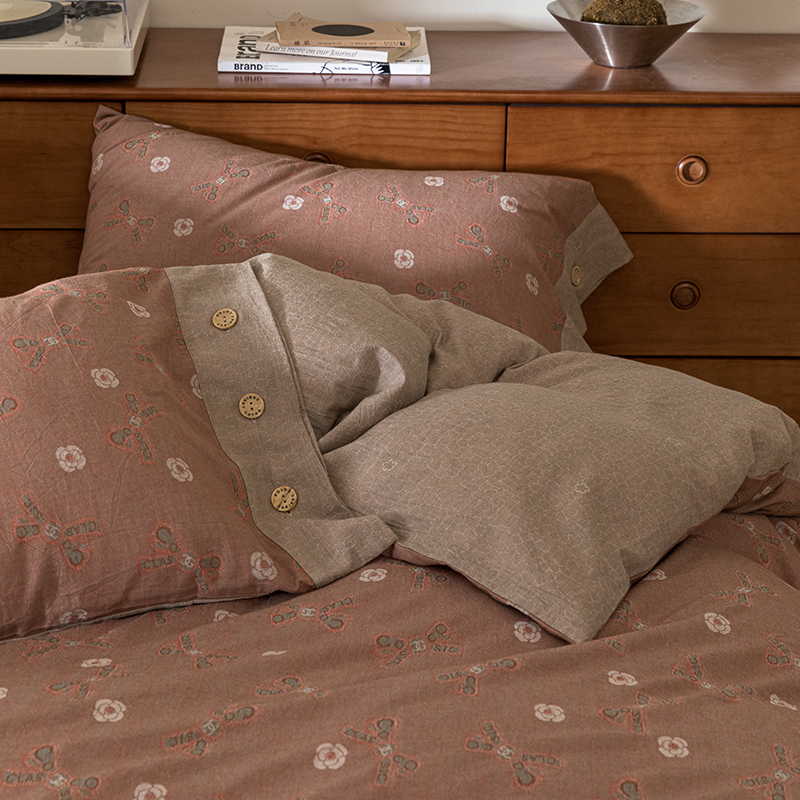 (总)栩裕纺织 2025新款全棉双层纱床盖三件套四件套,可可甜心粉,梦寐花都,抹茶小团子-咖,茉莉清风-粉,木映-绿,暮冬-紫,甜音少女-桔,樱桃奶盖-粉