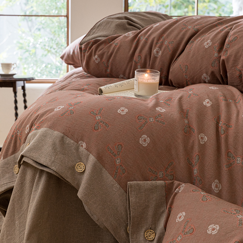 栩裕纺织 2023新款全棉60支双层纱色织大提花系列四件套 婉然