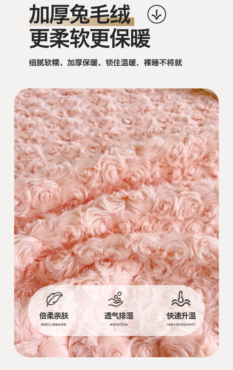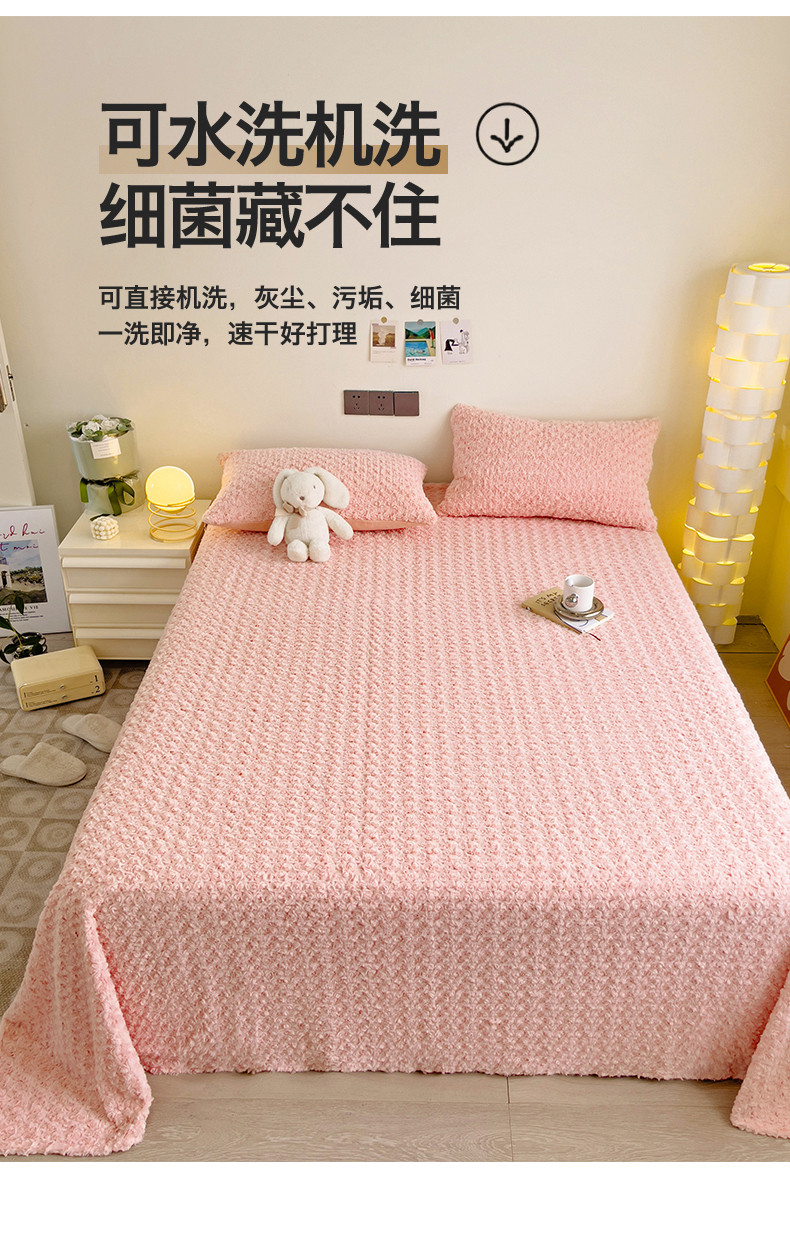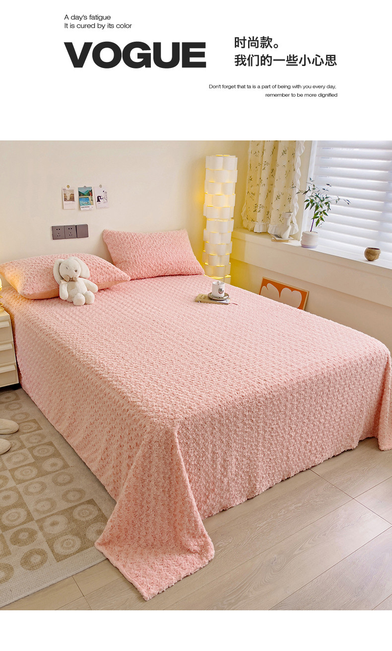 名兮 2023新款兔毛绒床单 玫瑰-粉