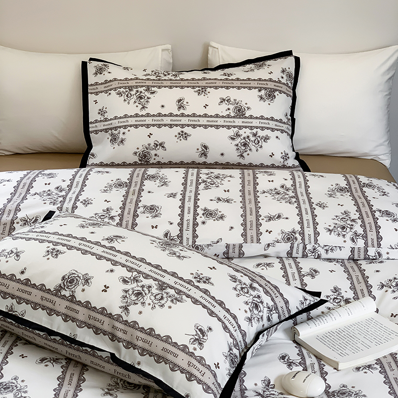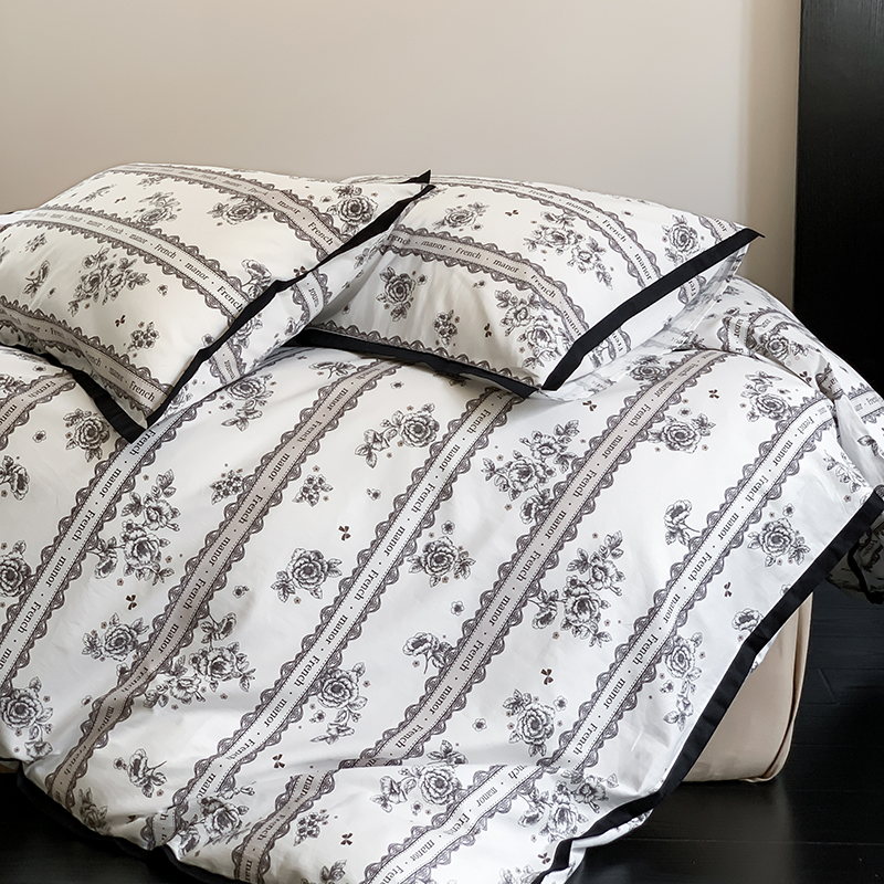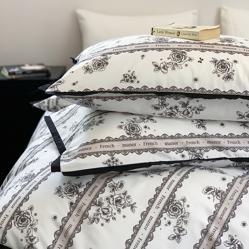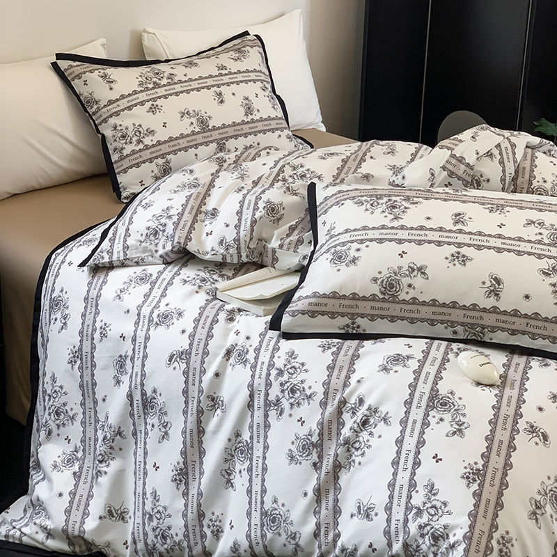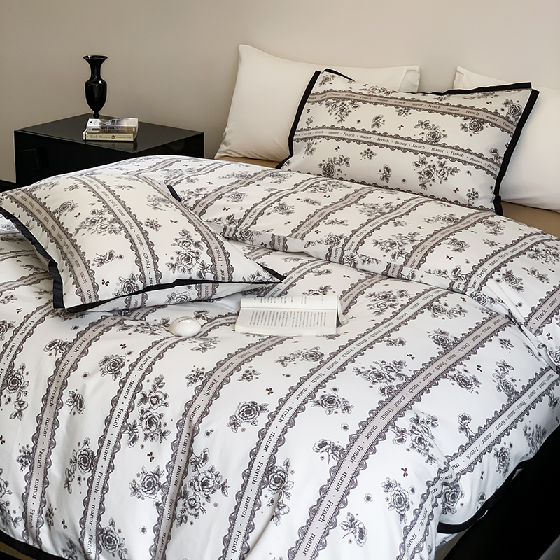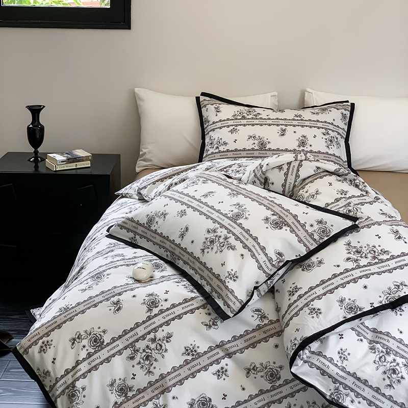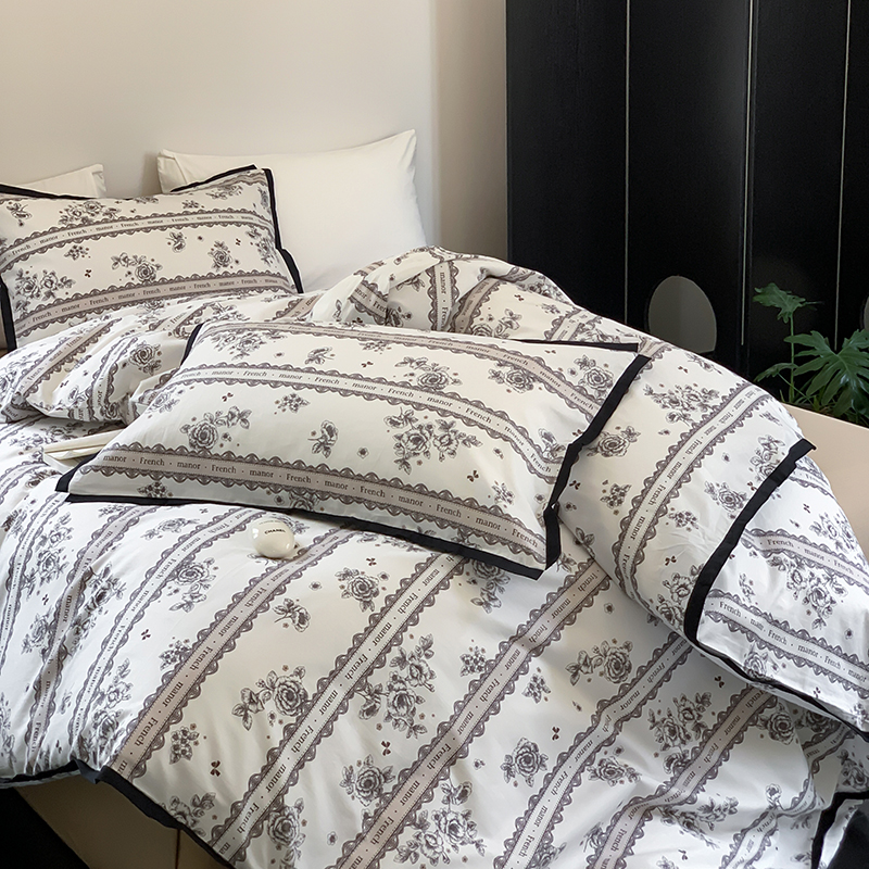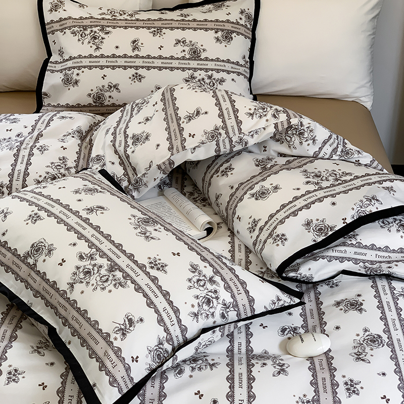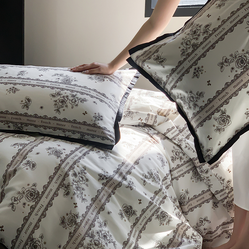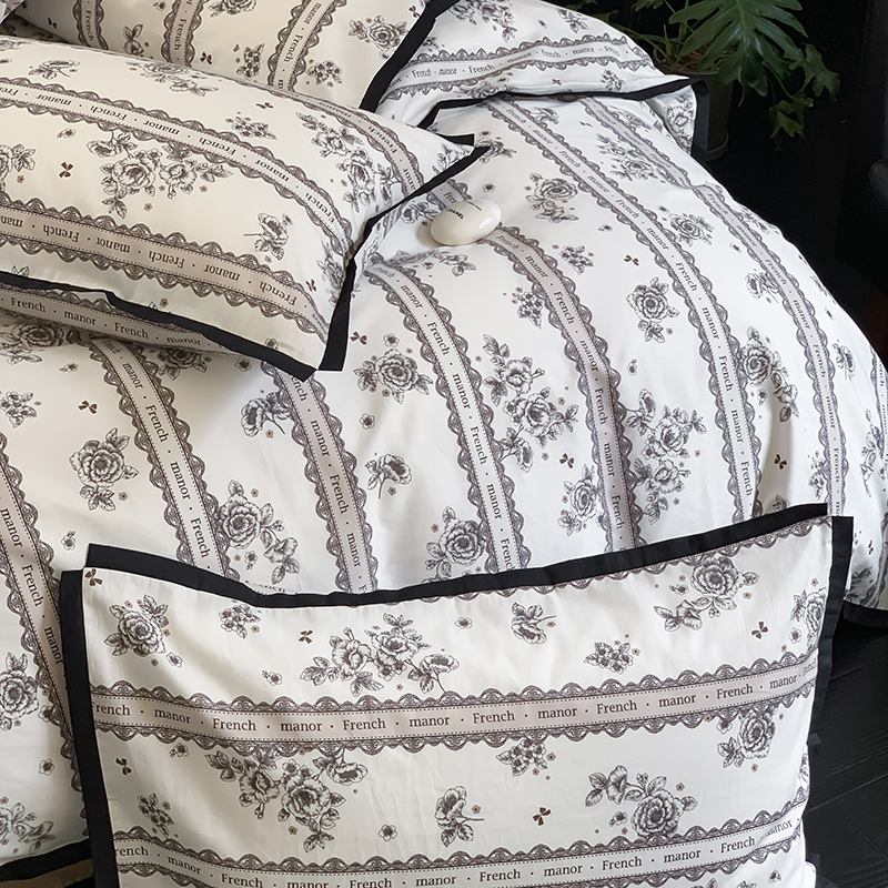 昔可家纺 2023新款全棉复古风黑花边四件套(风格一) 暗夜巴黎