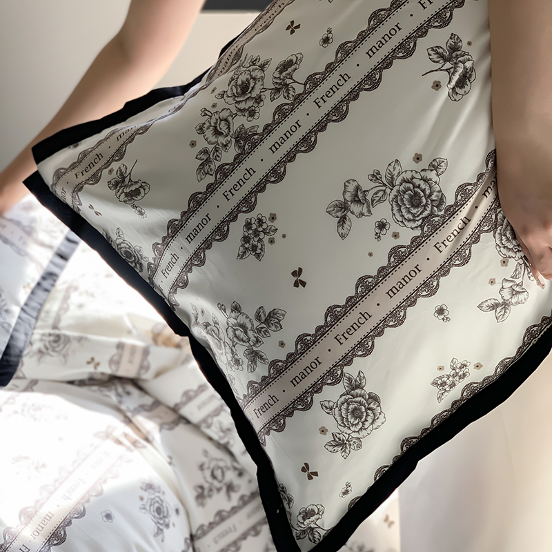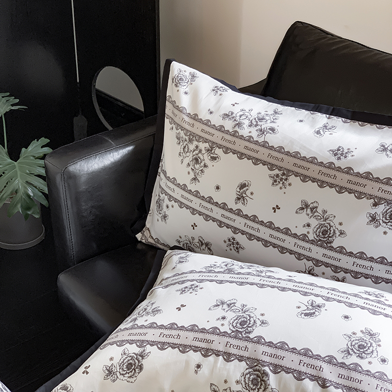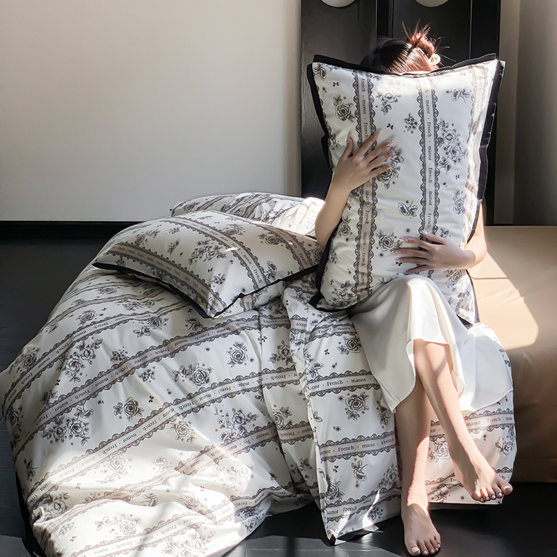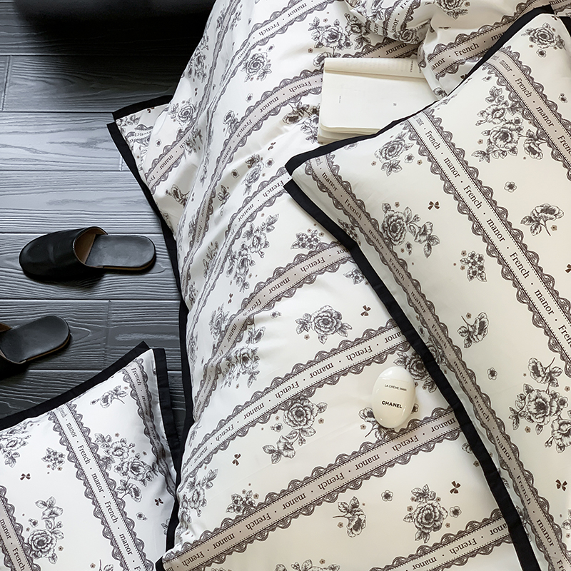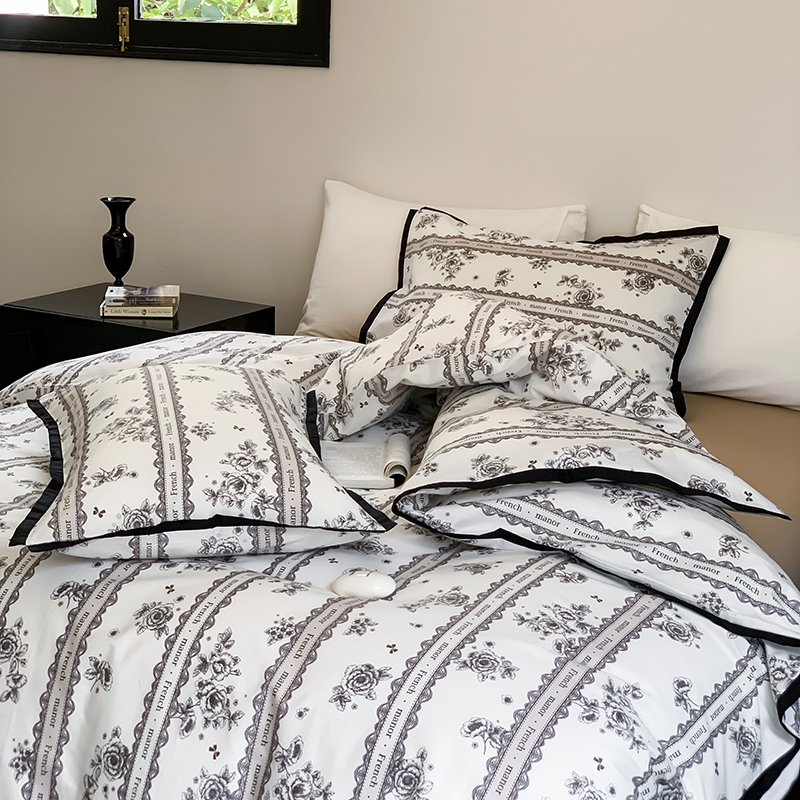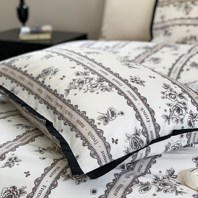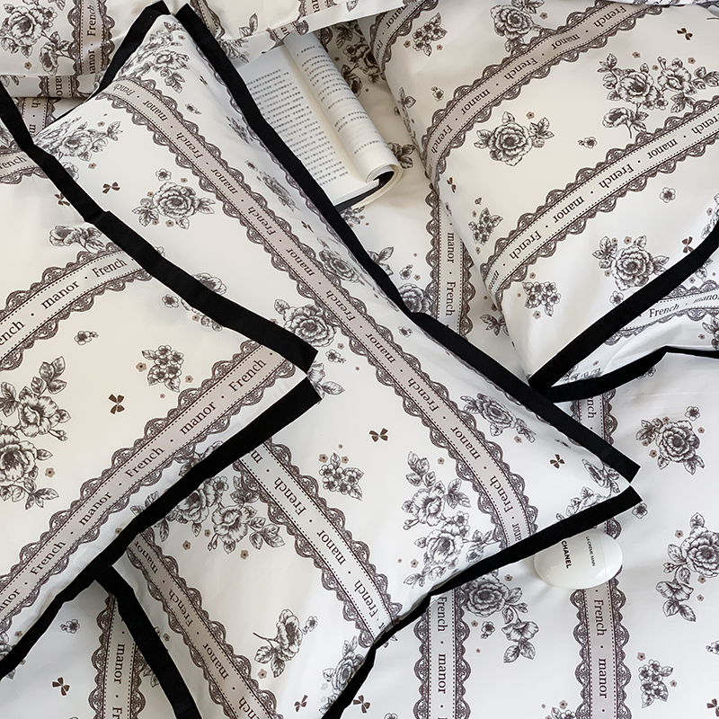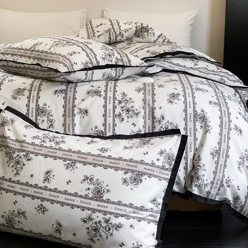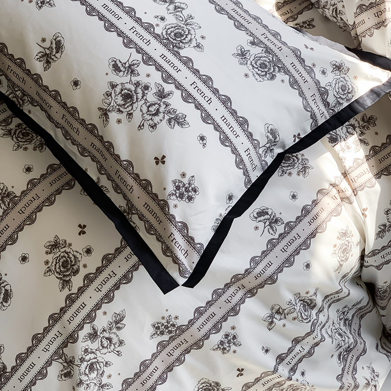 昔可家纺 2023新款全棉复古风黑花边四件套(风格一) 暗夜巴黎