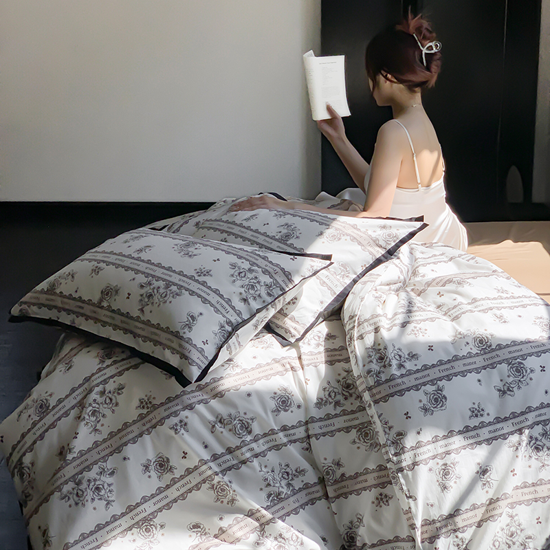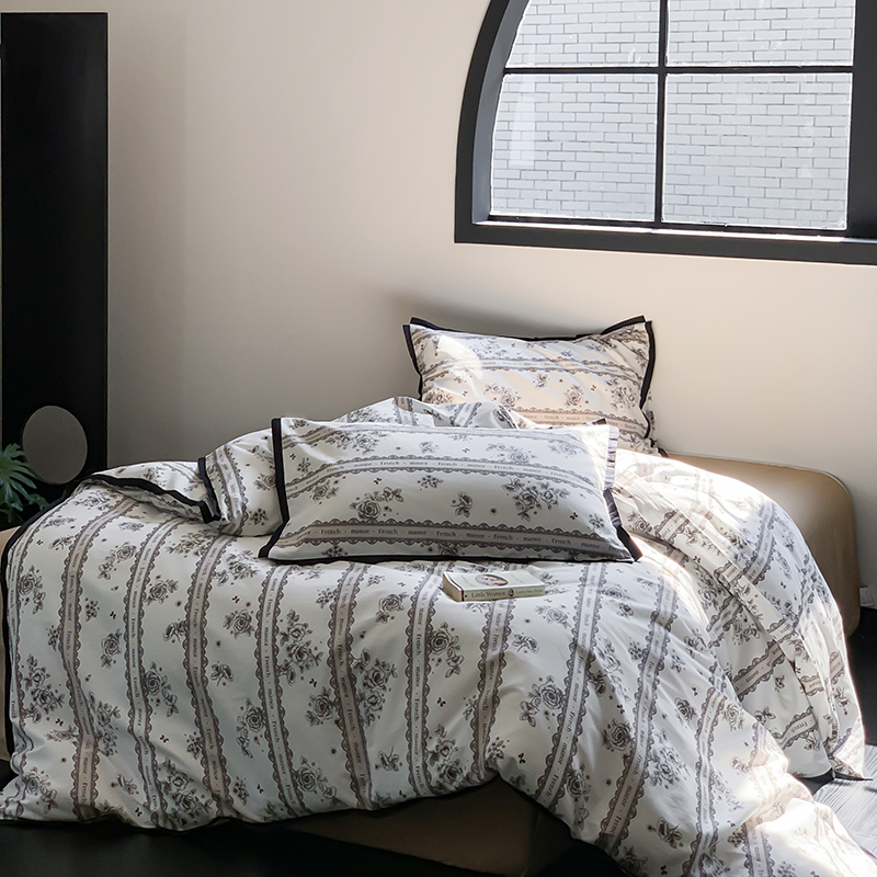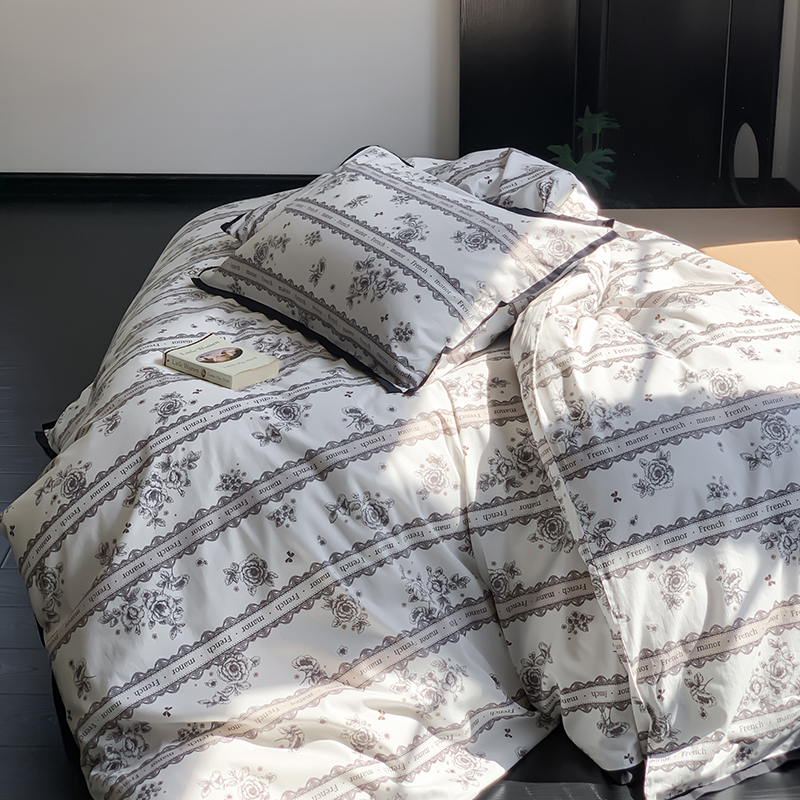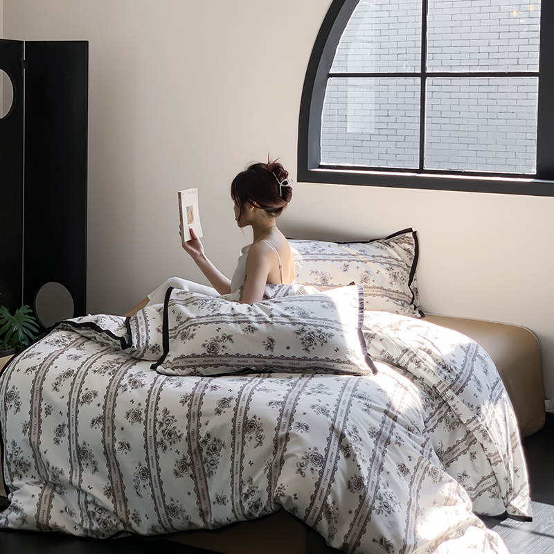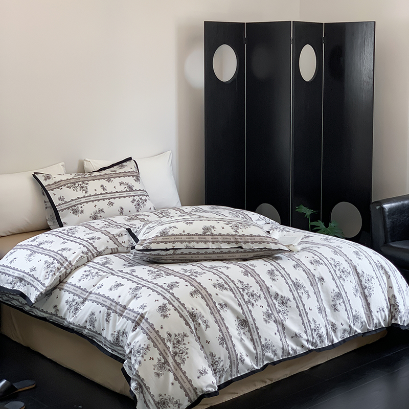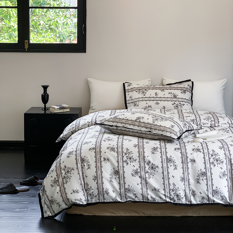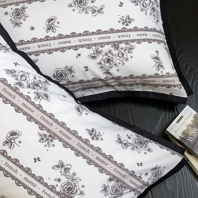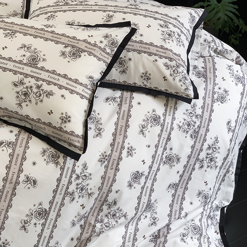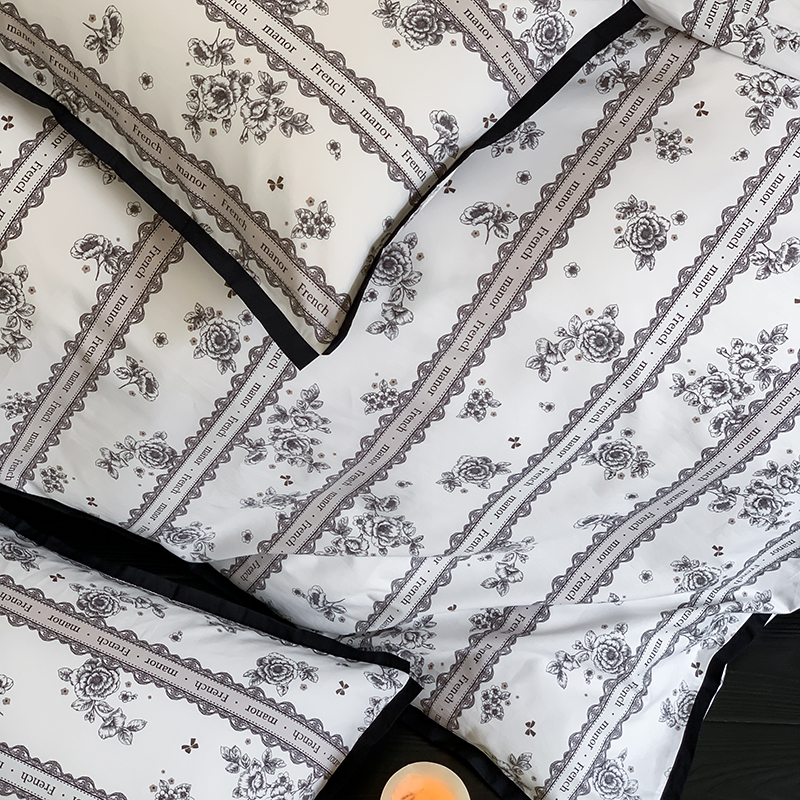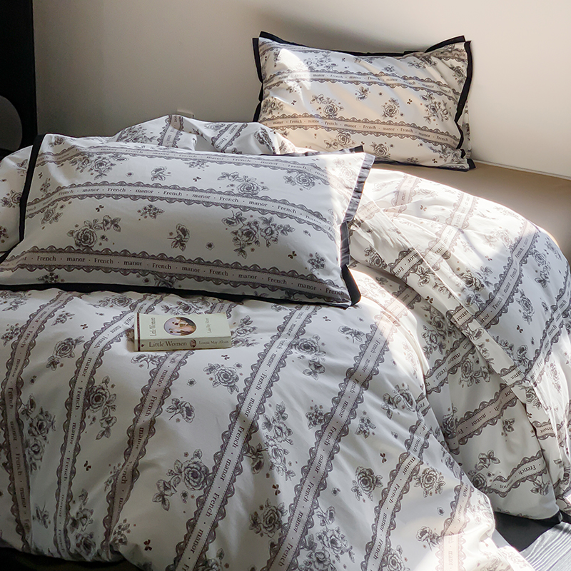 昔可家纺 2023新款全棉复古风黑花边四件套(风格一) 暗夜巴黎