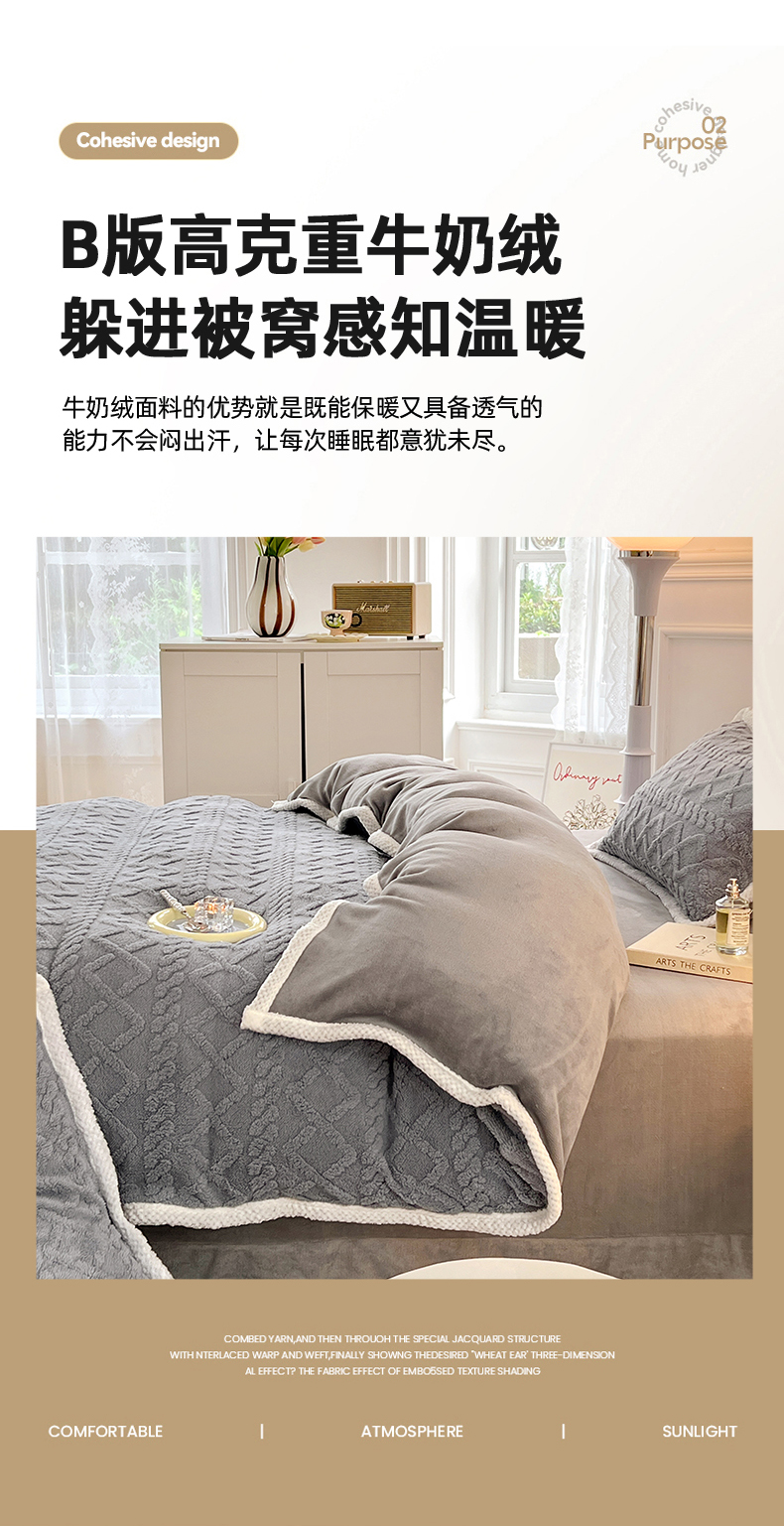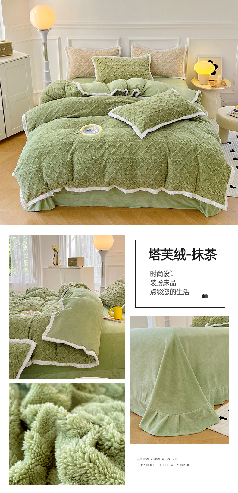 (总)贝拉梦家纺 2025新款加厚塔芙绒菱格纯色素色牛奶绒四件套,古鼎灰,曼巴绿,梦玫瑰,暮山紫,奶丝米,羊绒灰
