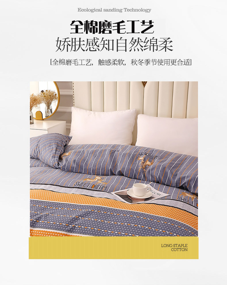 商品名称:晶缦 2023新款典雅系全棉活性磨毛多规格单品四件套-被套 一鹿相伴
