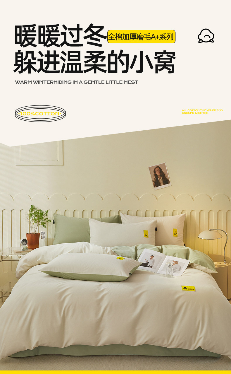 商品名称:蓝米卡夫 2024秋冬全棉加厚磨毛A+四件套系列 A+芝士抹茶