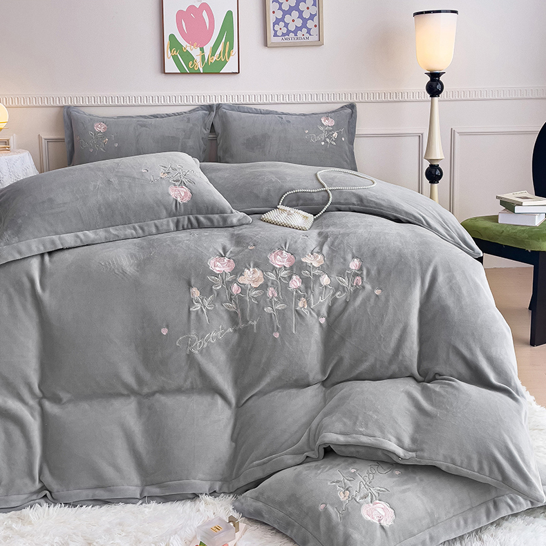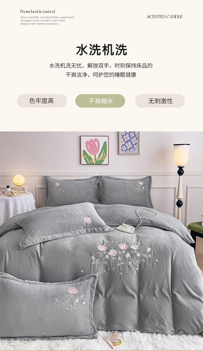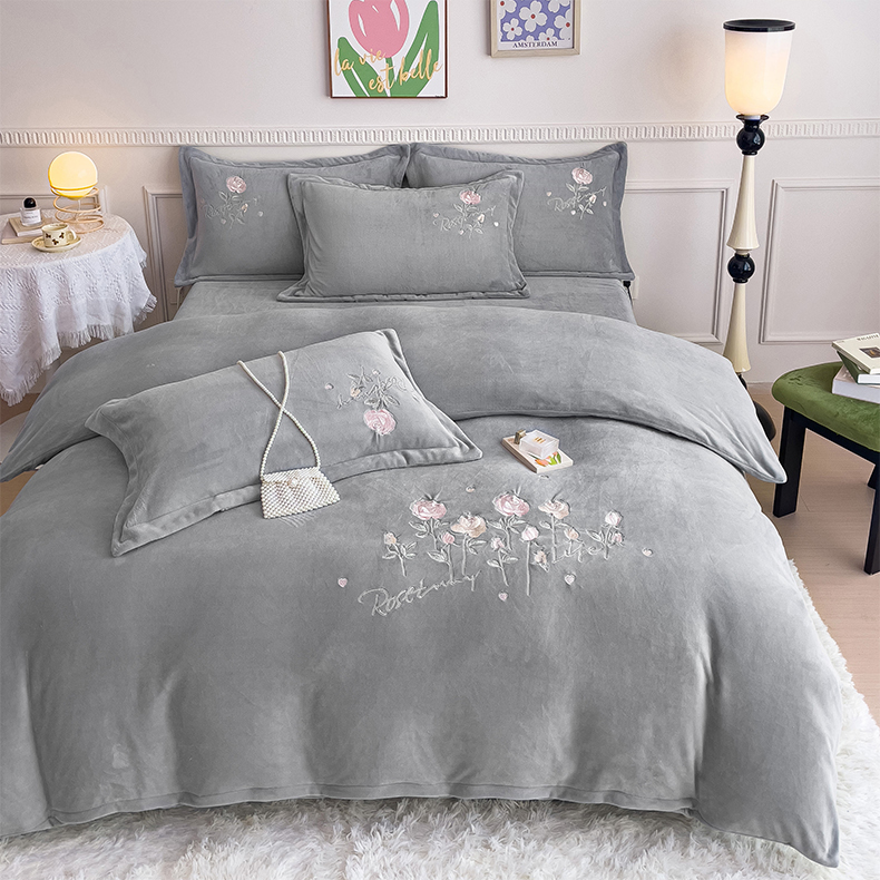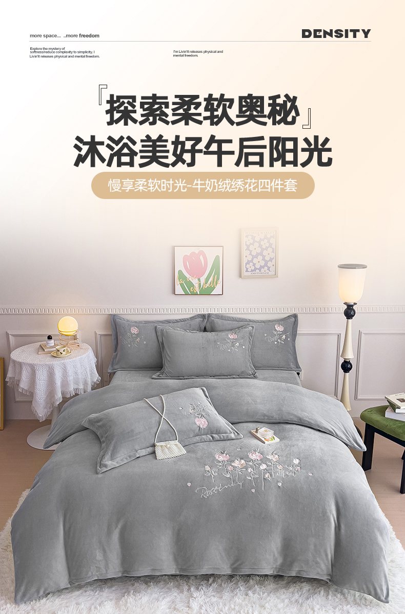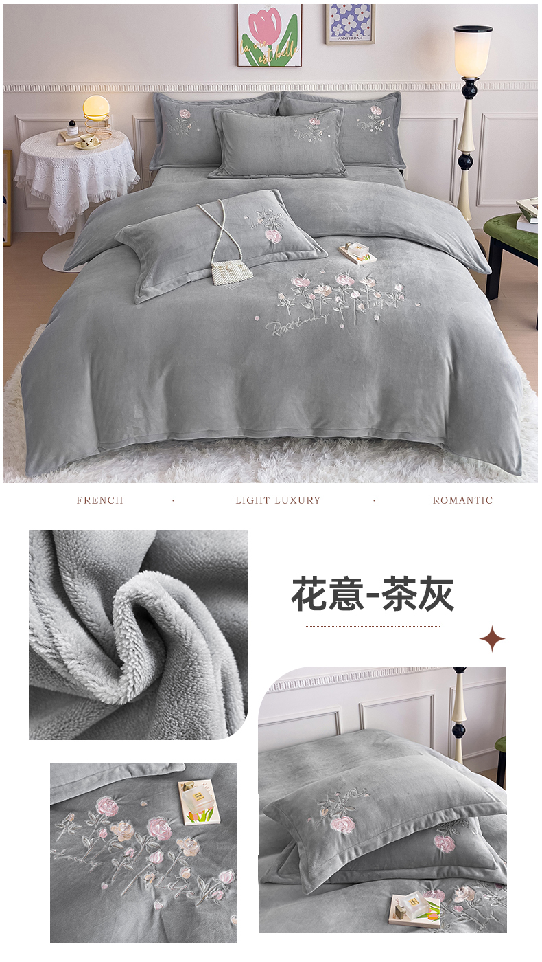 (总)云锦2023秋冬新品全棉磨毛绣花四件套缦芯,缦芯粉,缦芯灰,缦芯橘,缦芯蓝,缦芯紫