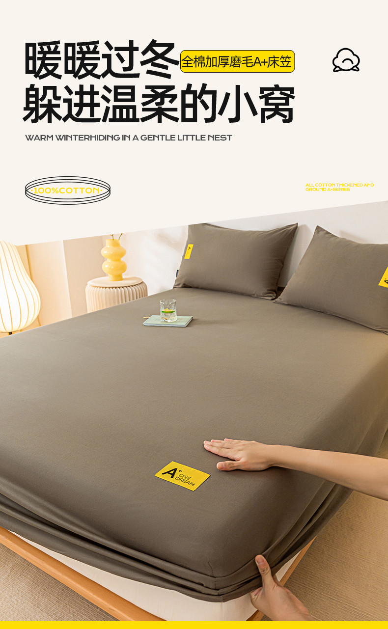 蓝米卡夫 2024秋冬全棉加厚磨毛A+单床笠三件套 A+玛咖CL