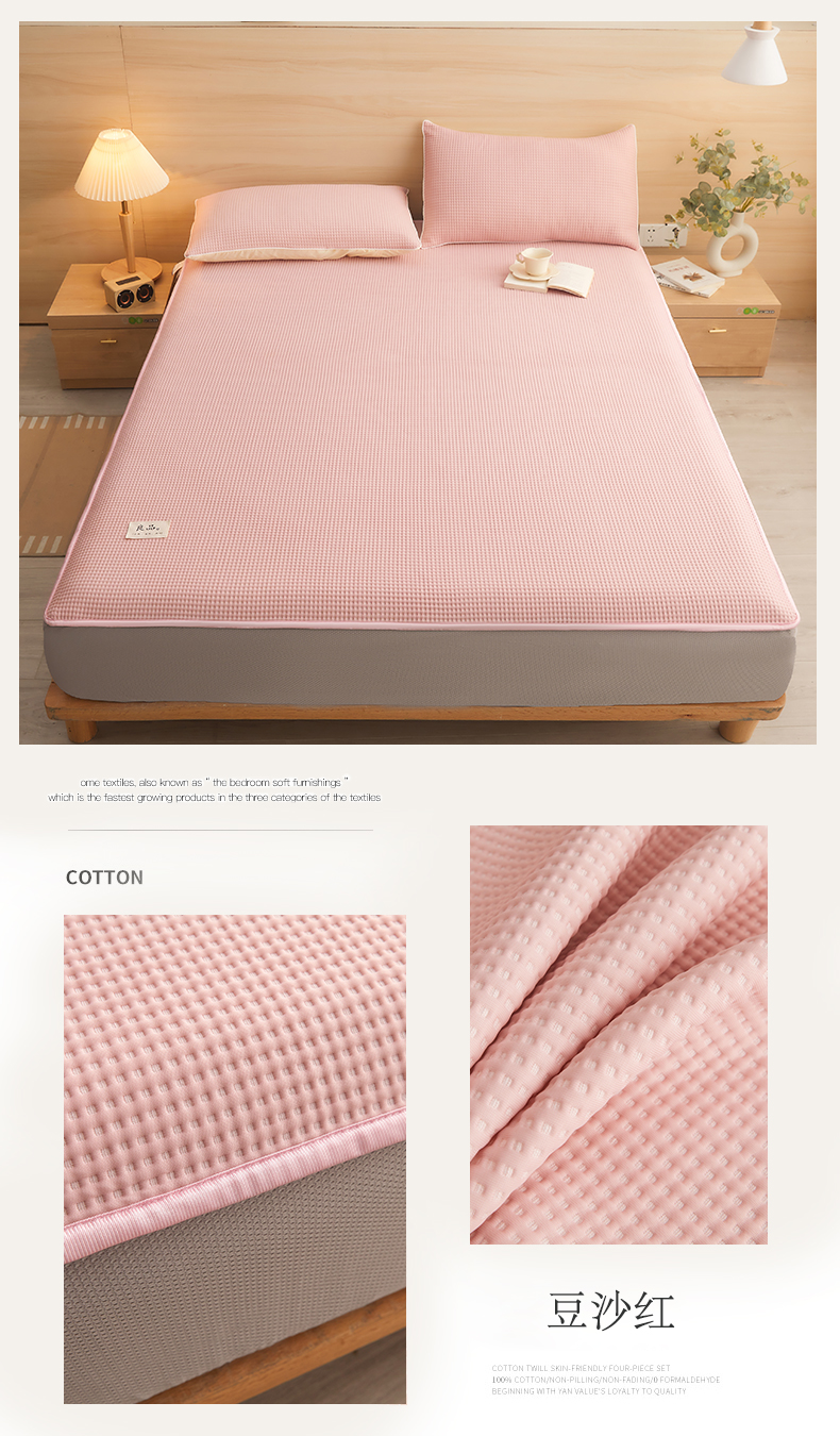 恒爱家纺 2023新款华夫格凉感床笠 豆沙红