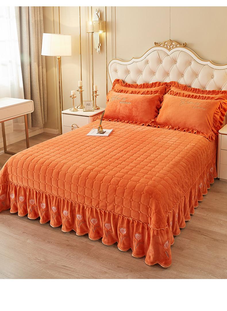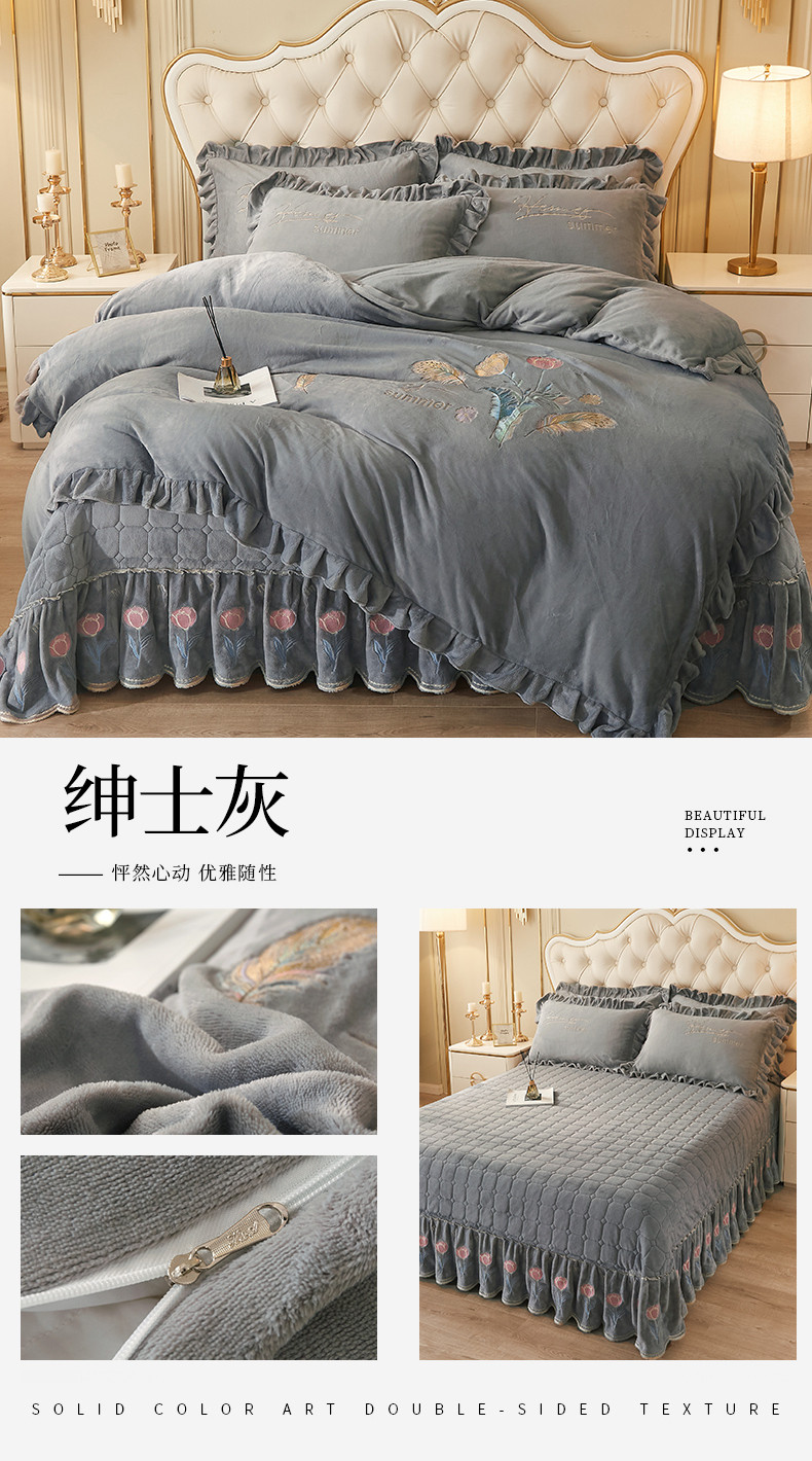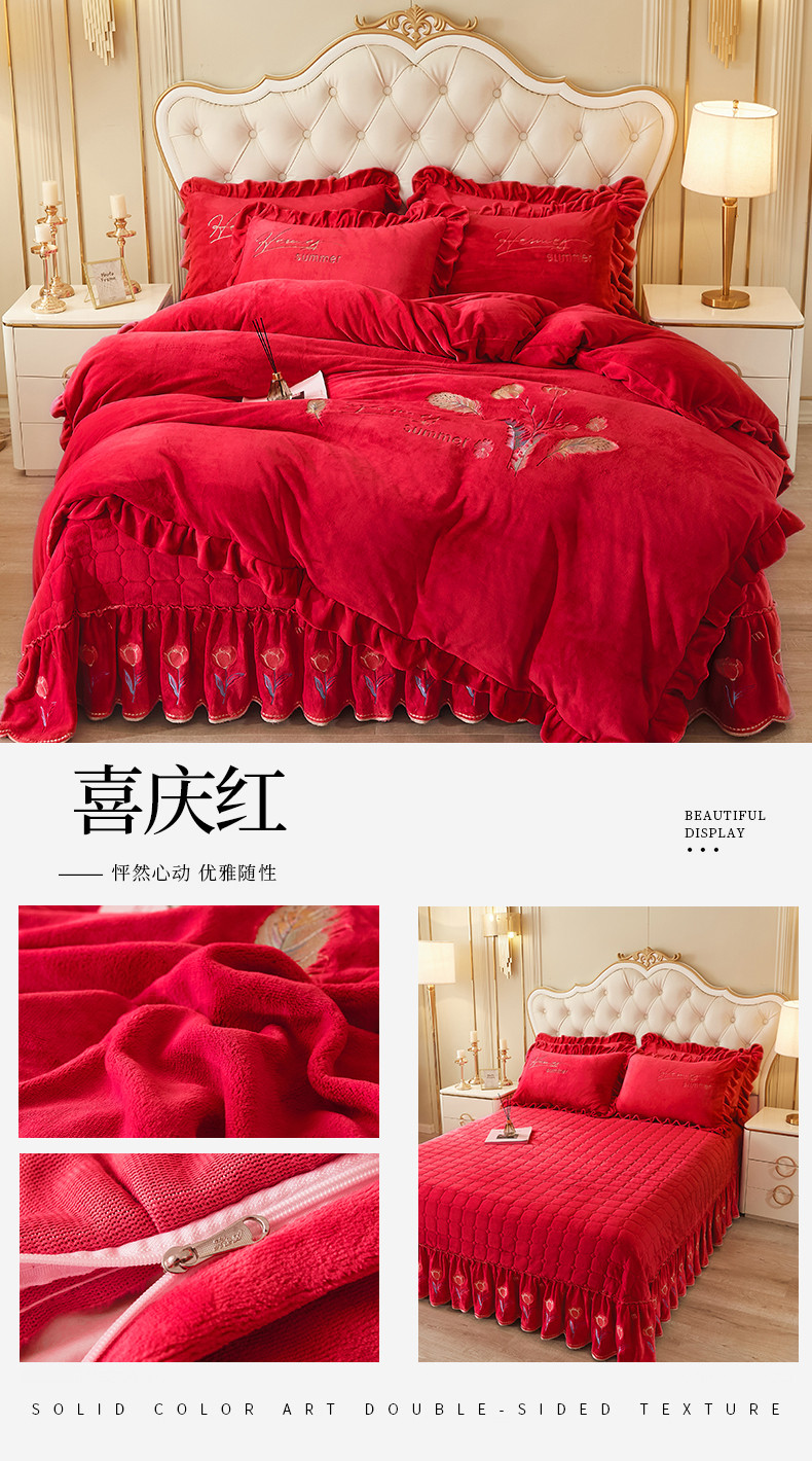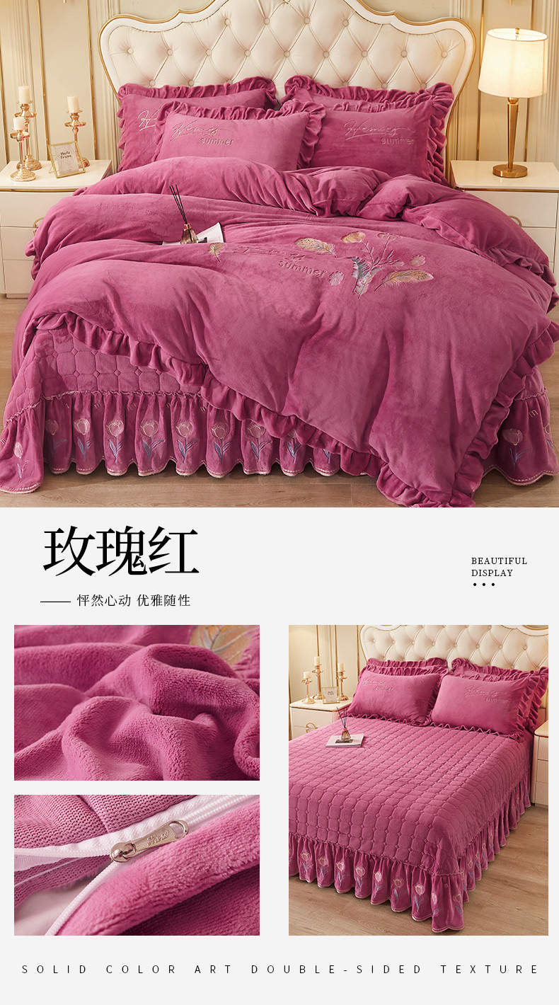 (总)恒爱 2022秋冬水晶绒翩翩花舞夹棉床裙四件套,大红色,豆沙红,橄榄绿,公主粉,桔色,咖啡色,孔雀绿,拉菲红,罗兰紫,玫红色,美人玉,米白色,米驼色,抹茶绿,浅灰色,紫色