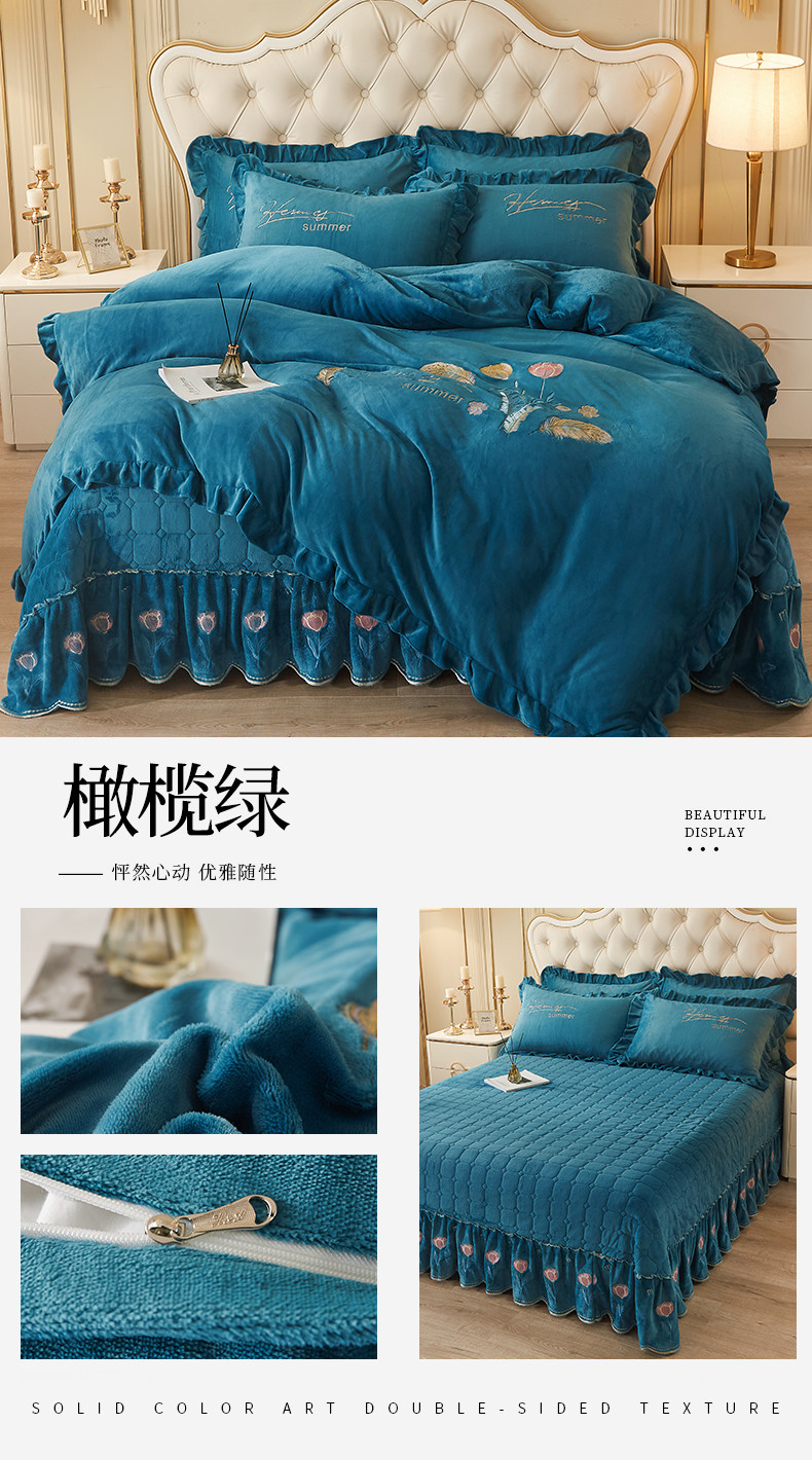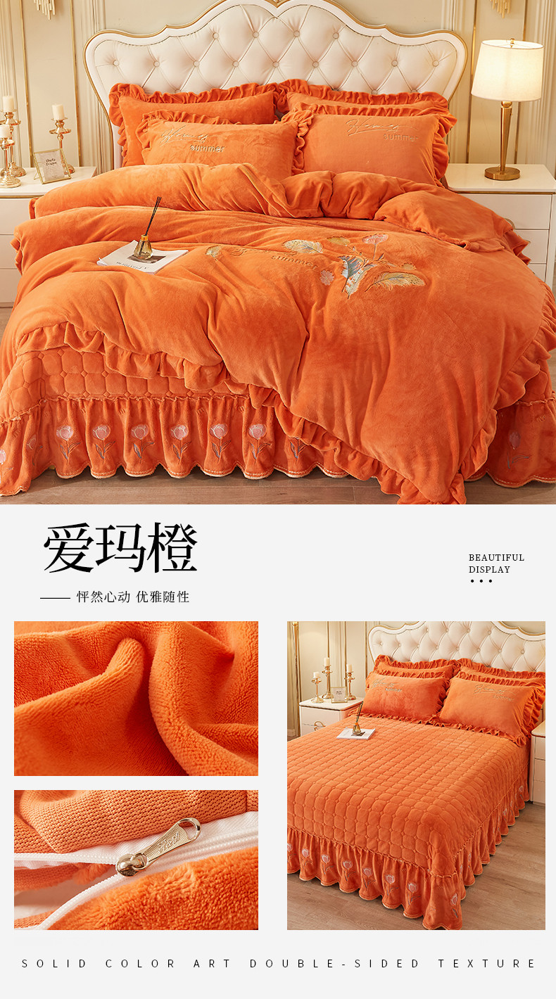 (总)恒爱 2022新款秋冬轻奢宝宝绒刺绣床裙款四件套,爱玛橙,宾利蓝,豆沙红,橄榄绿,高级灰,酒红,梦想粉,浅灰蓝,温馨粉,喜庆红,香妃粉,香芋紫