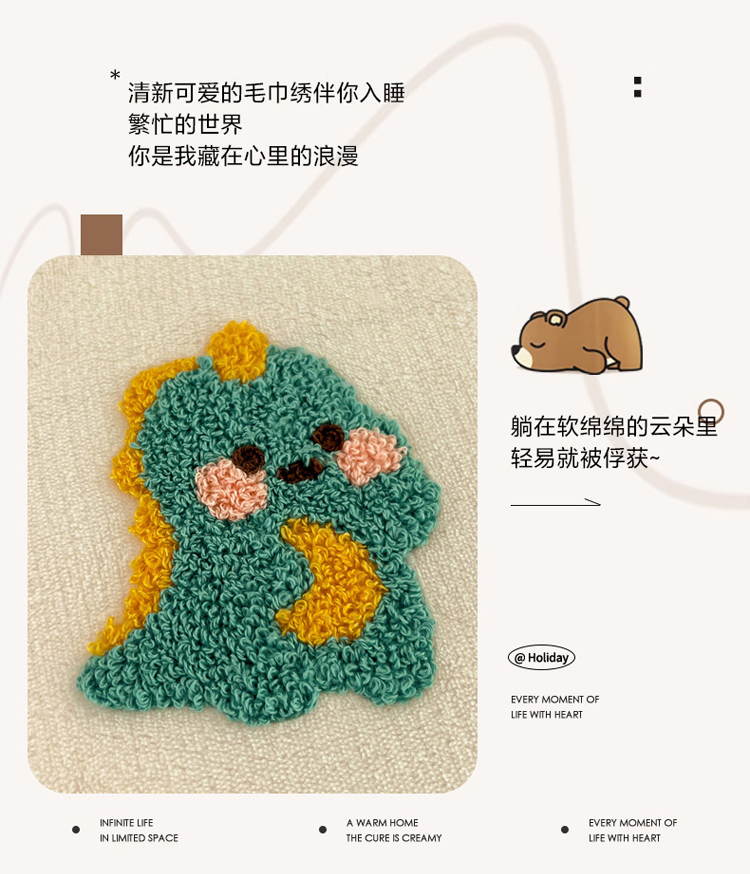 寐居家纺 2023新款高克重牛奶绒毛巾绣四件套 萌宠恐龙-绿