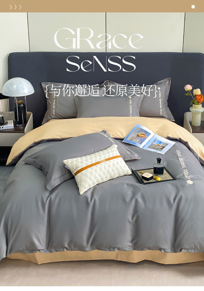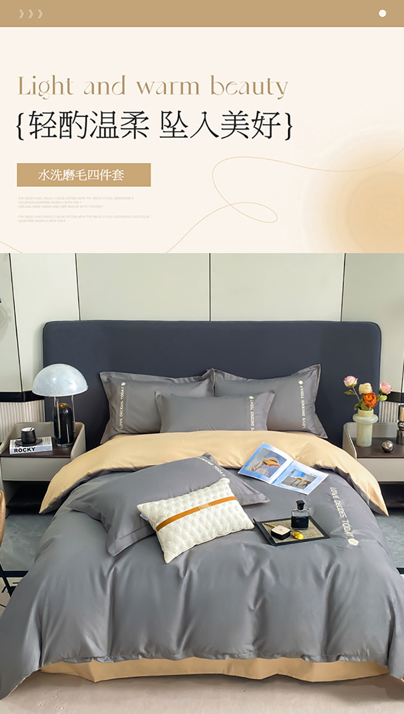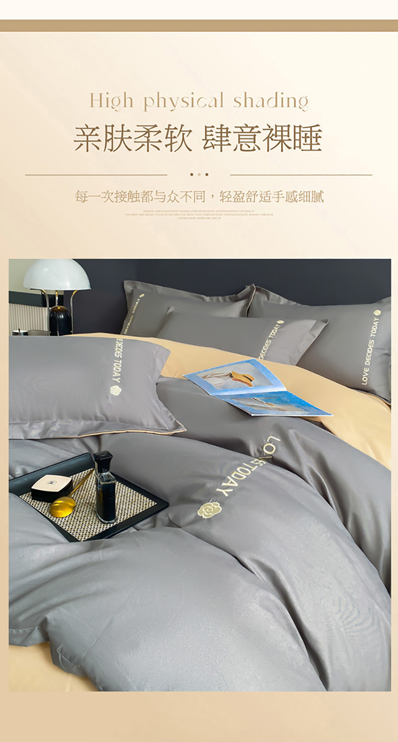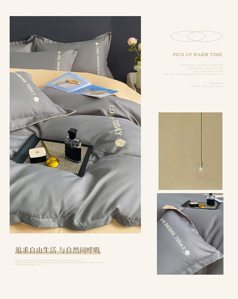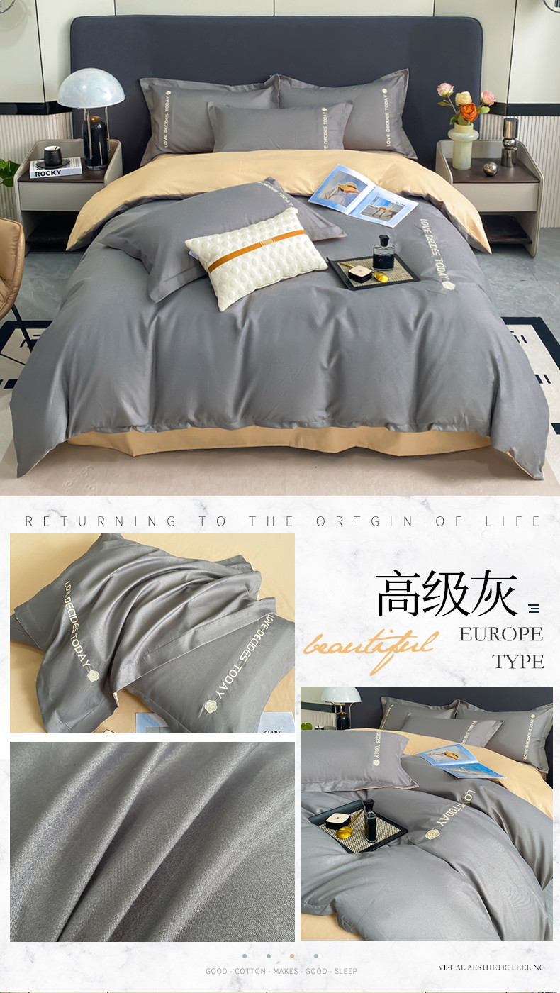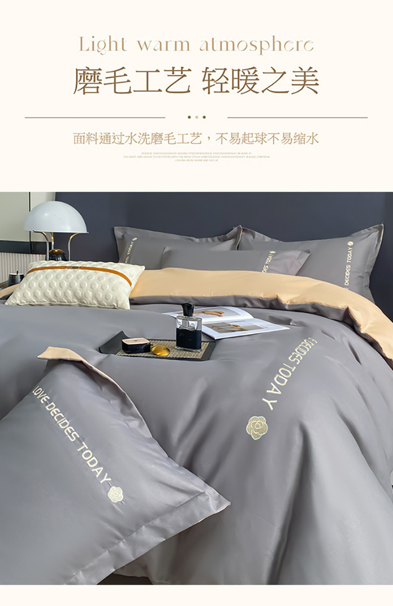商品名称:漫仙阁家纺 2023新款轻奢绣花植物羊绒暖绒四件套 高级灰