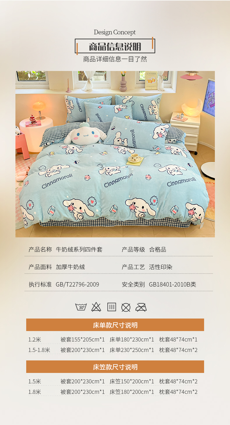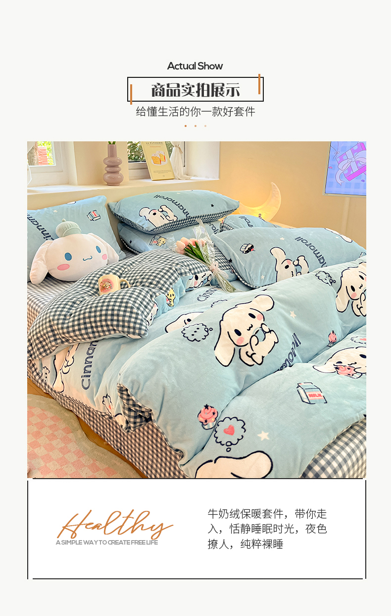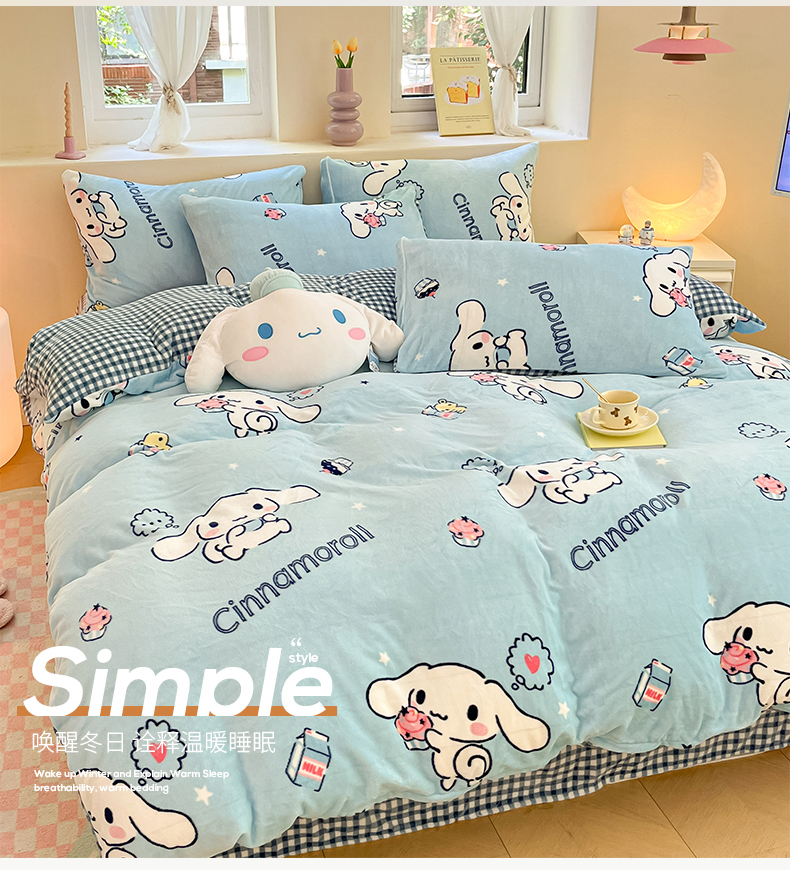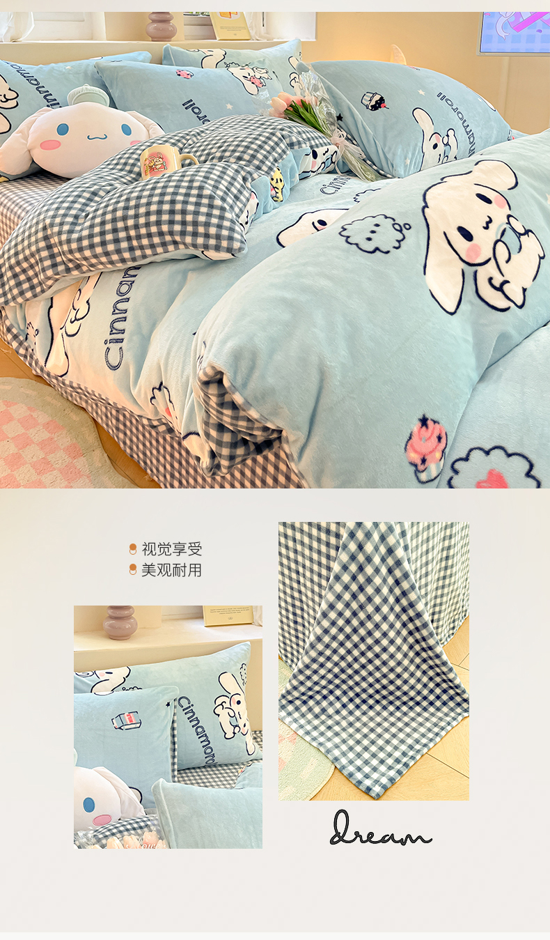 当前位置: 91家纺网 > 商品网购 > 床品套件 > 四件套 > 牛奶绒四件套 > 桃子 2023新款正版三丽鸥授权卡通加厚高克重牛奶绒系列四件套 绒三丽鸥-冰淇淋甜点玉桂狗