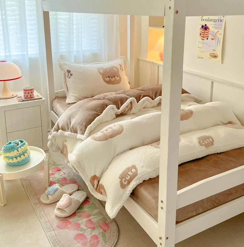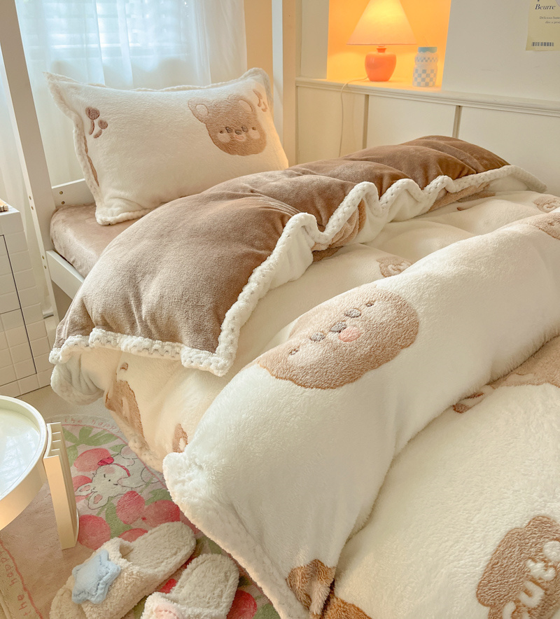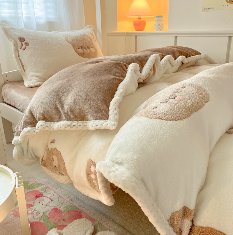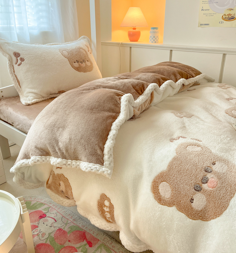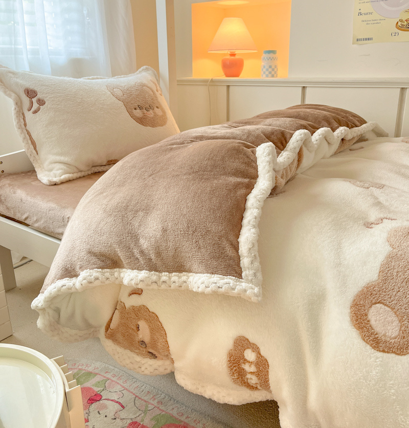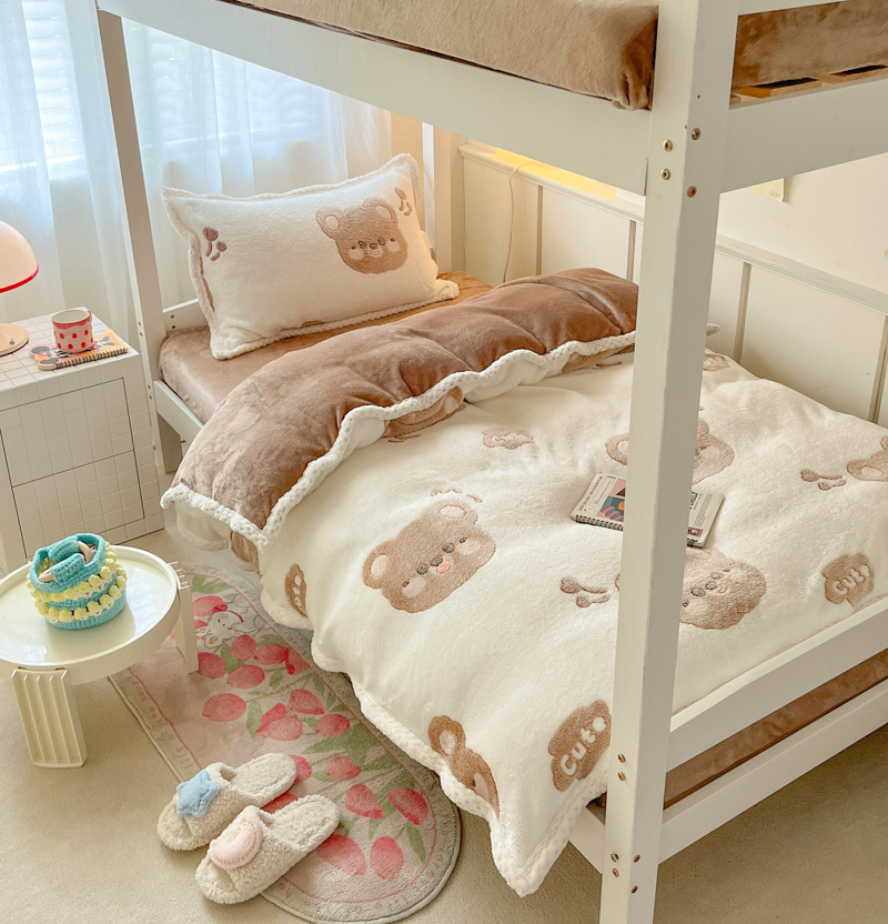 当前位置: 91家纺网 > 商品网购 > 床品套件 > 四件套 > 牛奶绒四件套 > 川悦生活 2023新款立体雪花绒宽边学生床三件套四件套 宽边可爱熊仔