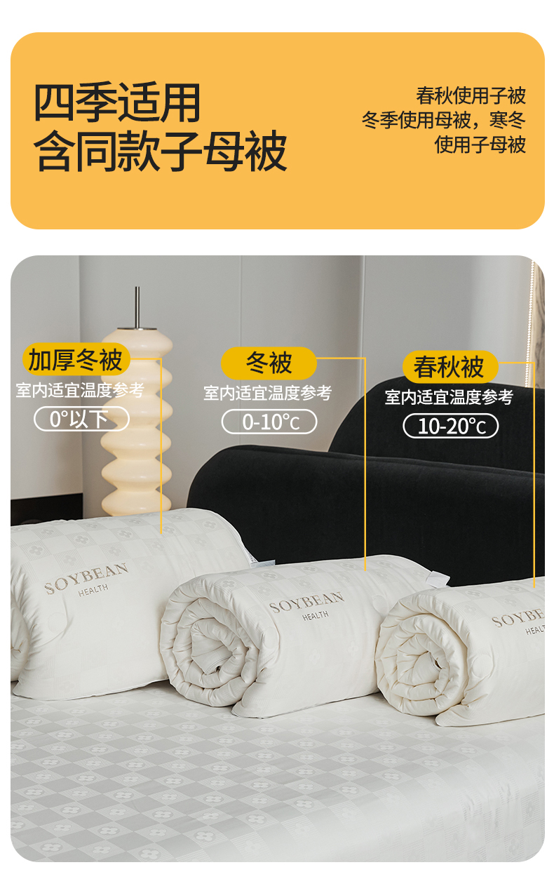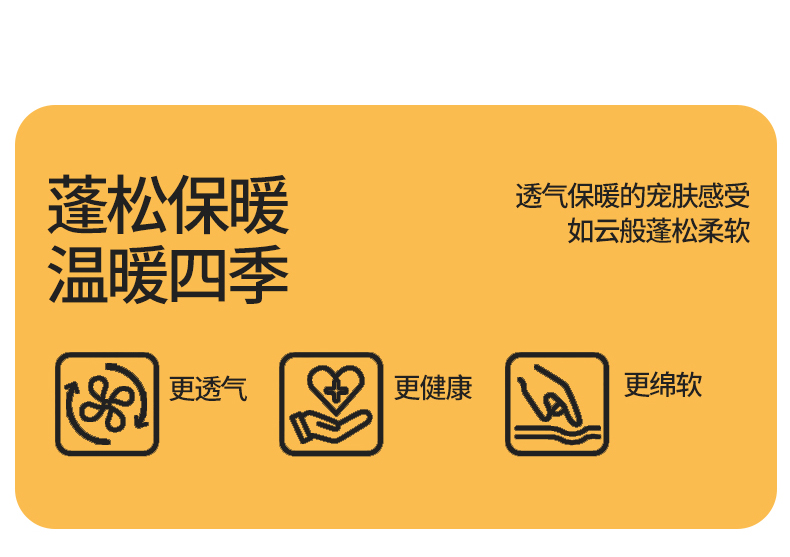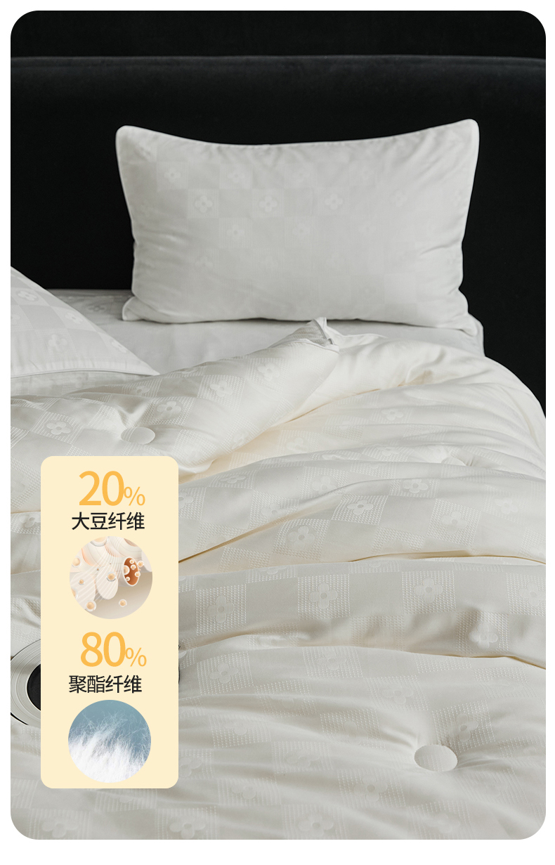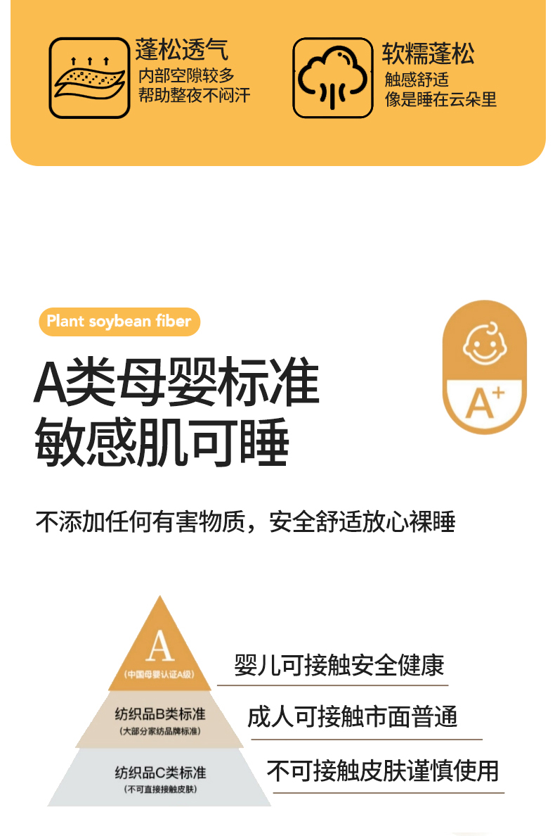 • 填充纤维种类: 大豆蛋白改性聚酯纤维