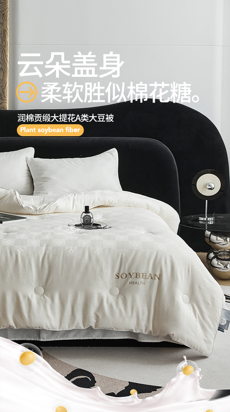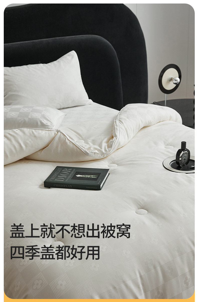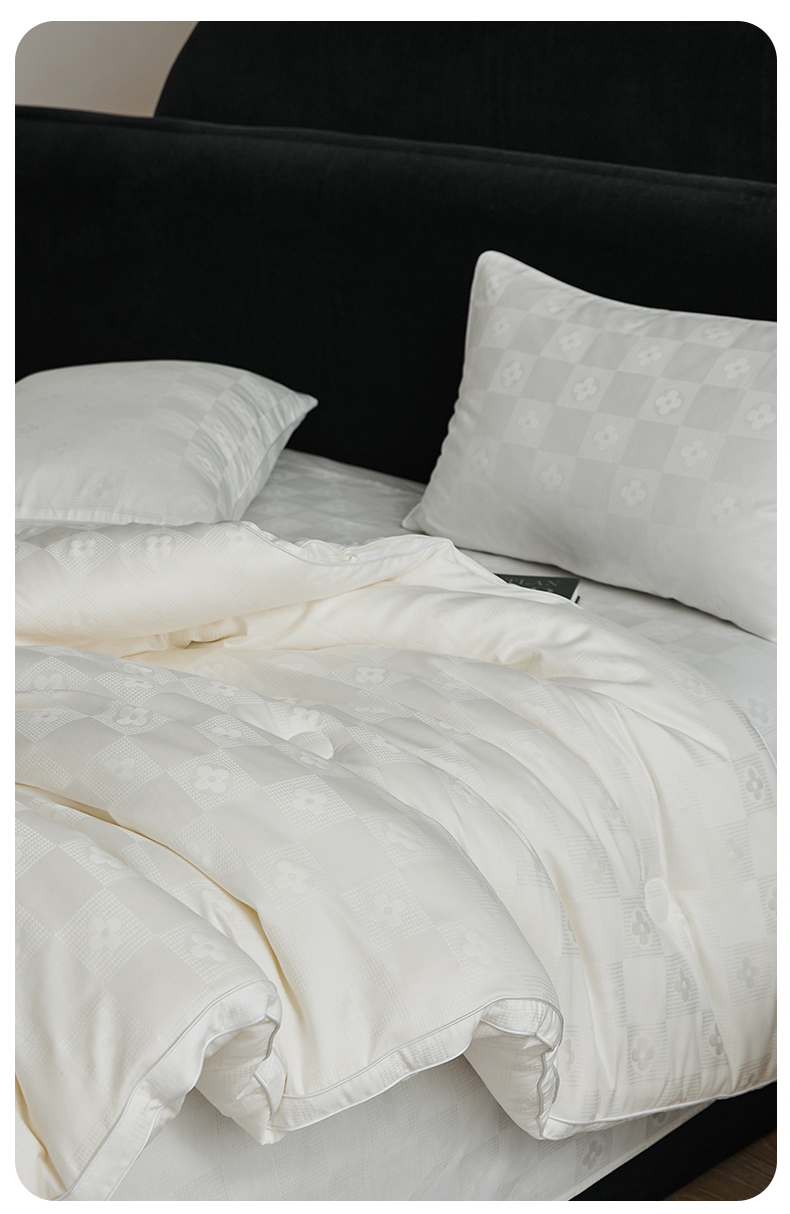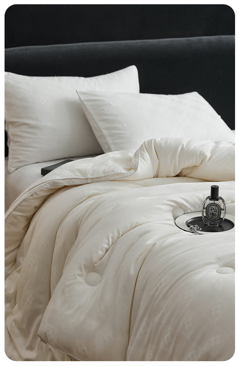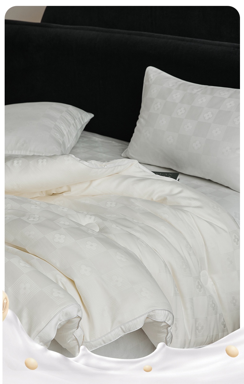 • 91家纺网 家纺一手货源 找家纺 (总)头等舱 2025新款天棉缎大提花55莱赛尔大豆7A抗菌秋冬被(模特图),卡布丽娜,慕斯,配包装