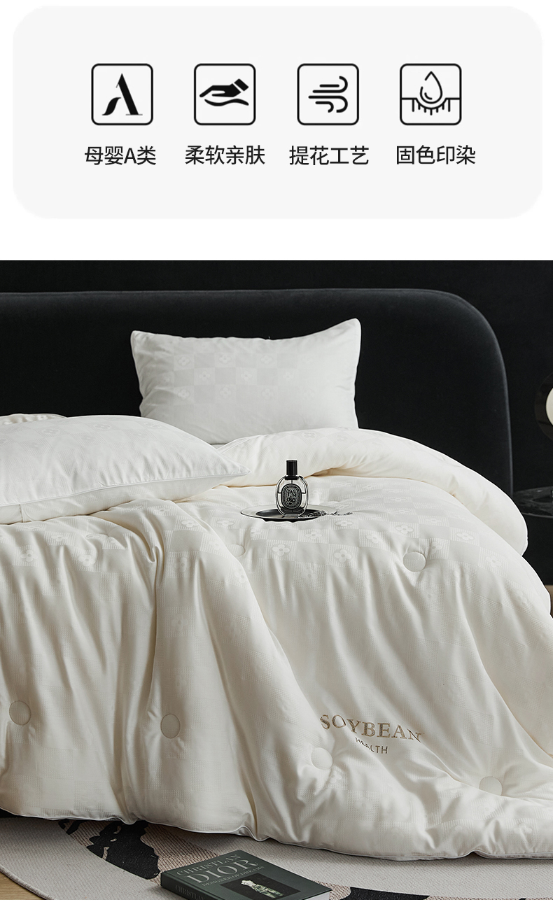 头等舱 润棉贡缎大提花A类20大豆抗菌秋冬被(基础款)拍摄2 索菲娅本白