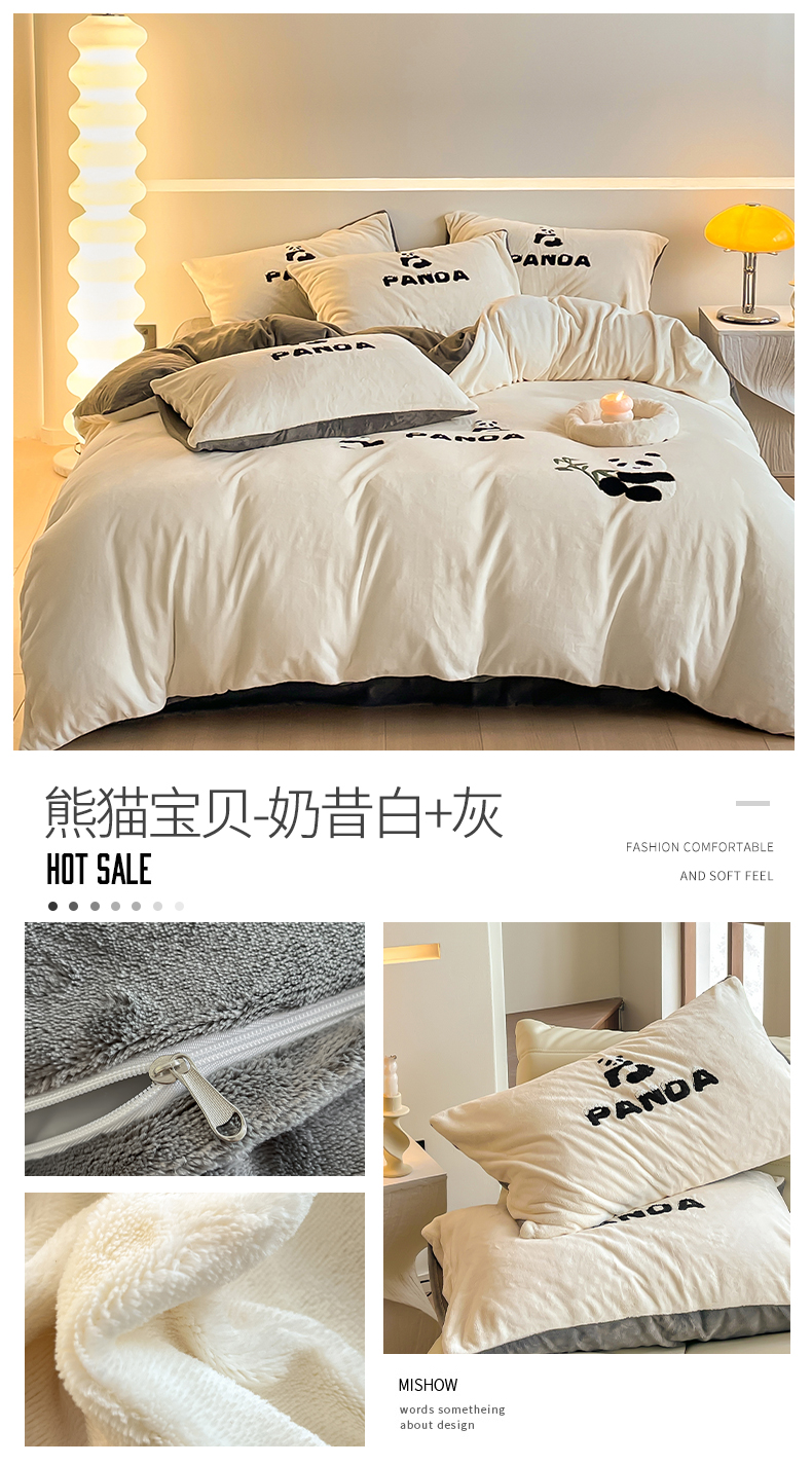 当前位置: 91家纺网 > 商品网购 > 床品套件 > 四件套 > 牛奶绒四件套 > 慕色家纺 2023新款A类牛奶绒毛巾绣四件套 熊猫宝贝绒系列 熊猫宝贝-奶昔白+灰
