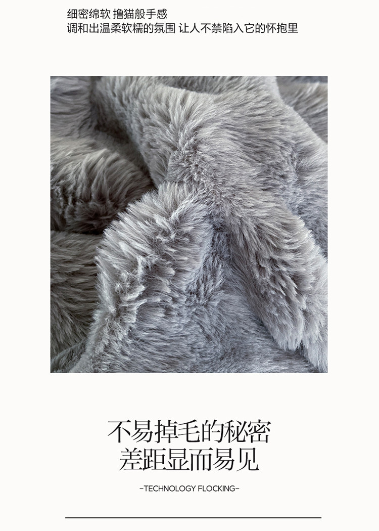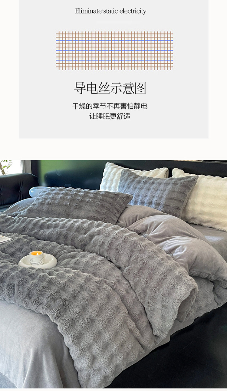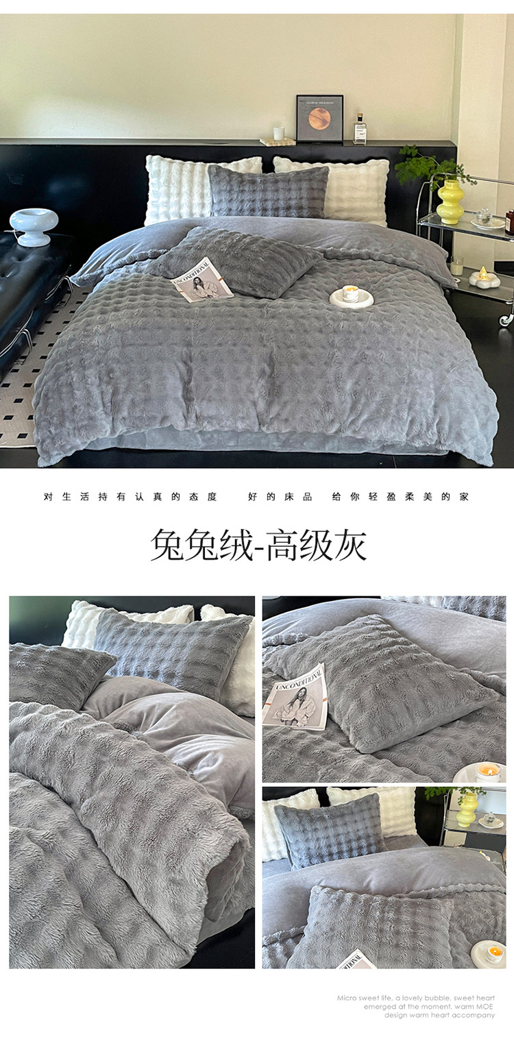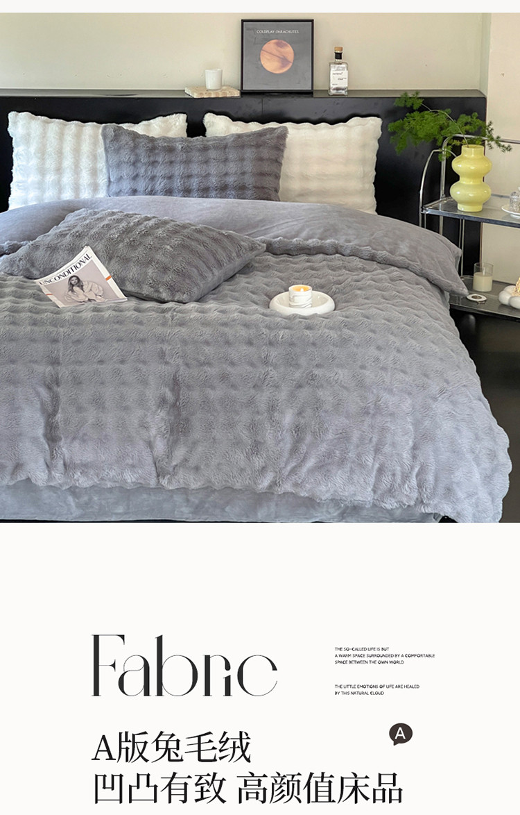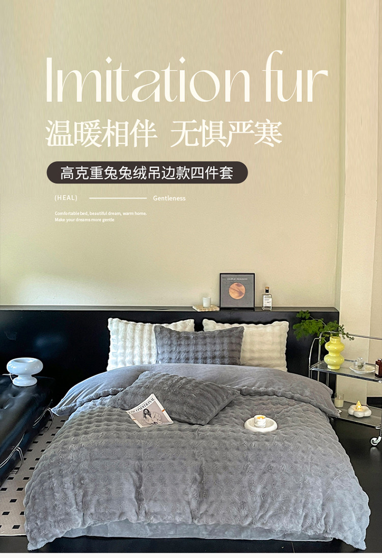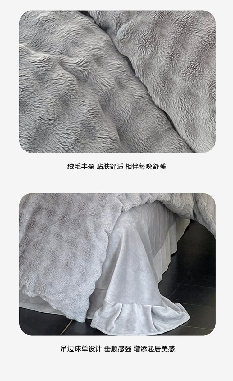 商品名称:乐童-2024新款高克重兔兔绒吊边款四件套 兔兔绒-高级灰