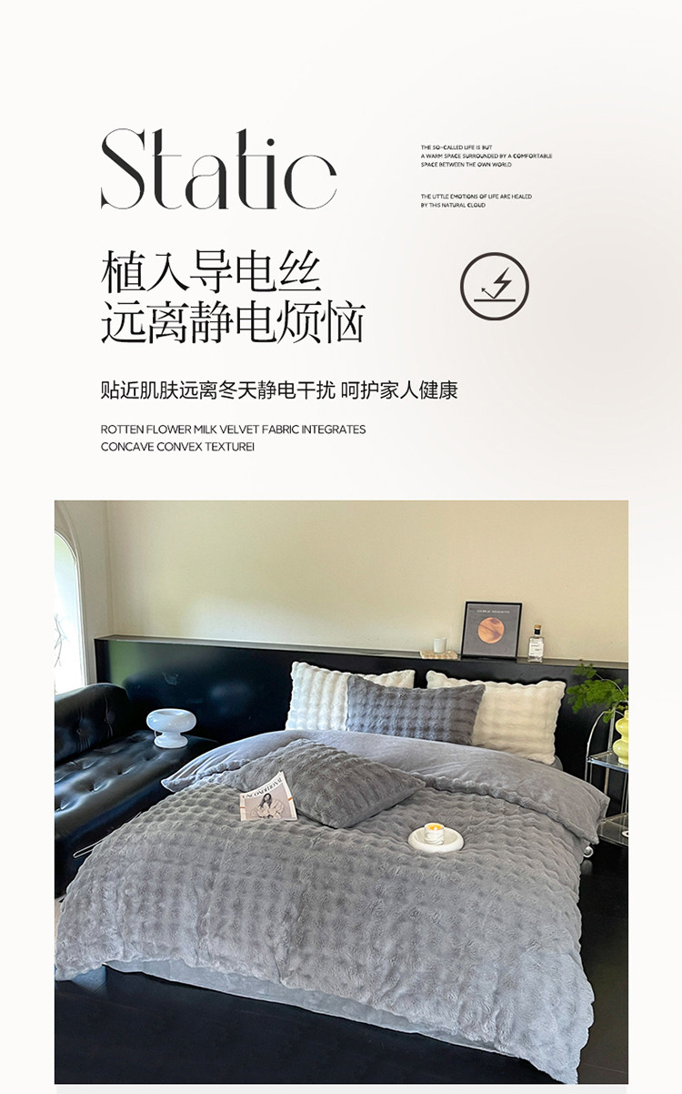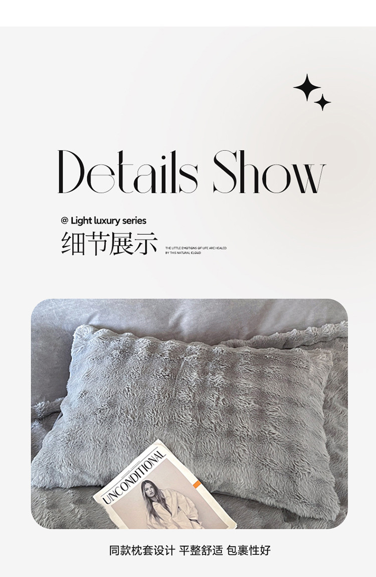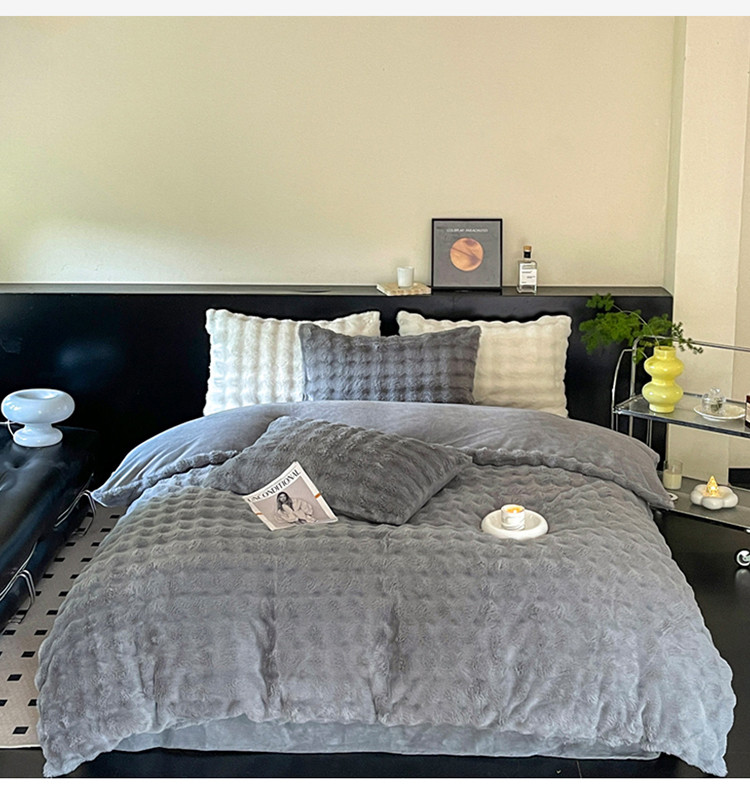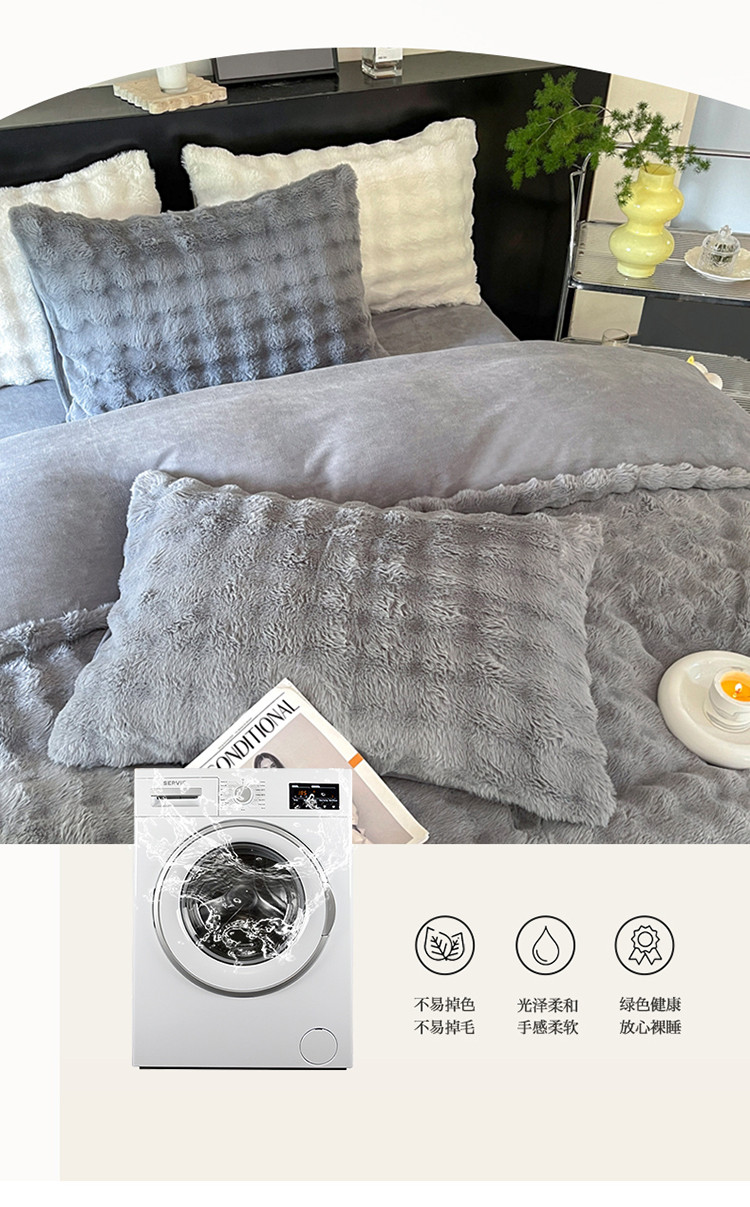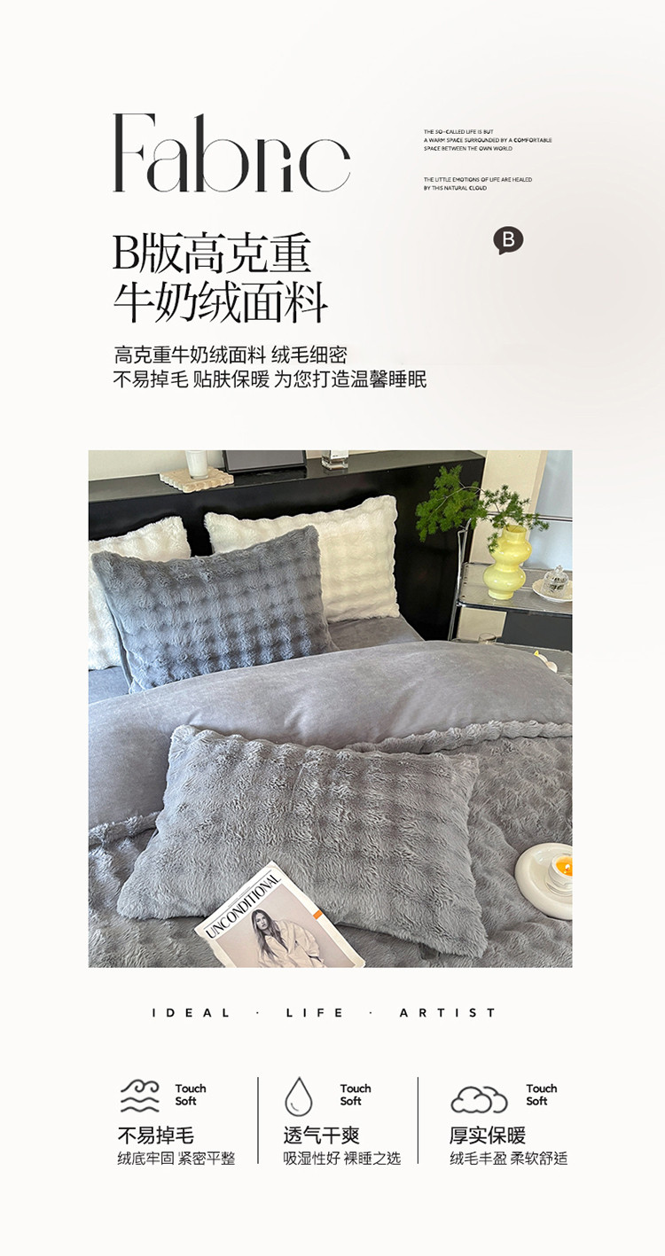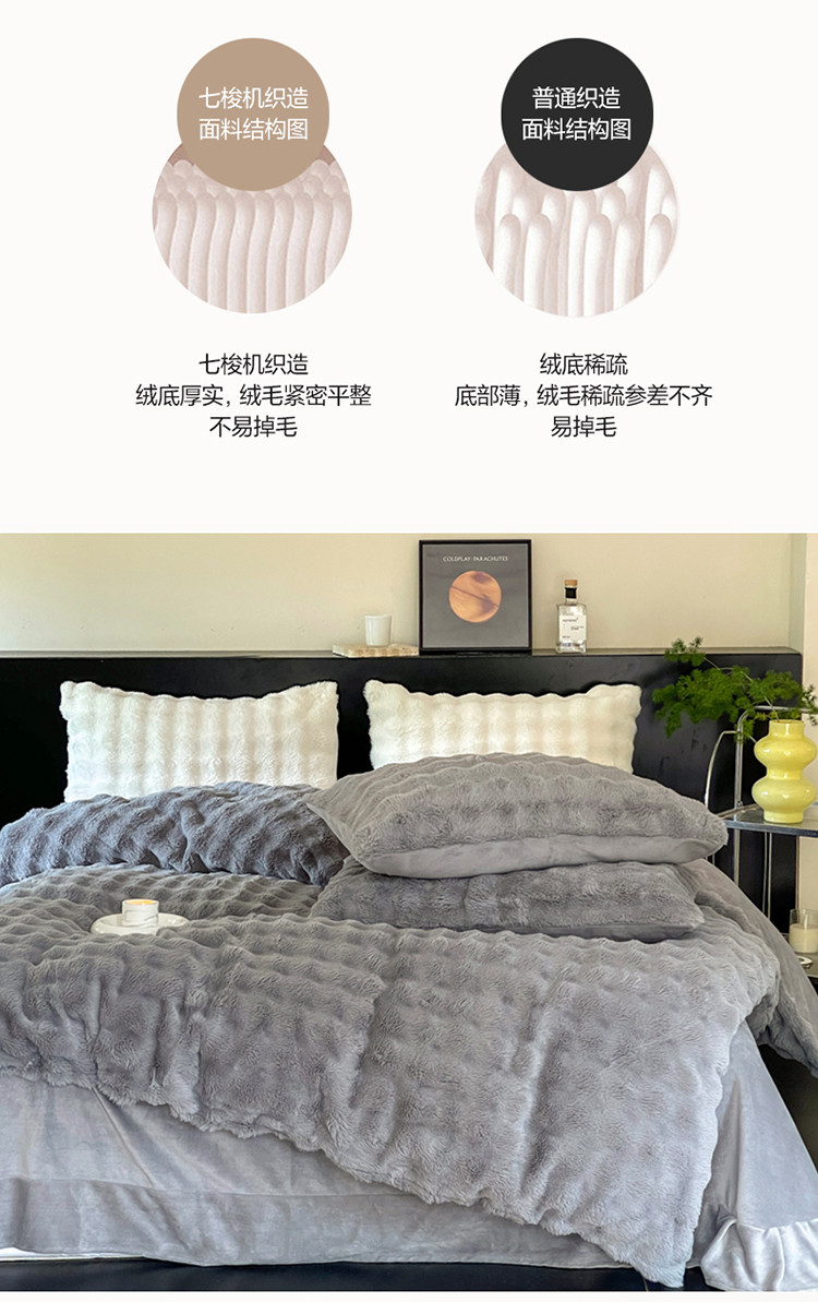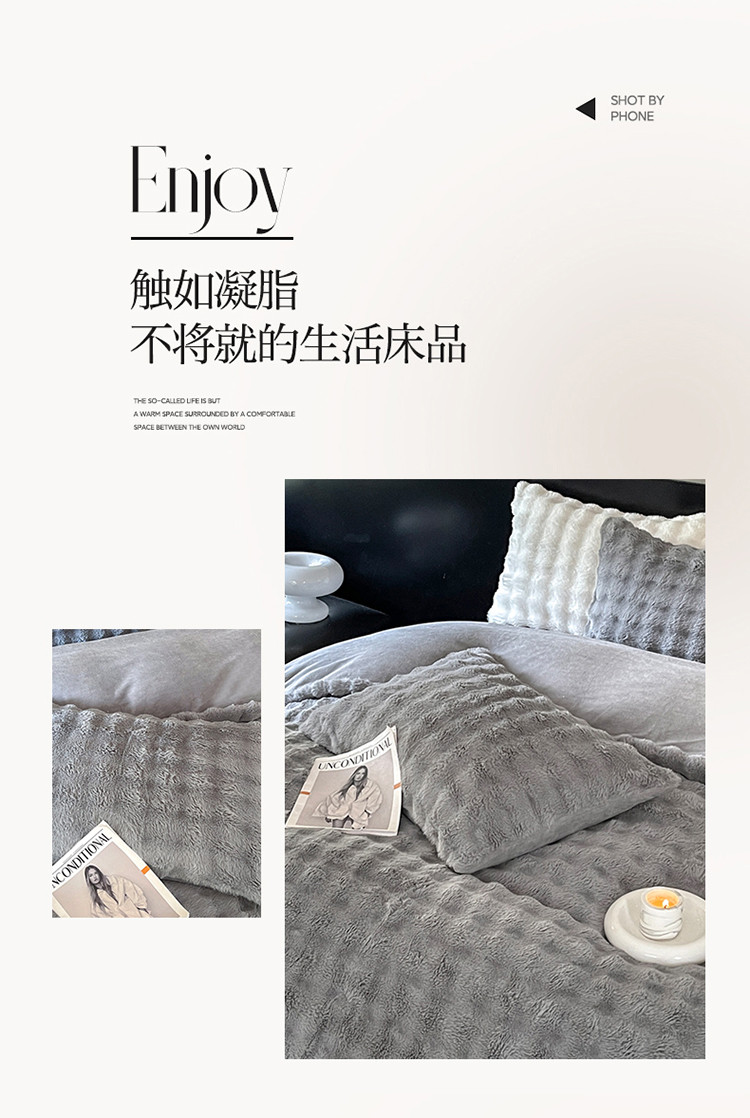 商品名称:乐童-2024新款高克重兔兔绒吊边款四件套 兔兔绒-高级灰