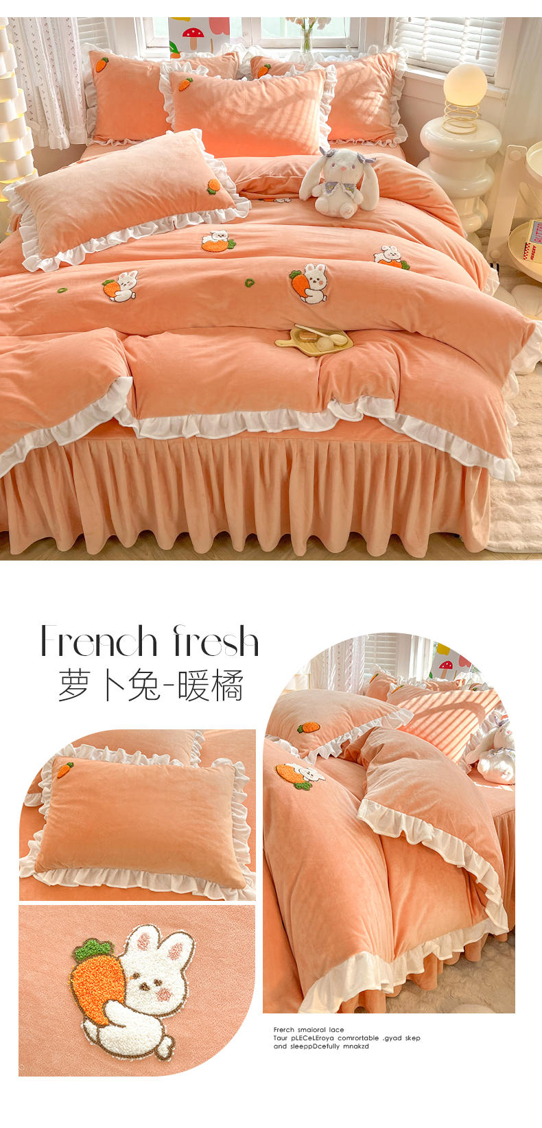 当前位置: 91家纺网 > 商品网购 > 床品套件 > 四件套 > 全棉普通四件套 > 绒兔兔2023新款棉加绒刺绣四件套-萝卜兔 萝卜兔-暖橘