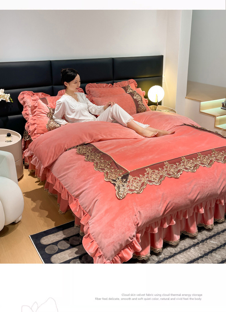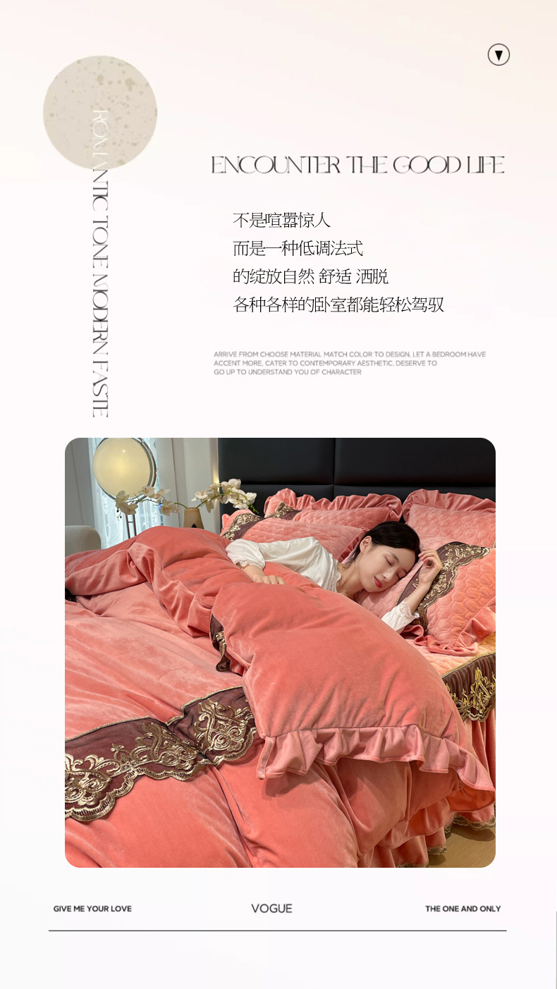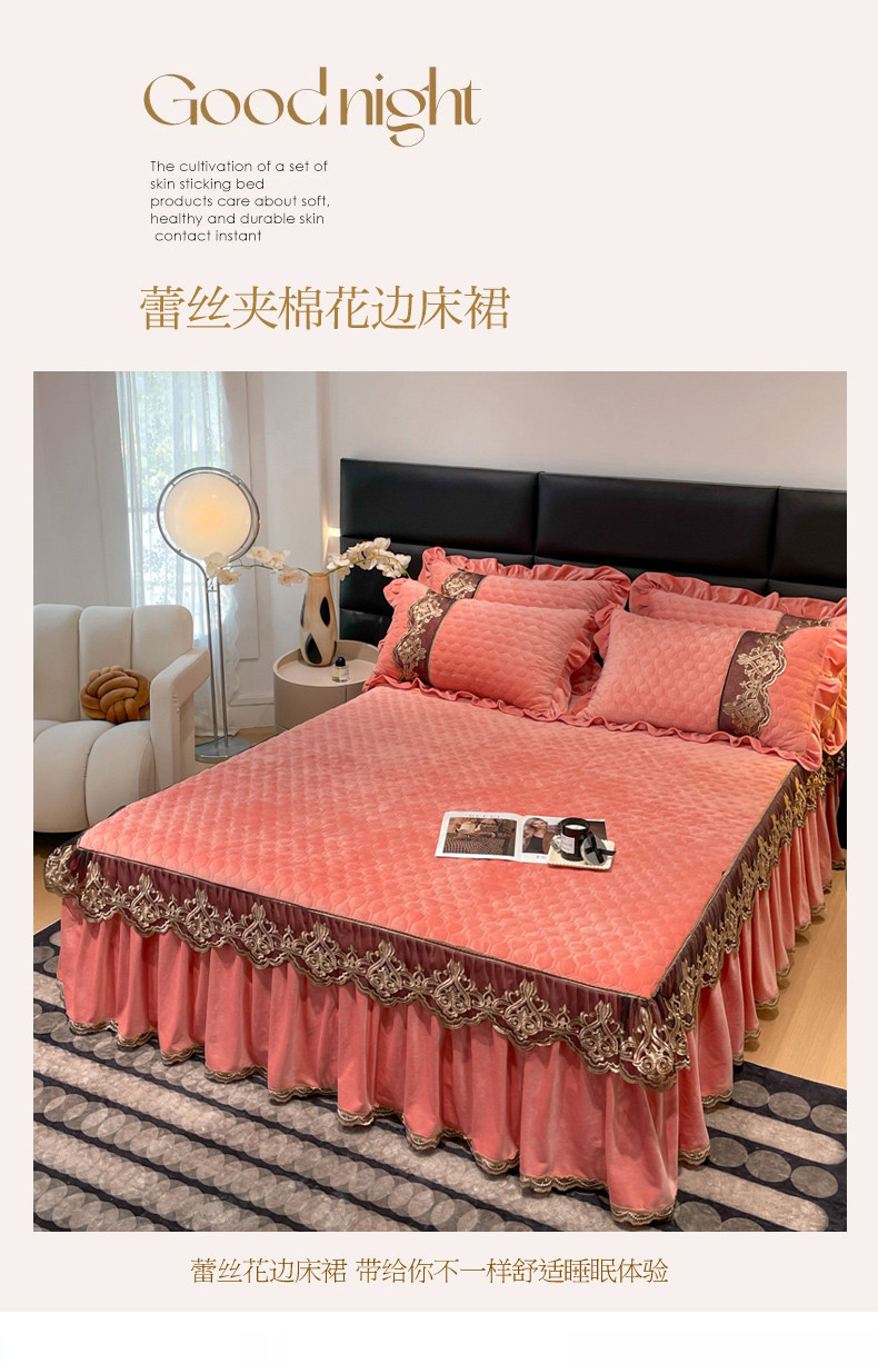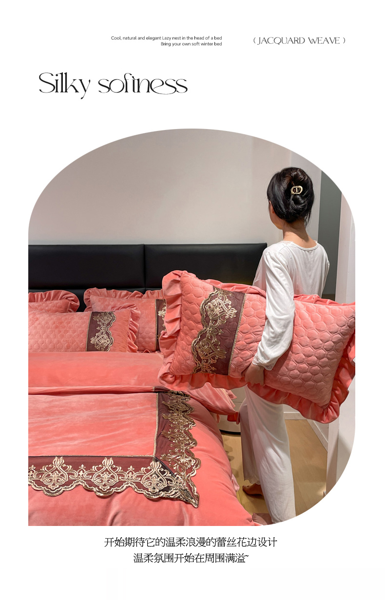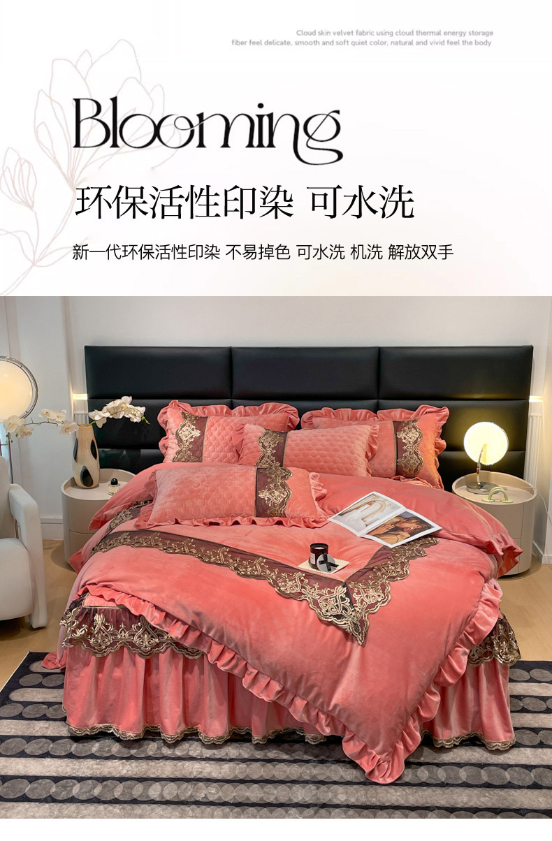 当前位置: 91家纺网 > 商品网购 > 床品套件 > 四件套 > 宝宝绒四件套 > 忘忧草 2023新款婴儿绒夹棉床裙四件套-爱莎 湘菲粉