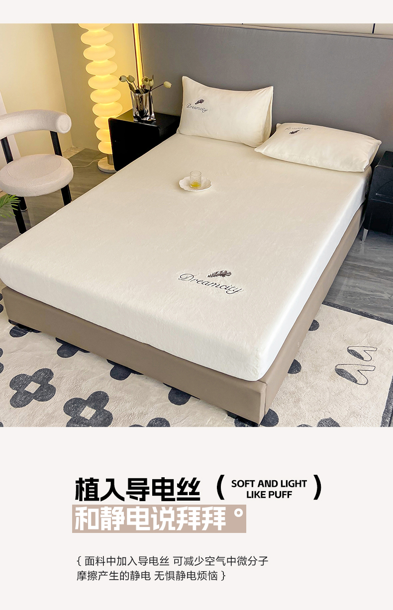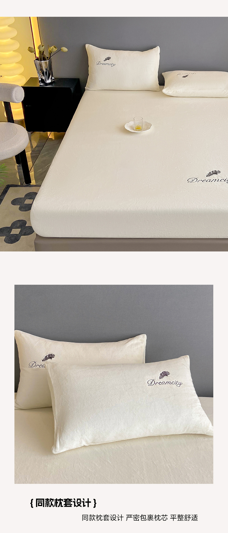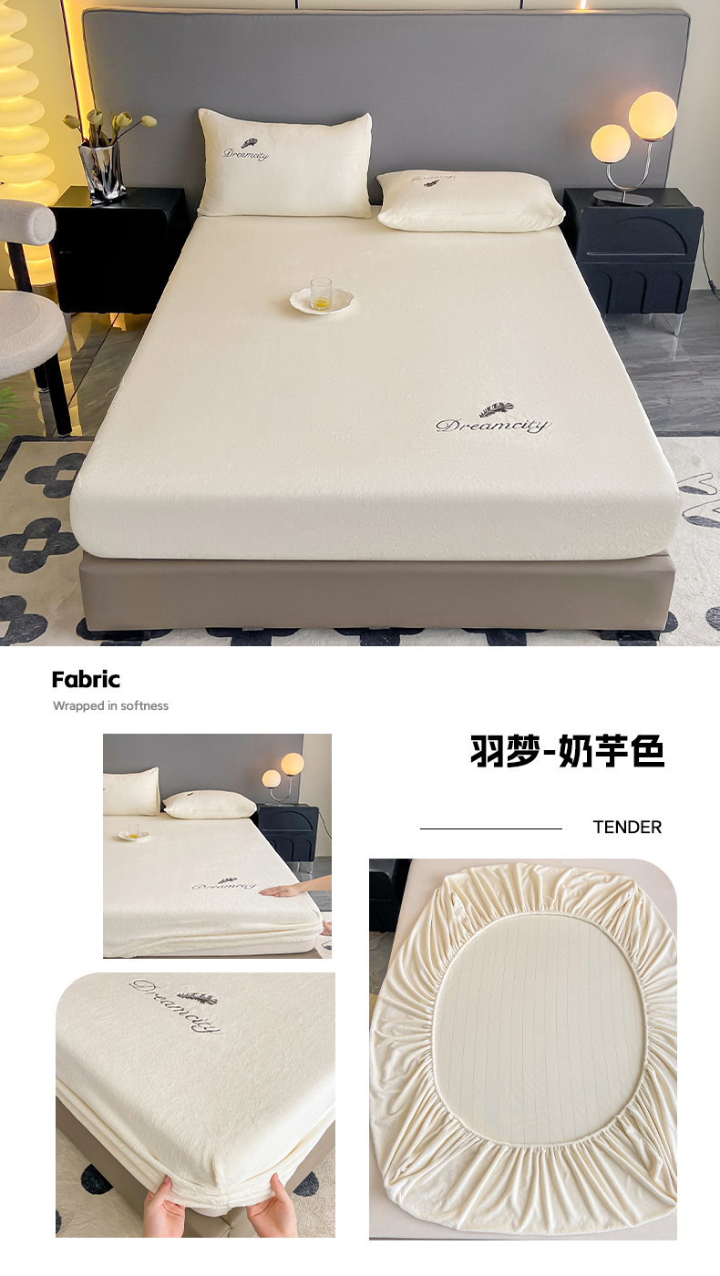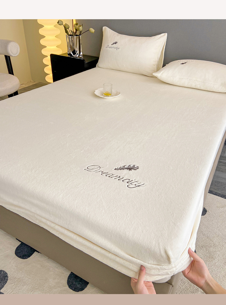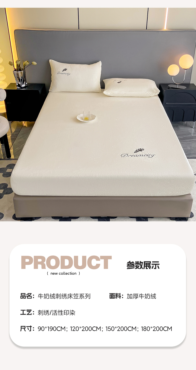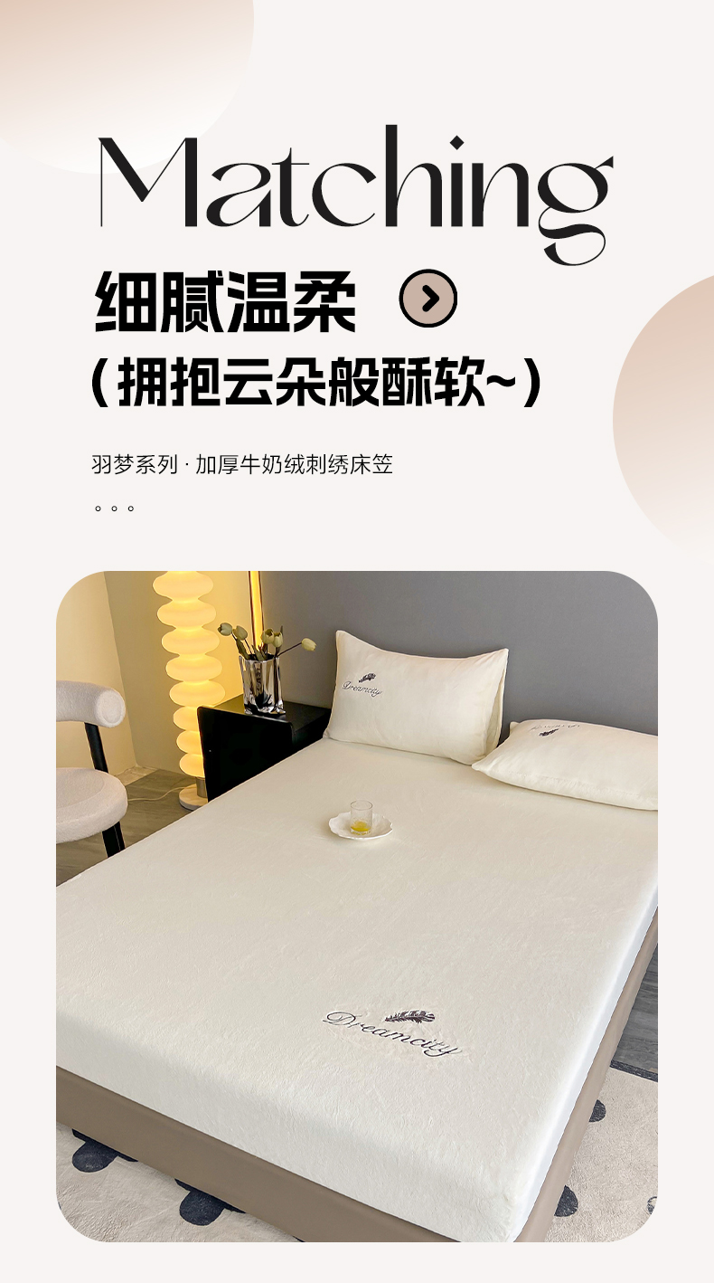 古吉梦 2023新款牛奶绒刺绣床笠-羽梦 羽梦-奶芋色