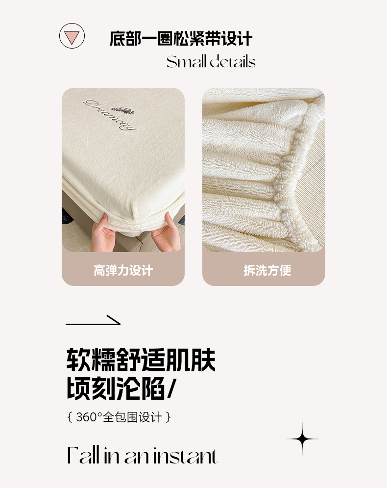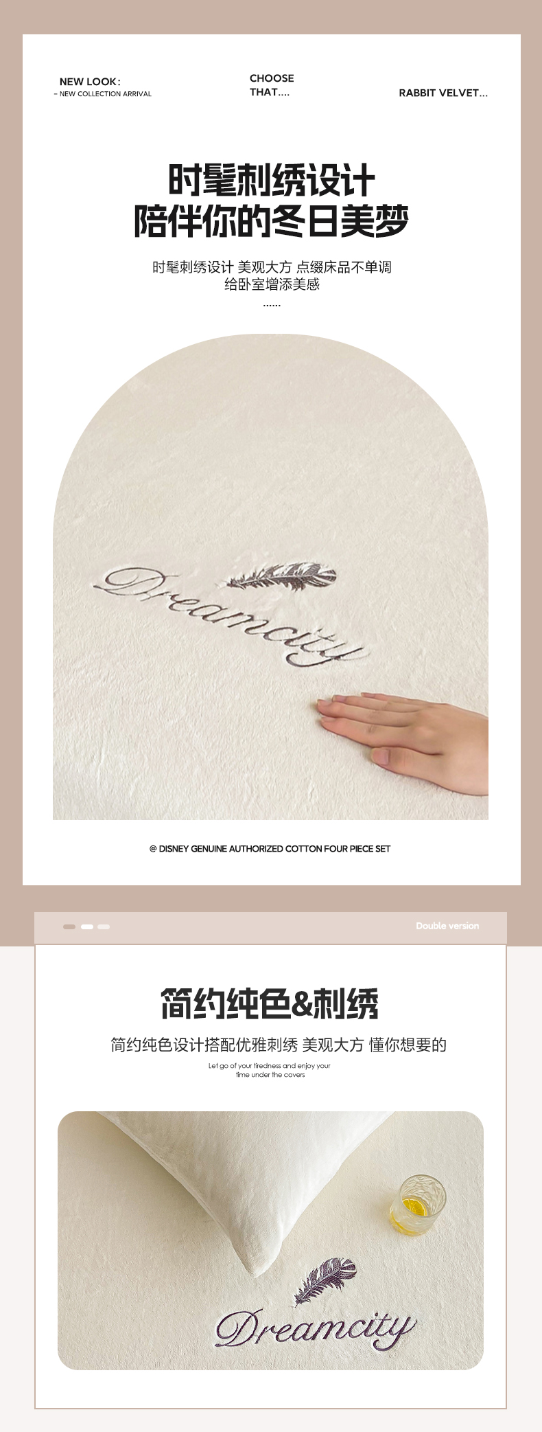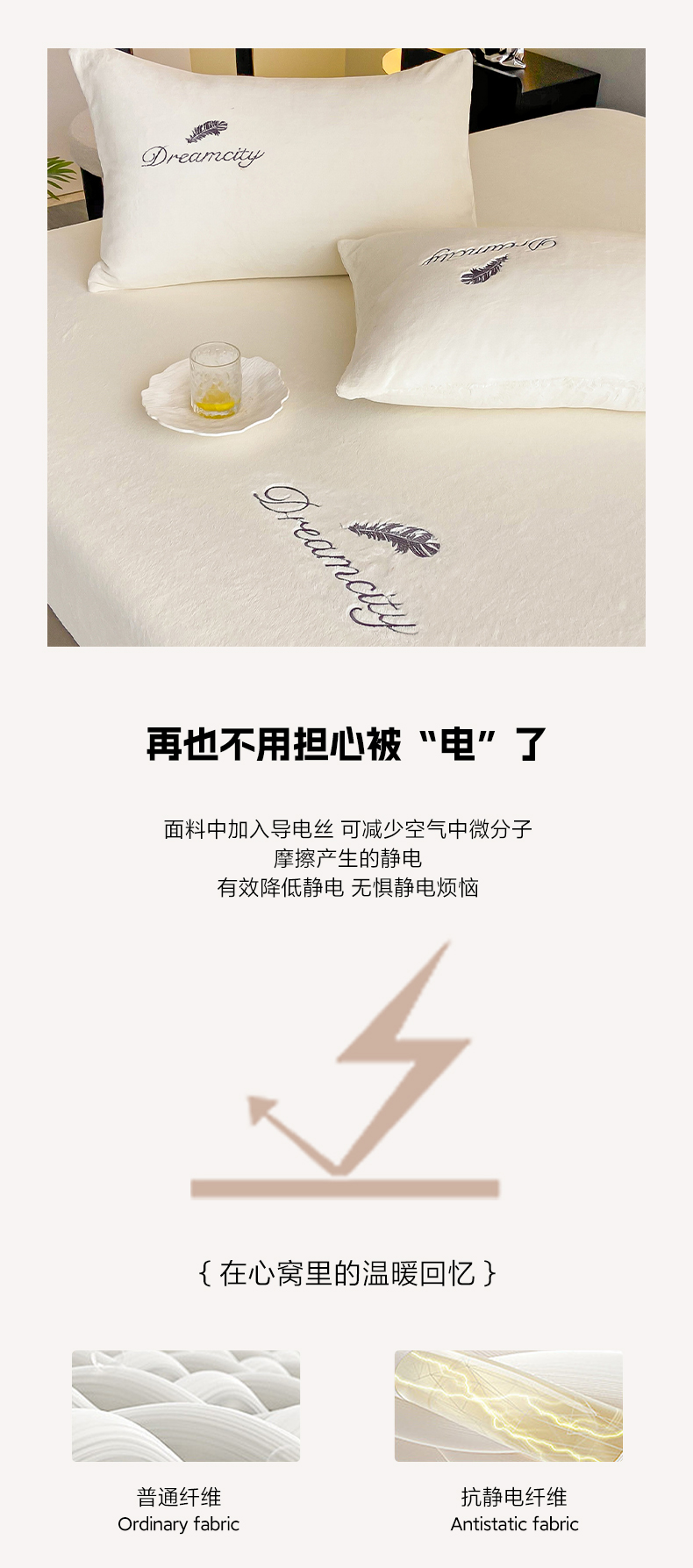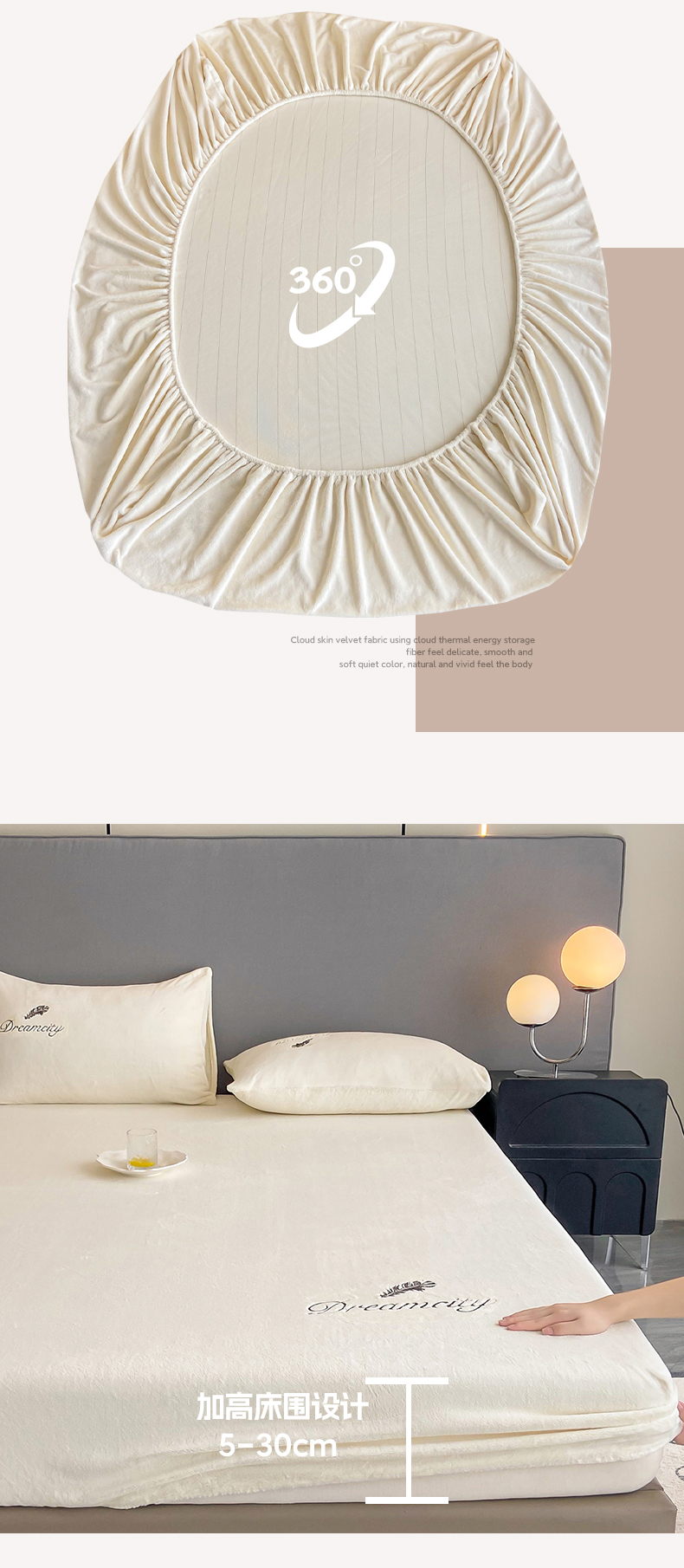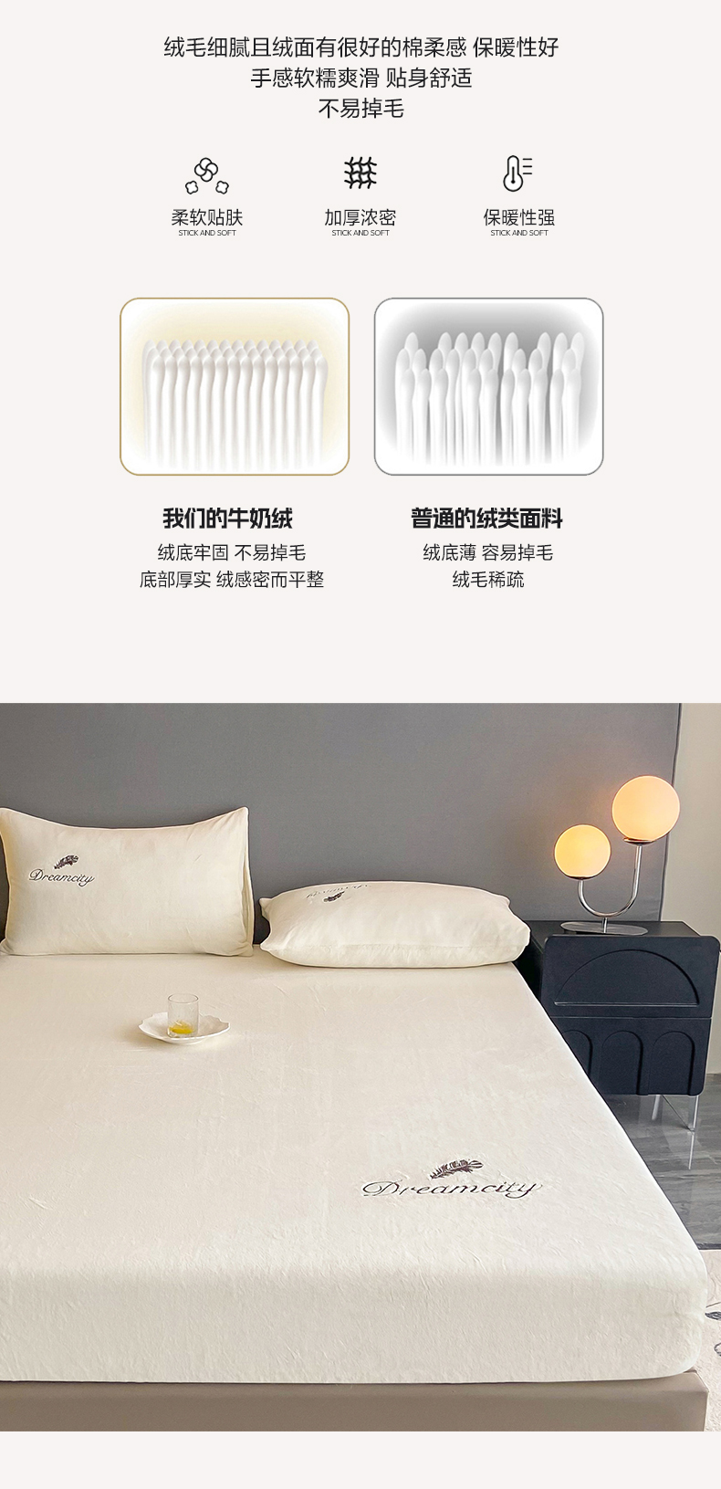 古吉梦 2023新款牛奶绒刺绣床笠-羽梦 羽梦-奶芋色
