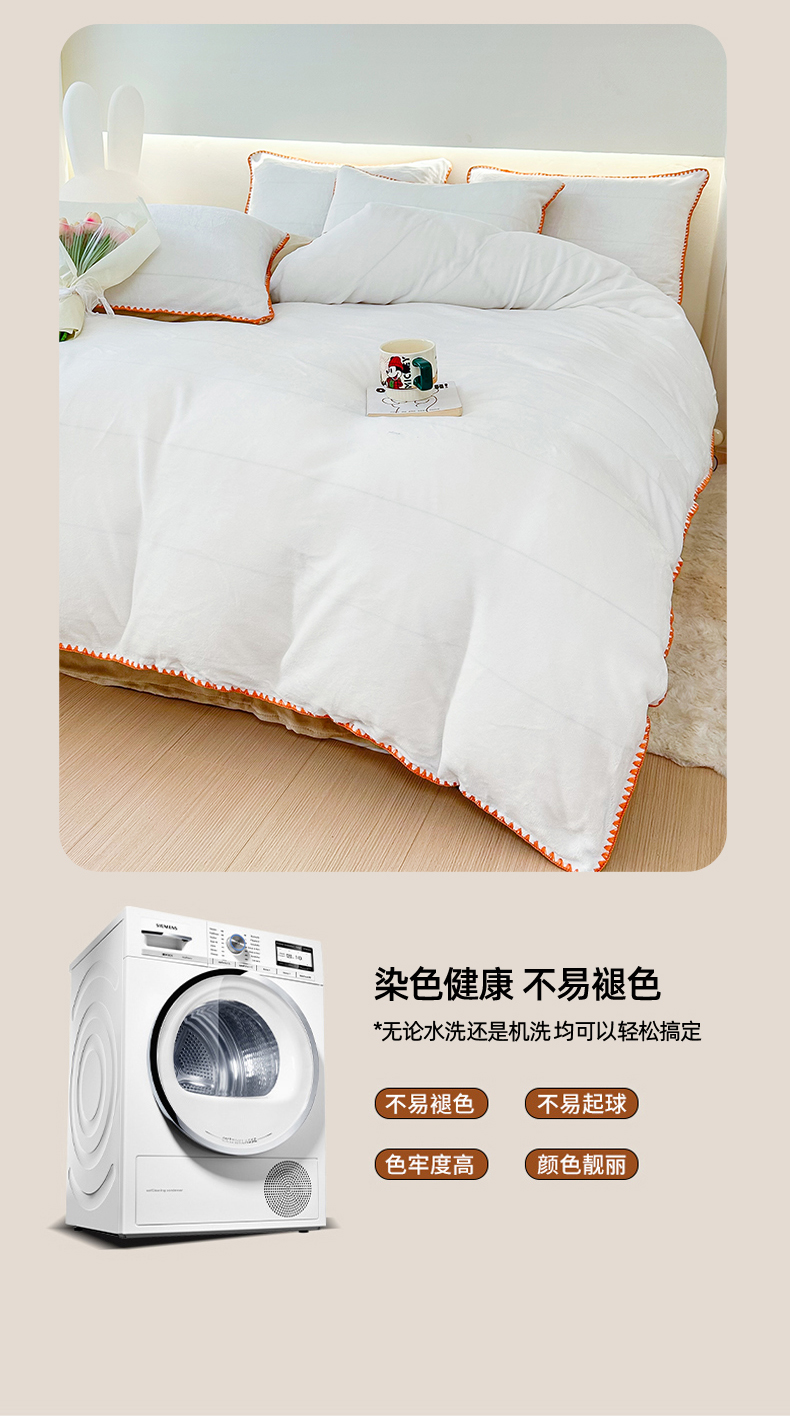 (总)迷仙巢 2022新款塔夫绒拼北极绒贝贝绒包边四件套,卡其色,米白色,抹茶绿,柠檬黄,深空灰,香芋紫,樱花粉
