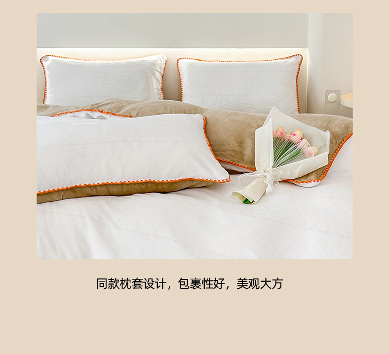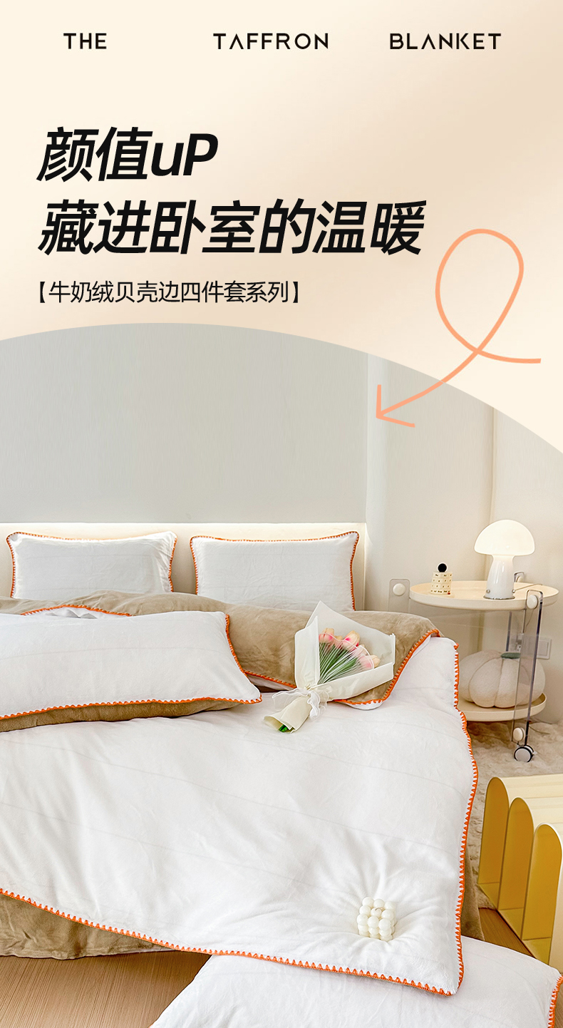 商品名称:迷仙巢家纺 2023新款贝壳绒四件套 白加卡其