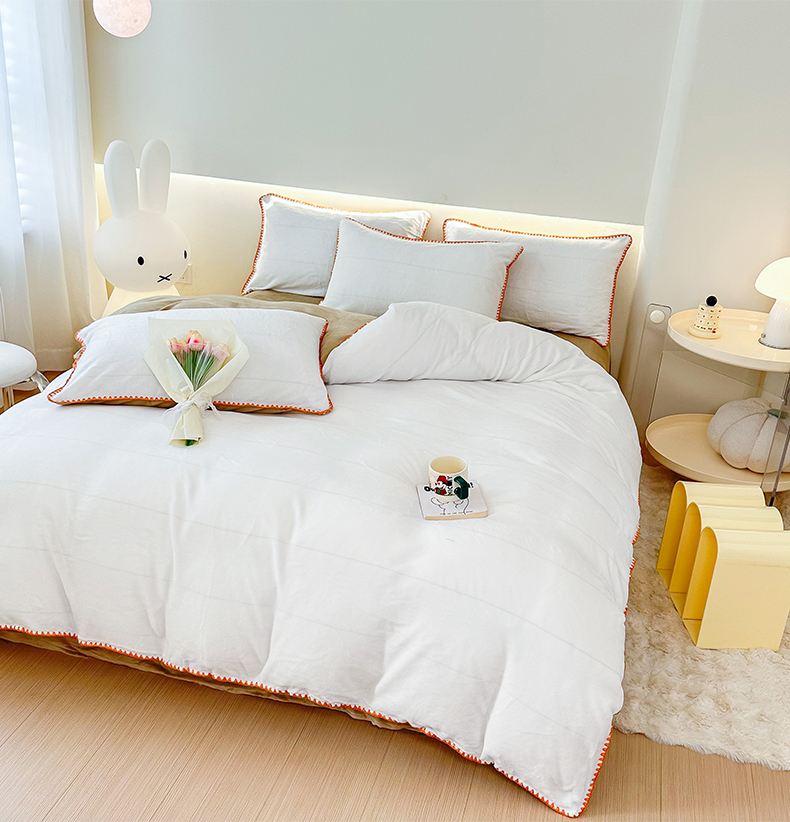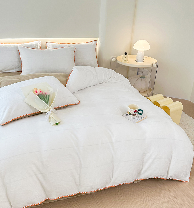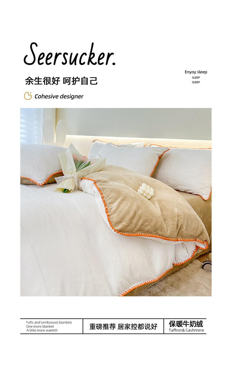 (总)迷仙巢家纺 2023新款双拼牛奶绒四件套,白加卡其,白加天空蓝,奶油黄加焦糖,奶油黄加浅紫,奶油黄加天空蓝,浅绿灰,浅紫加玉,天空蓝加灰,天空蓝加玉,玉加灰,玉加奶油黄