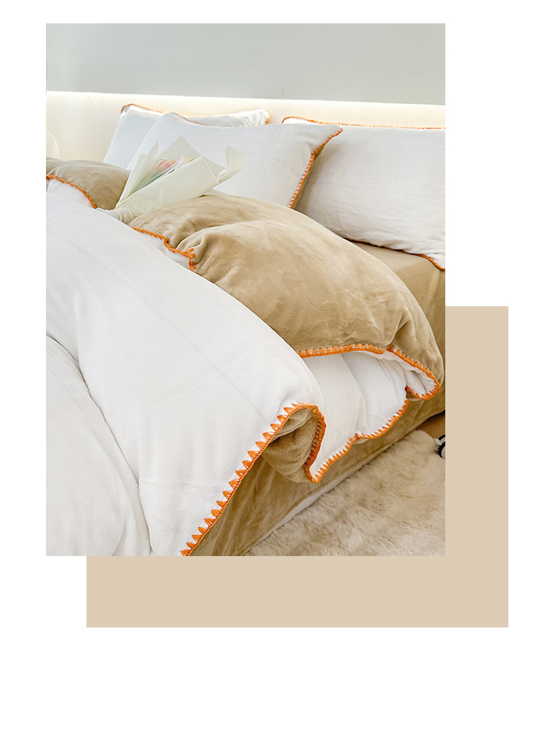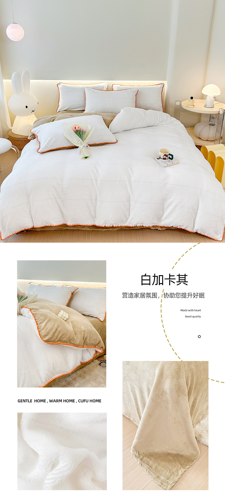 迷仙巢家纺 2023新款贝壳绒四件套 白加卡其