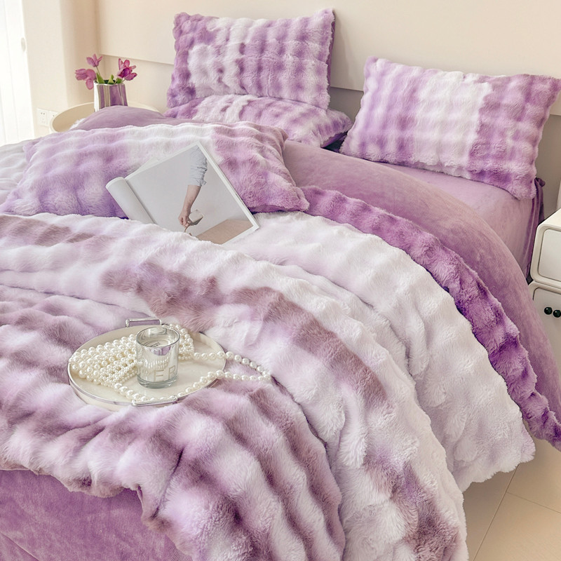 商品名称:仟网汇 2023新款兔毛七彩印花牛奶绒四件套渐变 七彩紫色