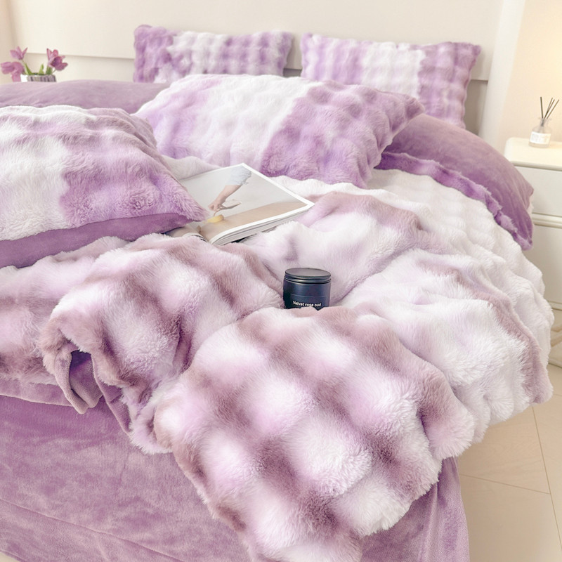 仟网汇 2023新款兔毛七彩印花牛奶绒四件套渐变 七彩紫色