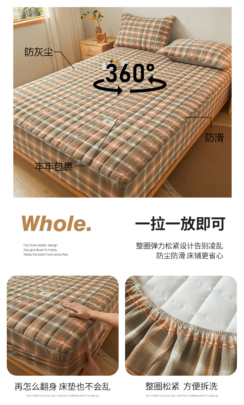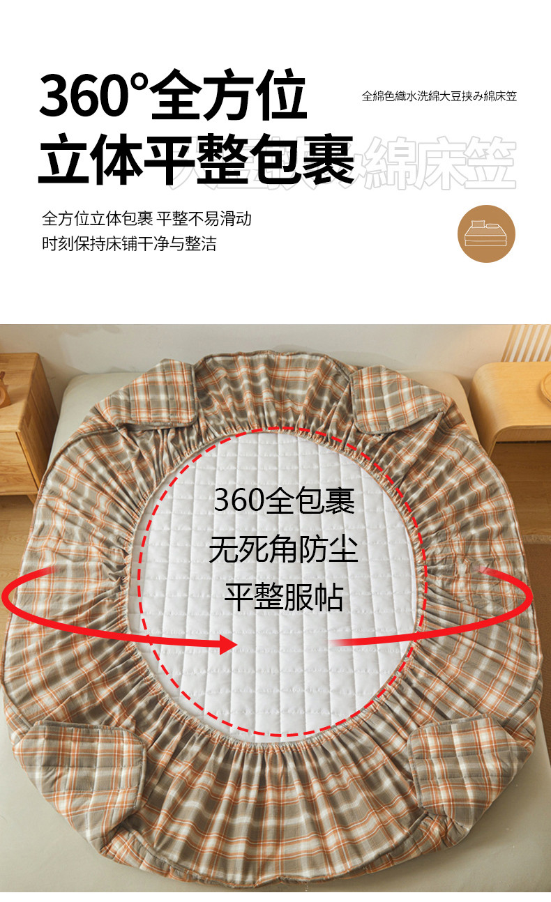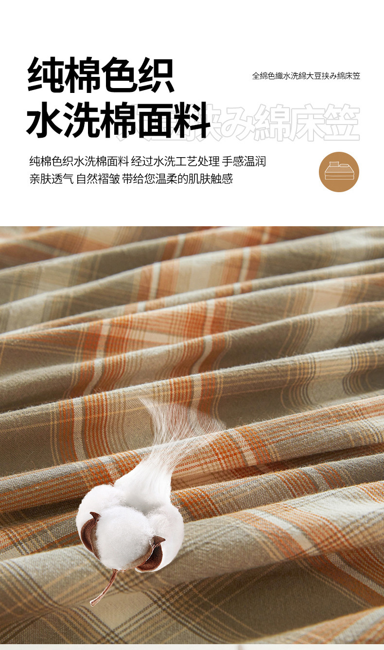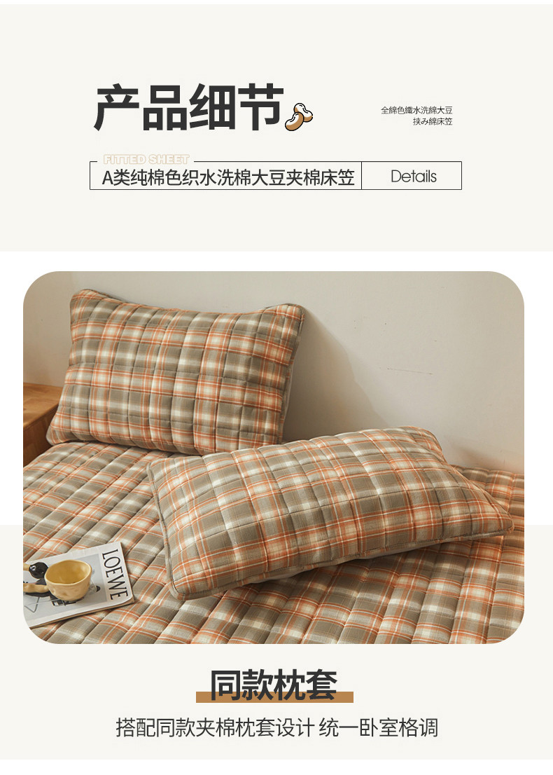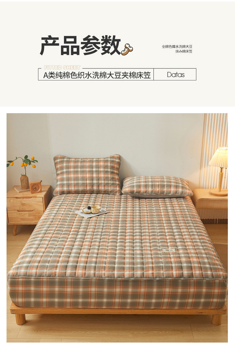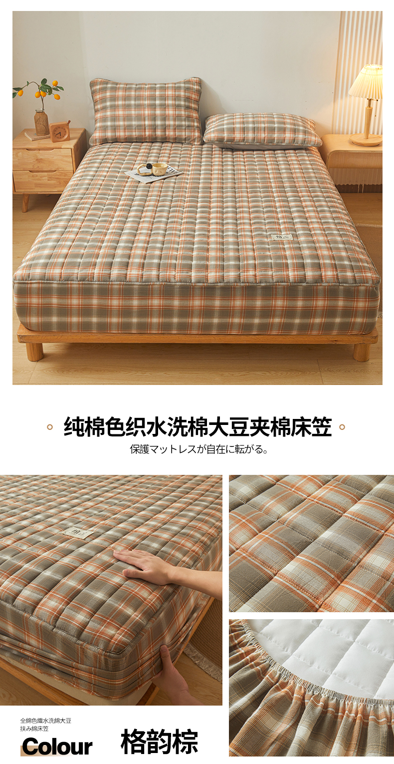 • 91家纺网 家纺一手货源 找家纺 多谷家纺 2023新款纯棉色织水洗棉大豆夹棉床笠 格韵棕