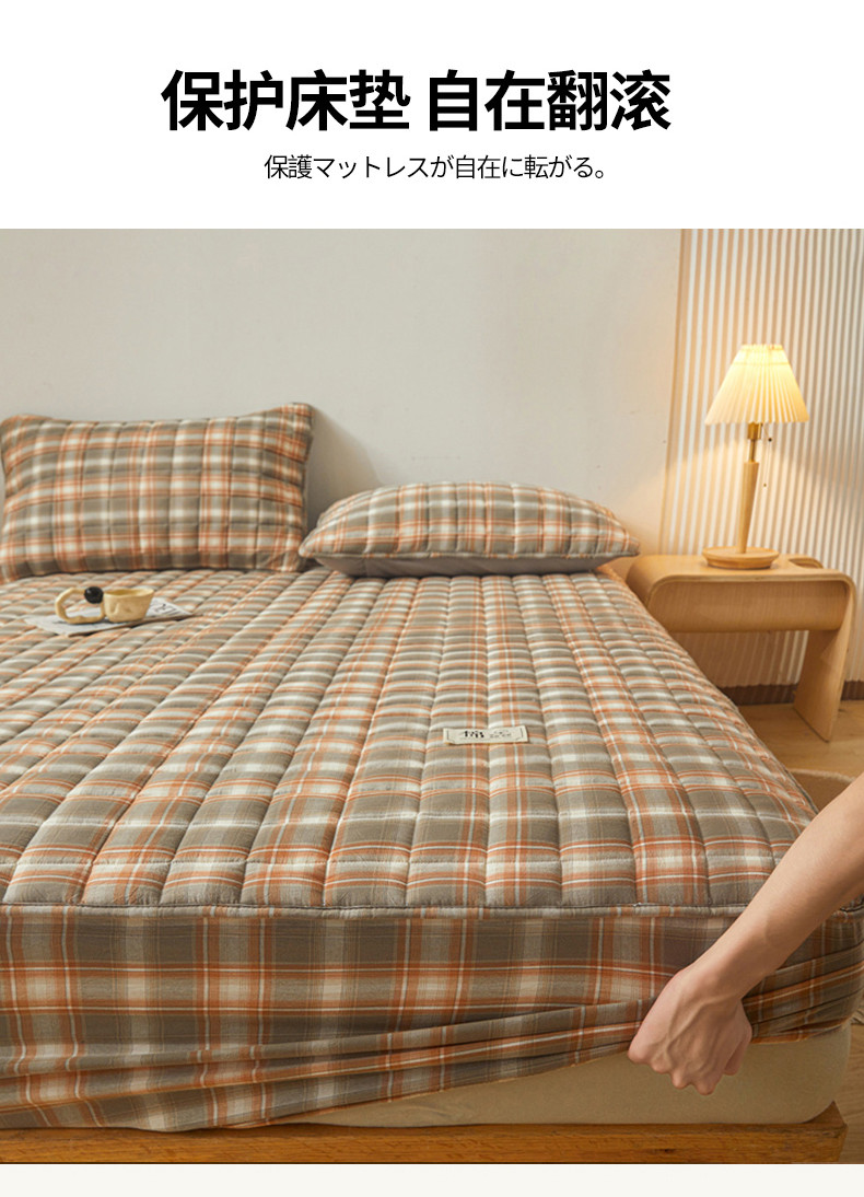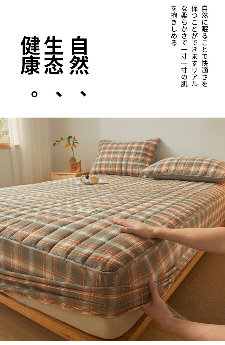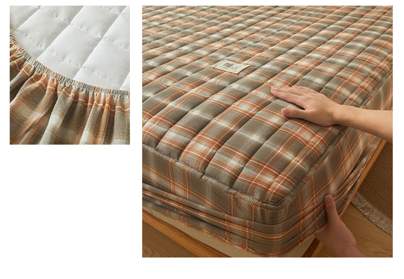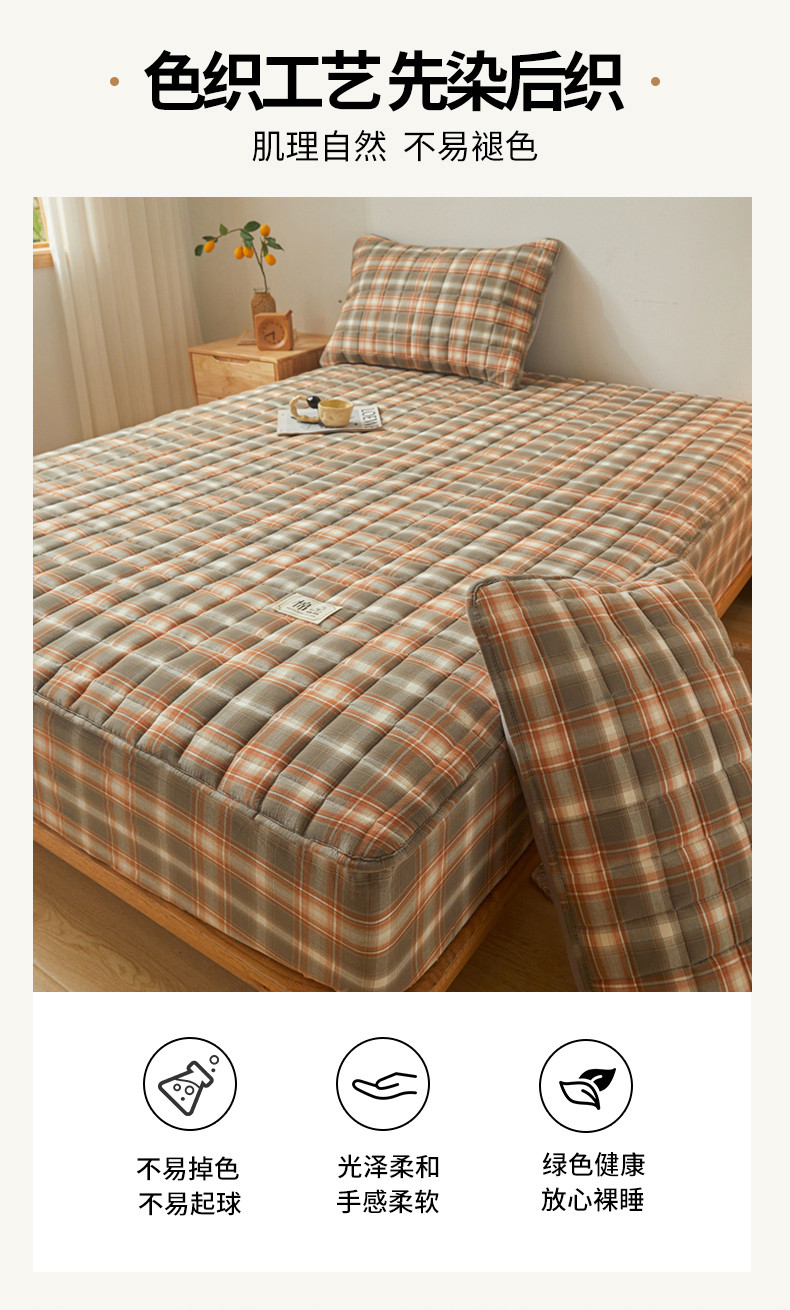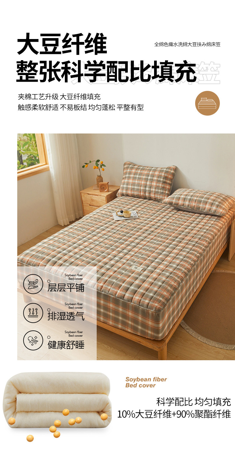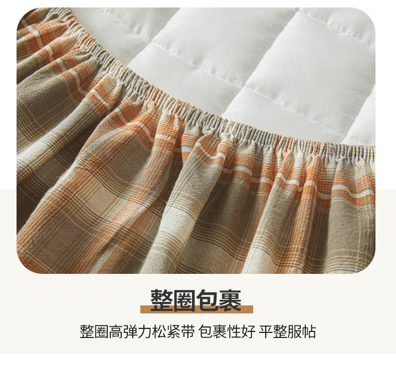 多谷家纺 2023新款纯棉色织水洗棉大豆夹棉床笠 格韵棕