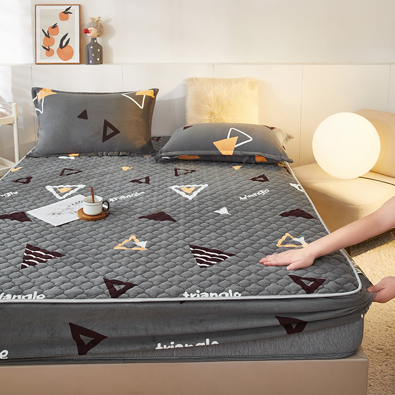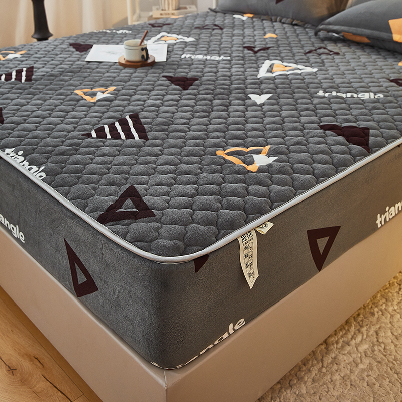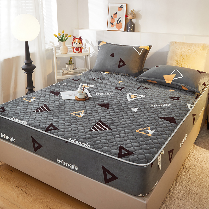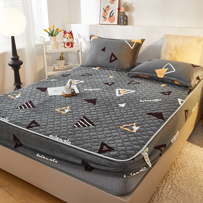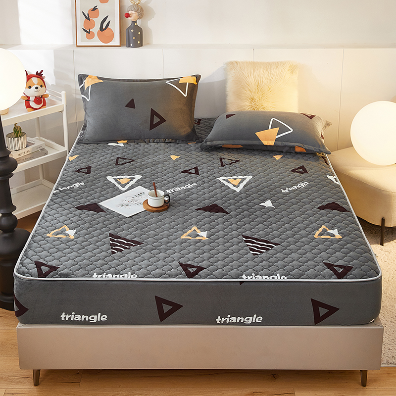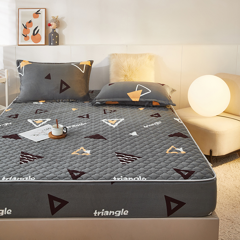 商品名称:米柳家纺 2023直播爆款牛奶绒夹棉床笠 奇妙三角