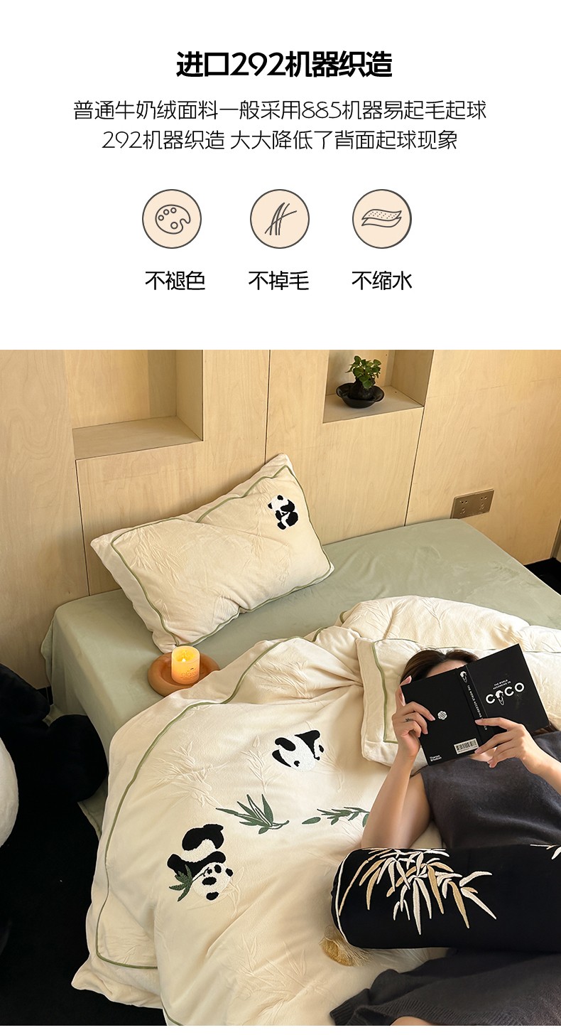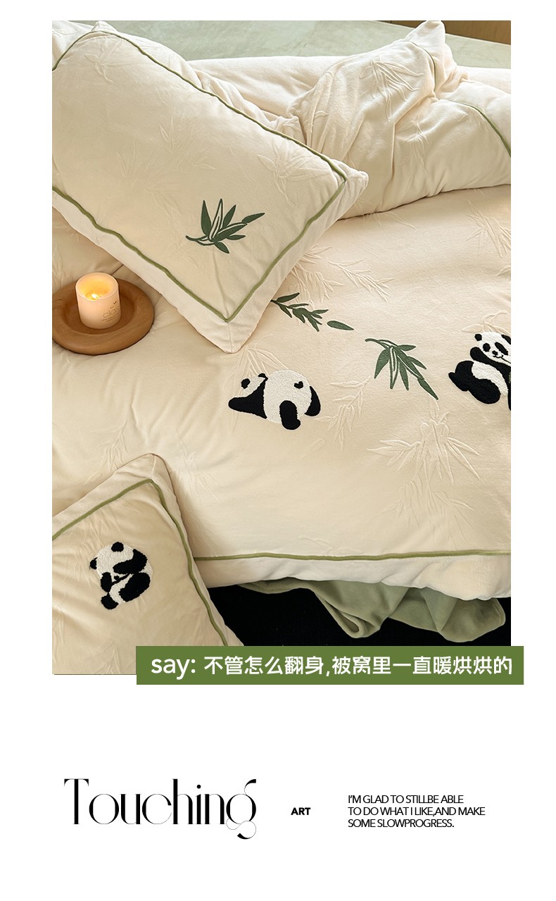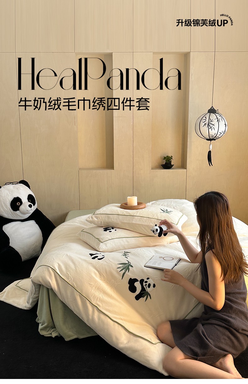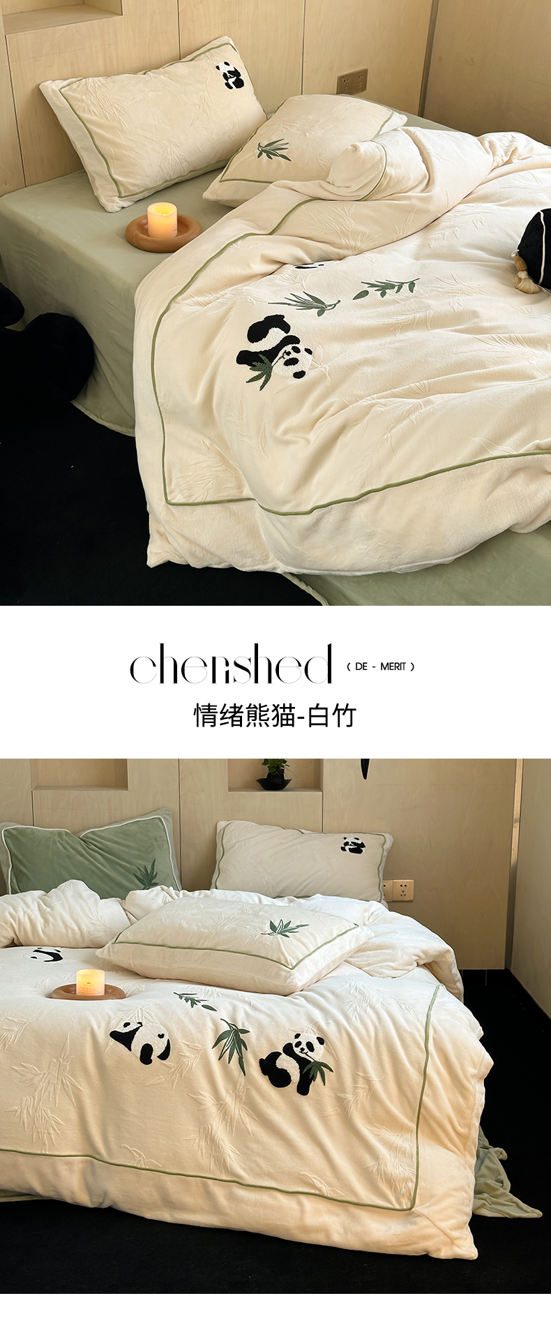 当前位置: 91家纺网 > 商品网购 > 床品套件 > 四件套 > 牛奶绒四件套 > 安莱生活 2023专版锦芙牛奶绒毛巾绣四件套-情绪熊猫款-ins风格图 情绪熊猫-白竹