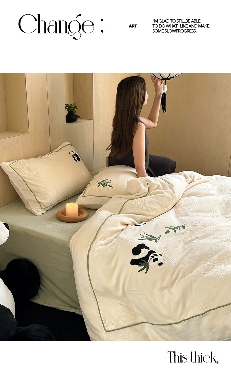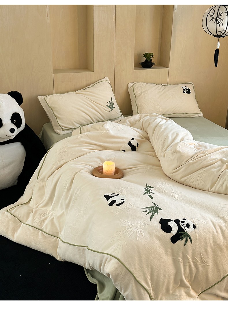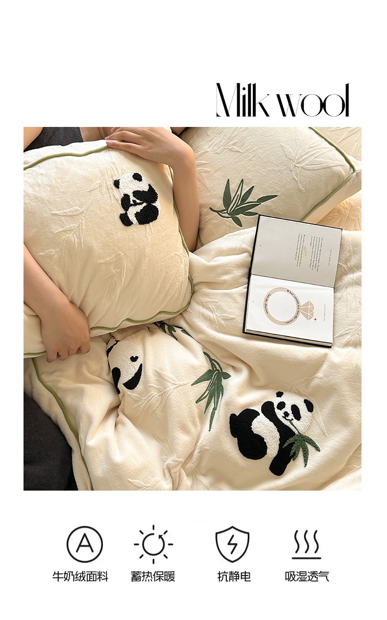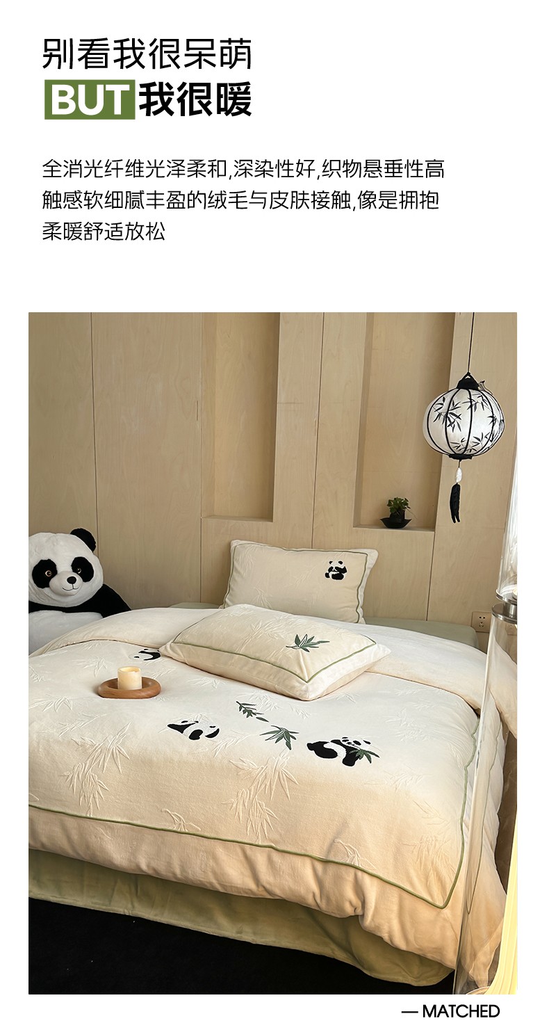 当前位置: 91家纺网 > 商品网购 > 床品套件 > 四件套 > 牛奶绒四件套 > 安莱生活 2023专版锦芙牛奶绒毛巾绣四件套-情绪熊猫款-ins风格图 情绪熊猫-白竹