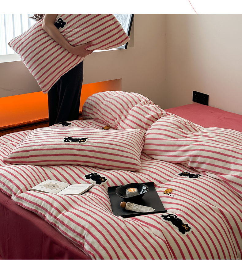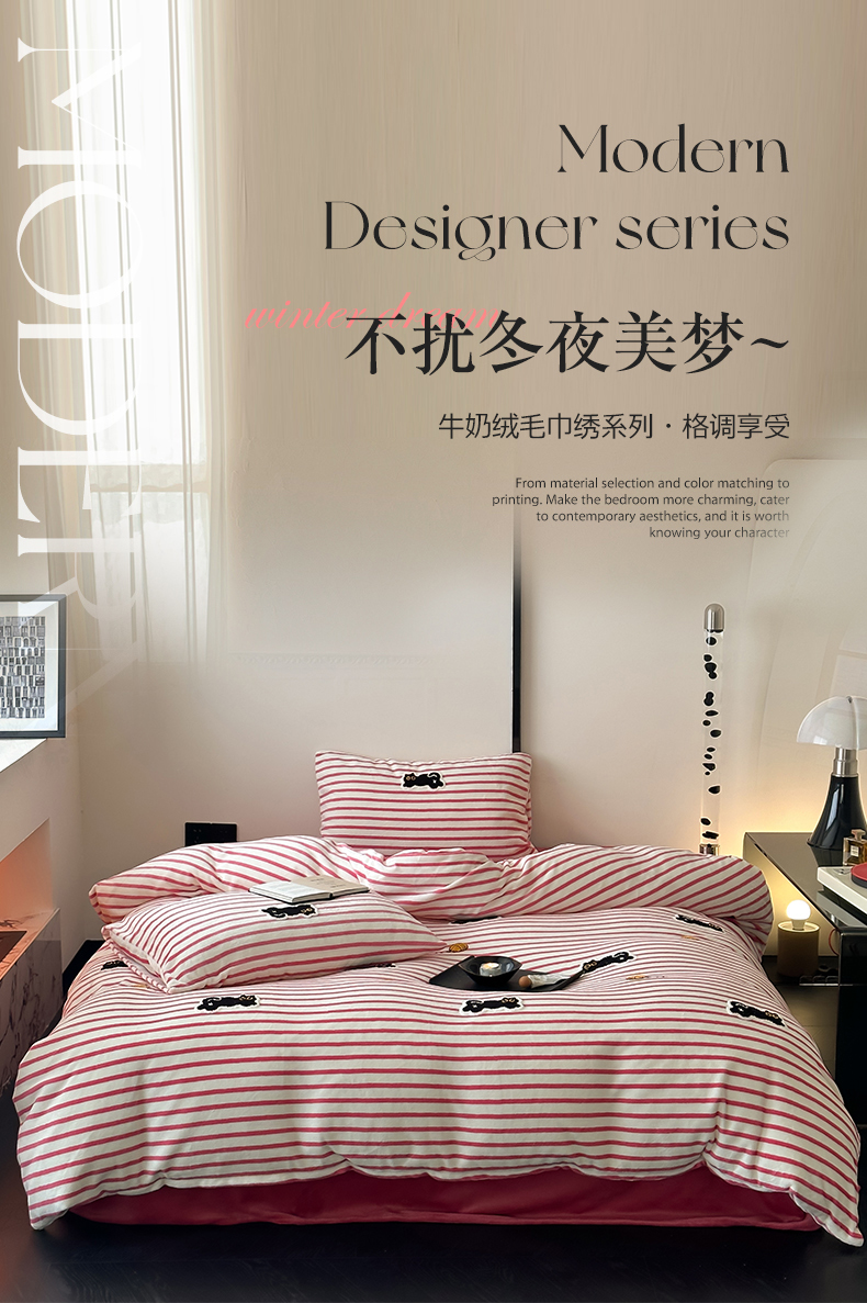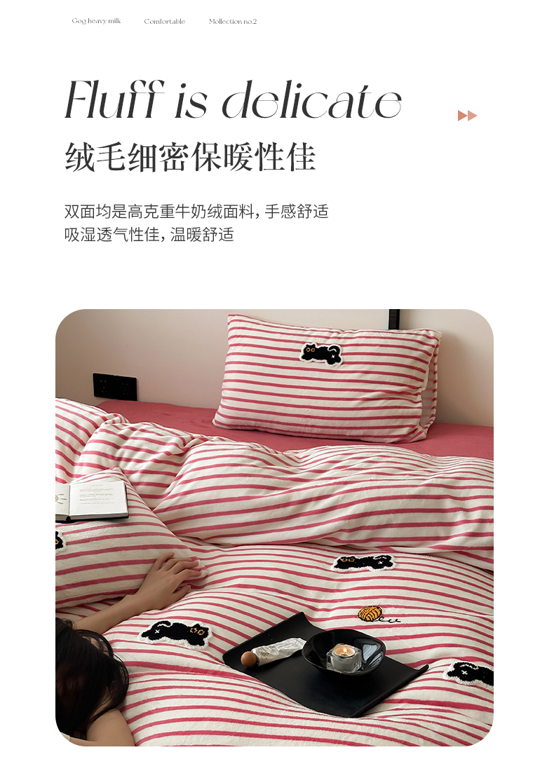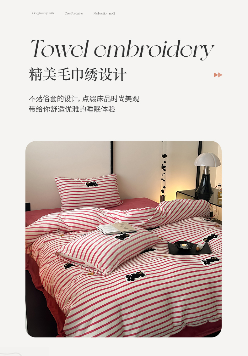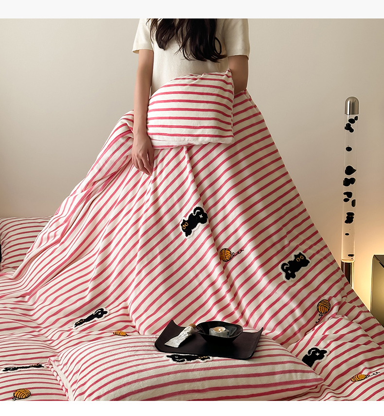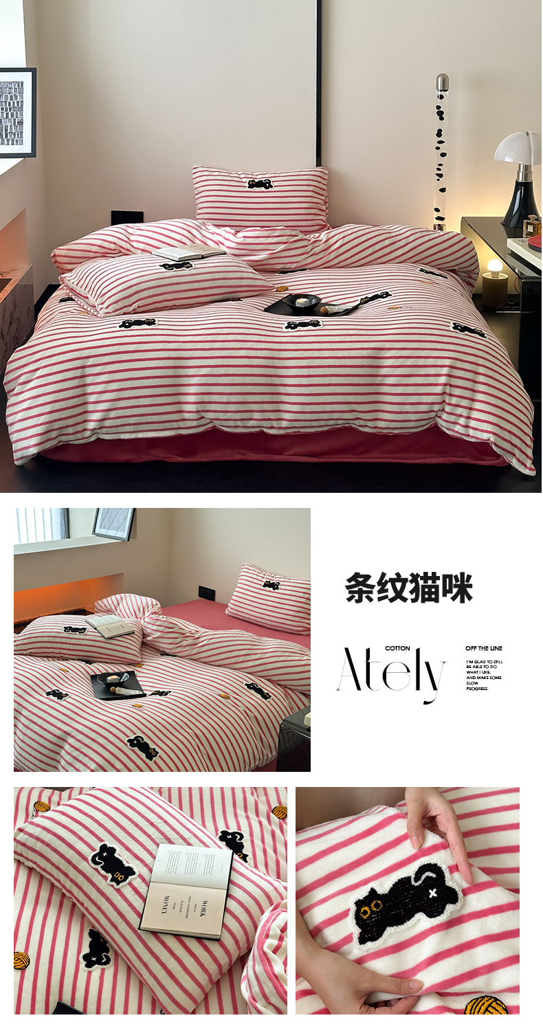 当前位置: 91家纺网 > 商品网购 > 床品套件 > 四件套 > 牛奶绒四件套 > 时年家纺 2023新款高克重牛奶绒立体毛巾绣四件套 充值会员优惠5元 条纹猫咪